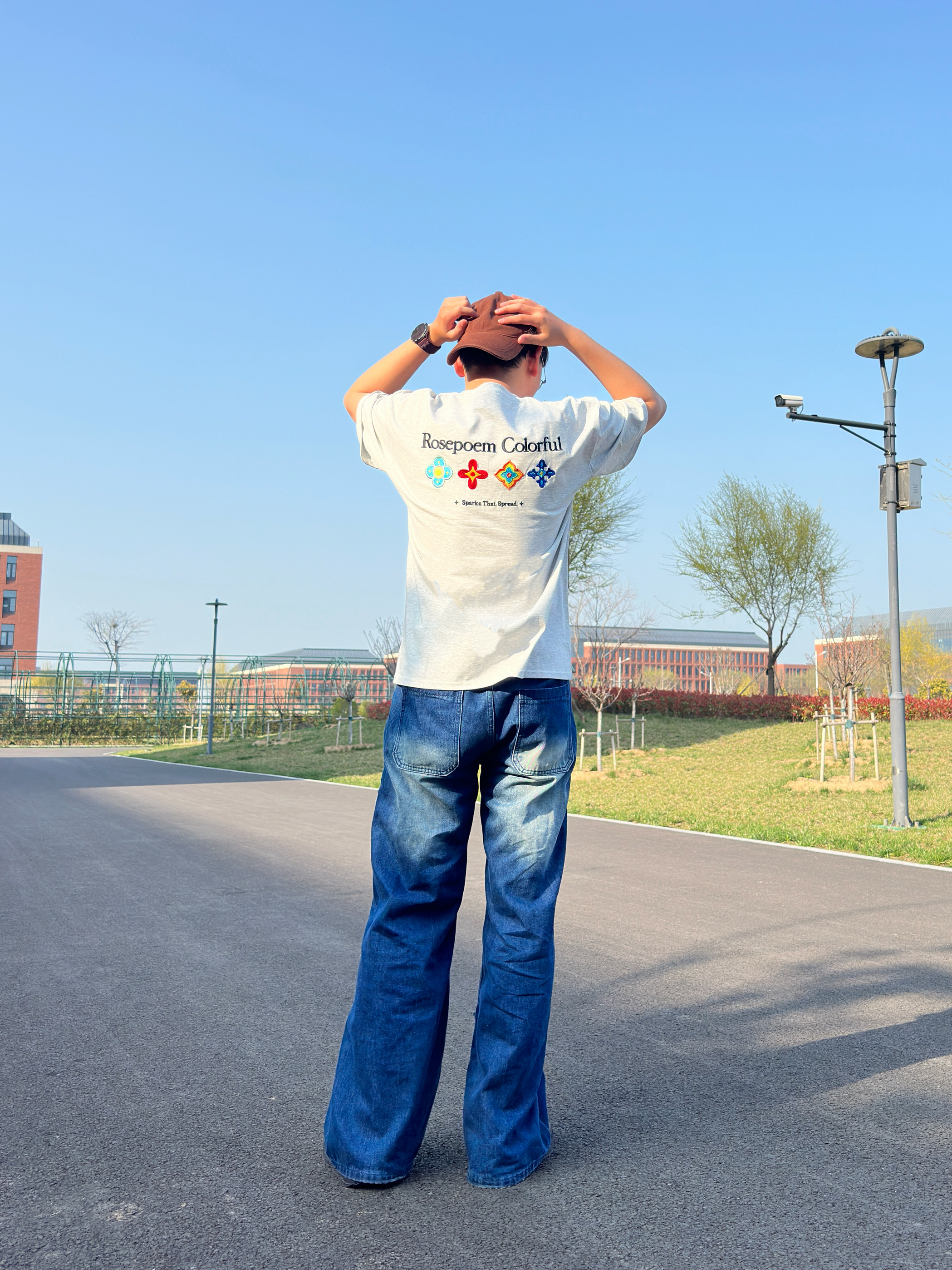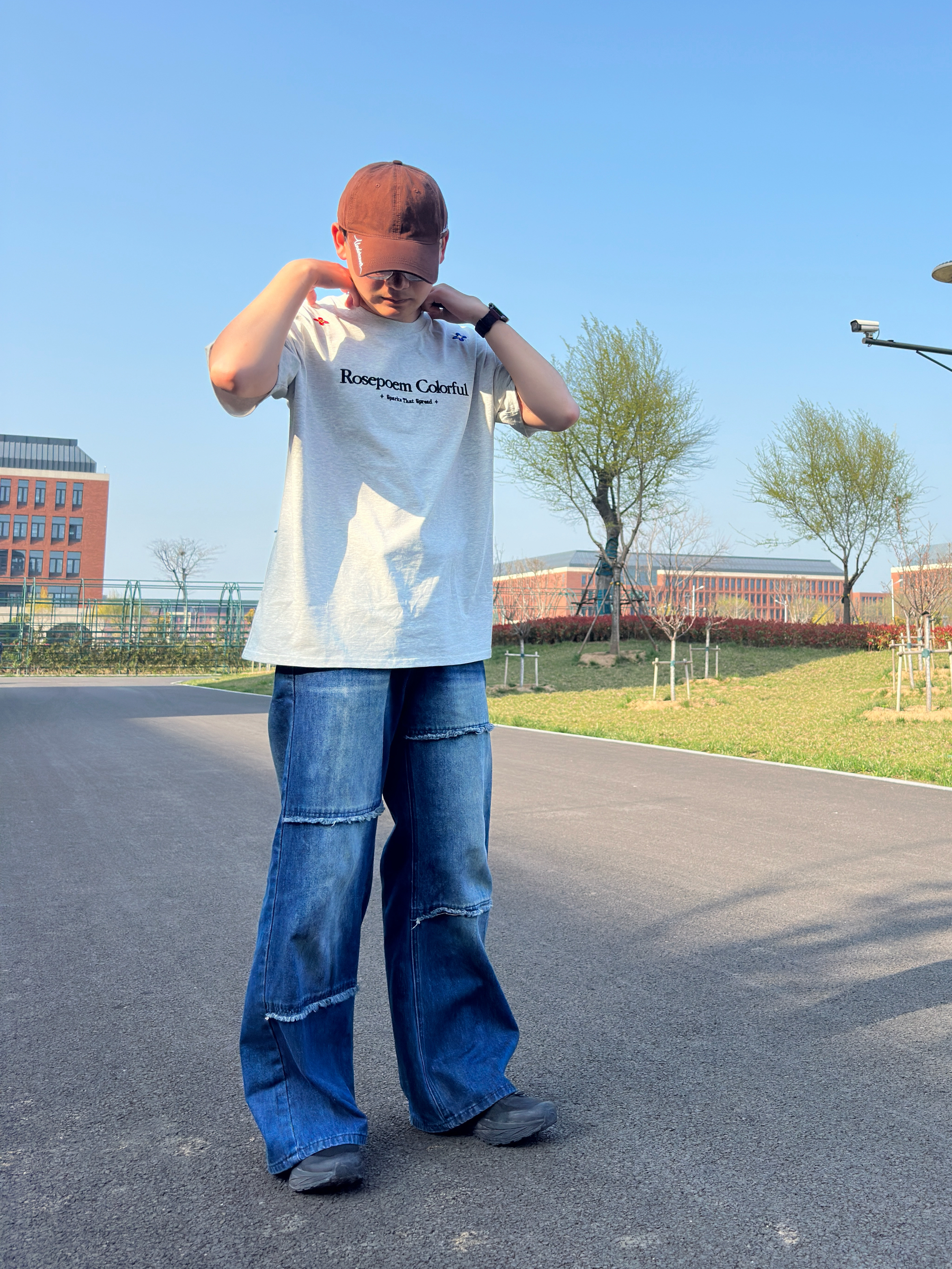 今日份松弛感给穿搭抄作业! 上身是四季花境刺绣T恤 宽松正肩版型不挑身材 我搭的是浅灰色款 撞色刺绣带点小细节 短袖是纯棉面料凉感透气😌