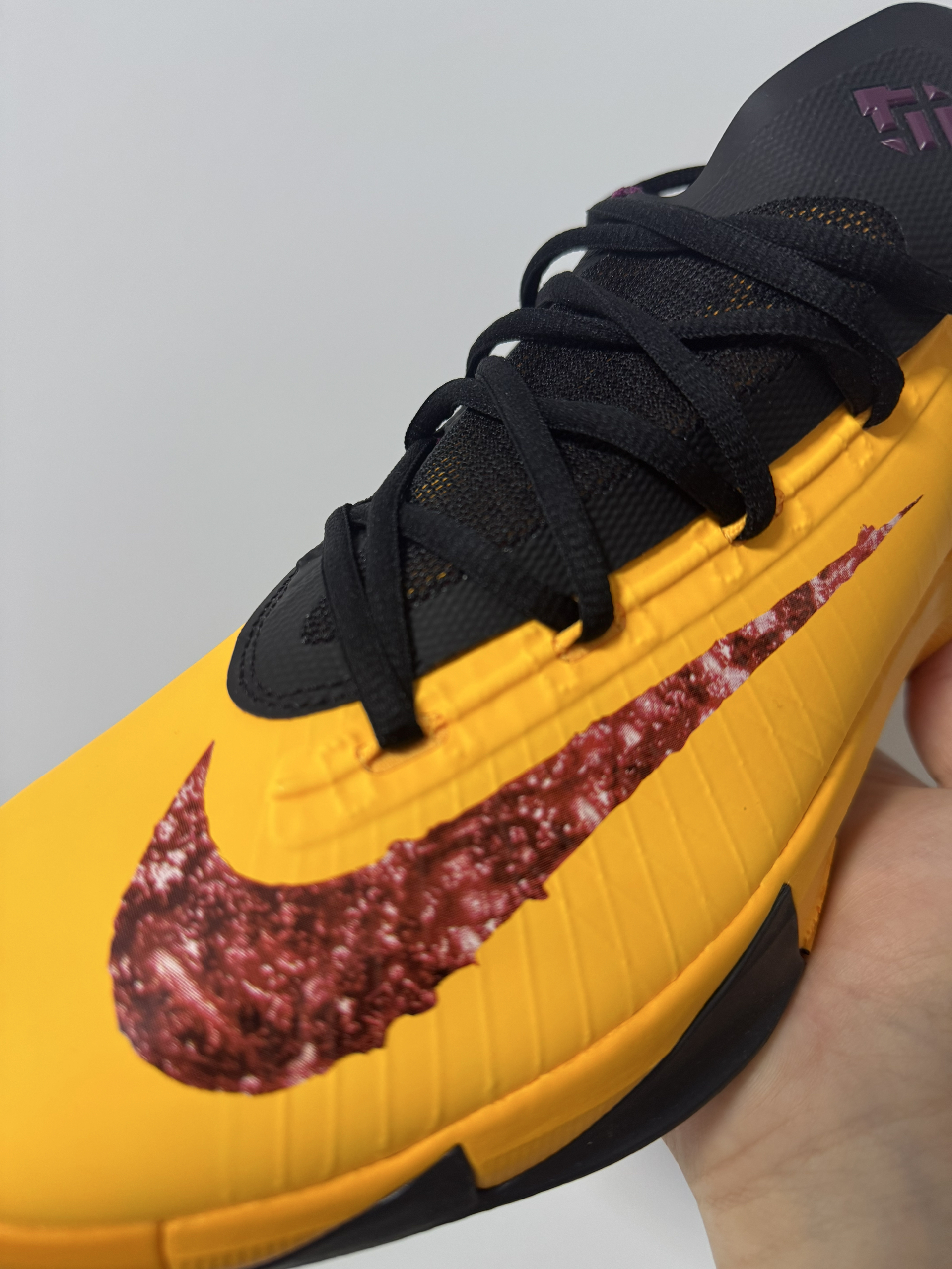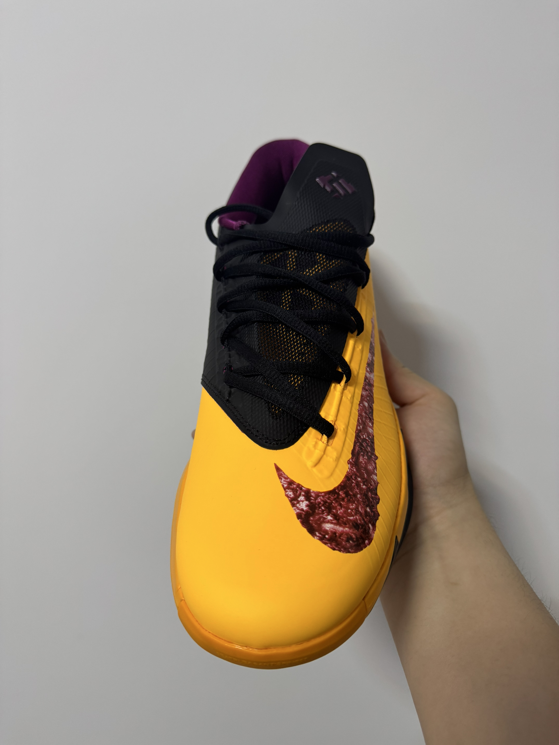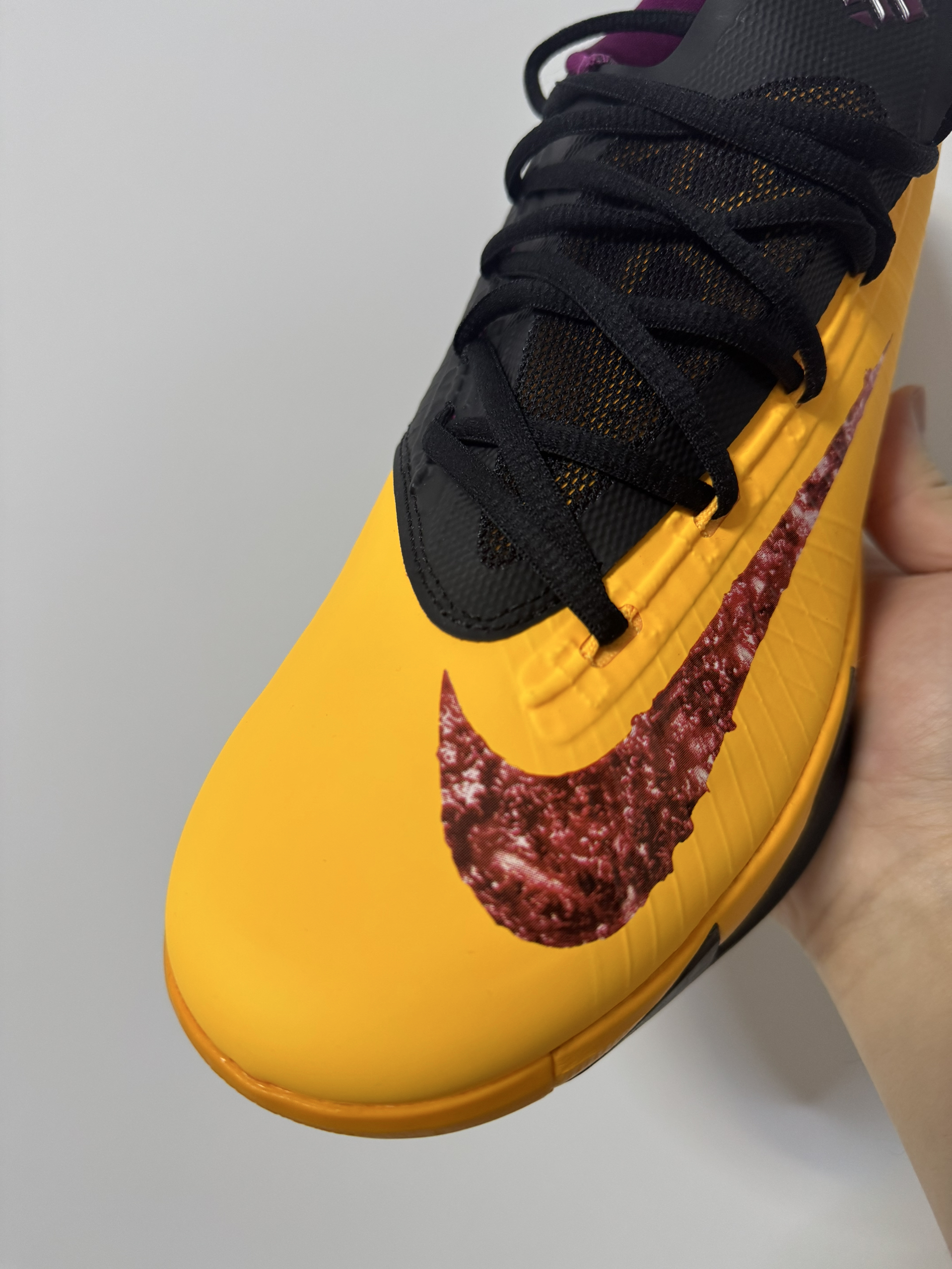 兄弟们,我是MY球鞋! 新鞋来了,不过是老鞋复刻! 入手了复刻KD6的全新配色!花生酱! 这个配色的灵感是杜兰特最爱吃的花生酱! 鞋身大面积采用黄色和黑色,很有李小龙的感觉! 耐克logo被花生酱涂满,很有辨识度! 鞋身十分修长,很像足球鞋! 个人觉得非常帅,不过会很挑脚型,建议试穿!