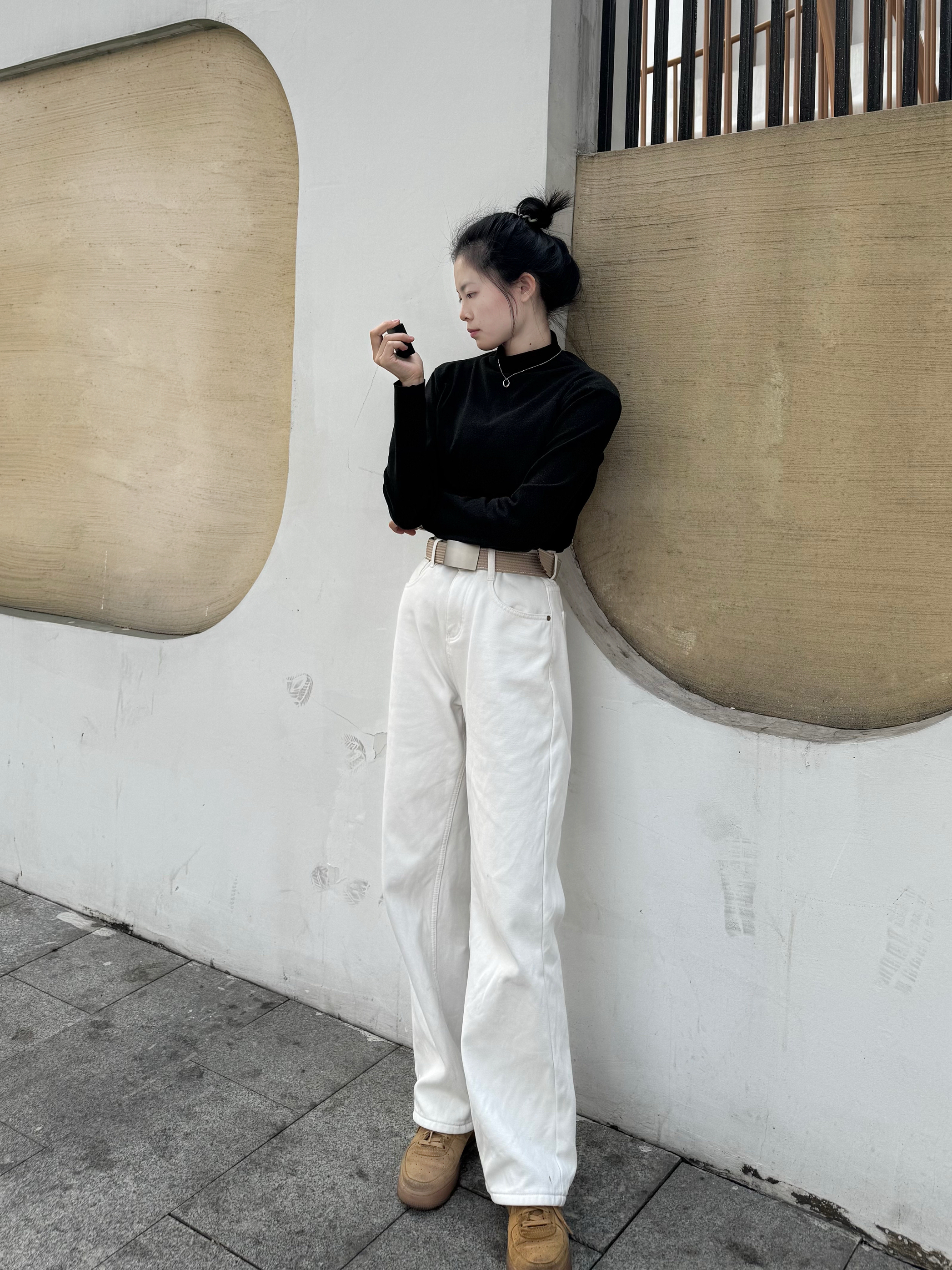 简单舒服的穿搭最耐看! 黑打底+白阔腿裤,随便拍拍都很出片~ 加绒牛仔裤太适合南方的冬天了,暖乎乎还显腿长! 这套出门不用想搭配,套上就走,懒人福音! #日常穿搭 #松弛感穿搭 #白色牛仔裤 #百搭打底衫