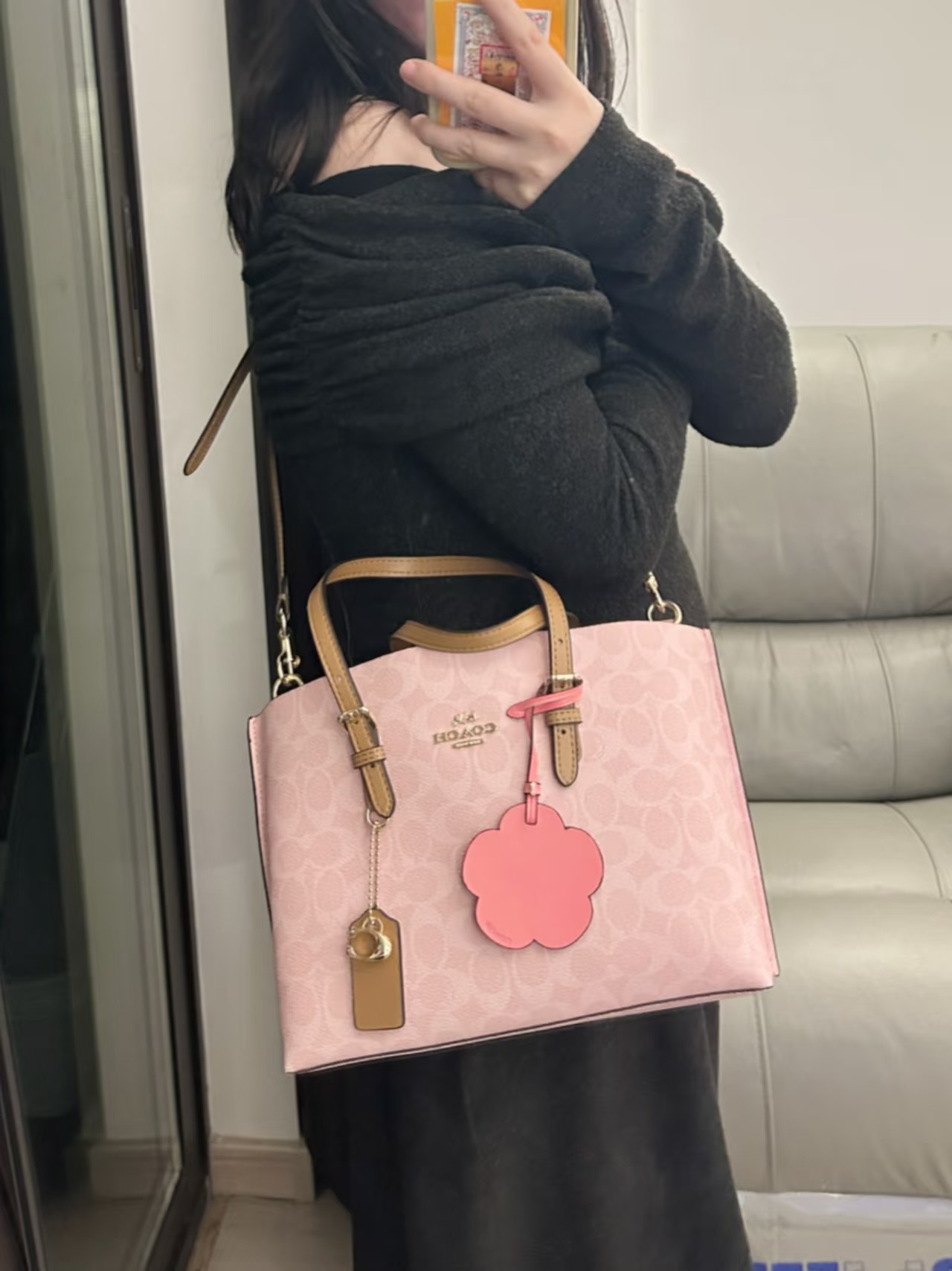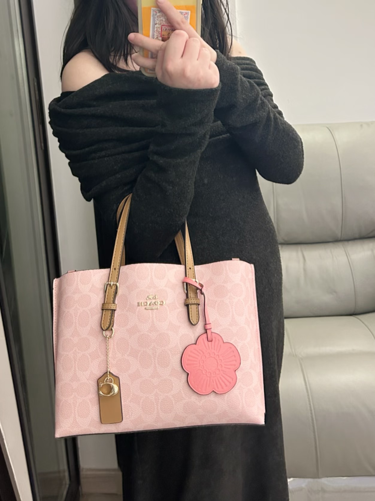 可可爱爱的草莓奶昔,喜欢粉色的宝宝闭眼冲 谁能拒绝一只粉粉嫩嫩的老花托特!这只Coach樱花粉托特真的把温柔和实用焊在身上了,三种背法我能背到天荒地老~ 🌸 手提背法 经典手提最显气质!棕色手柄和粉色包身撞色超高级,通勤拎着它干练又温柔,配西装或针织裙都很有氛围感,职场丽人感直接拉满💼 👜 单肩背法 宽肩带单肩背完全不压肩,解放双手超方便!日常逛gai、带娃出门都很稳,包型挺括不会塌,随便搭件...