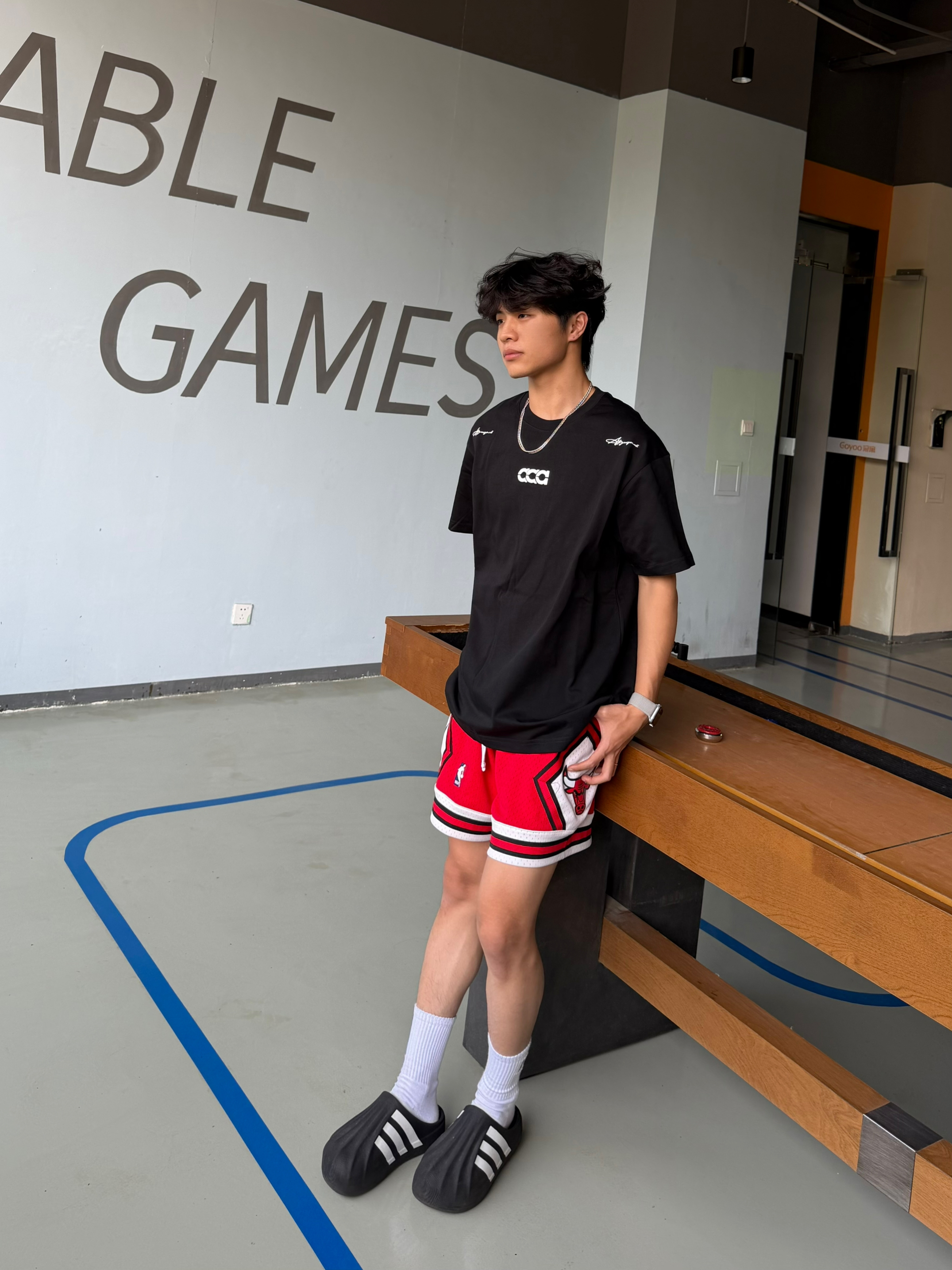 Atry 这件黑色短袖版型宽松,穿着不挑身材,日常出门、运动都合适! 面料摸着舒服,透气不闷汗,夏天穿很清爽! 胸口的小字母设计简约不花哨,搭配牛仔裤、运动短裤都好看,耐穿又耐看,是衣柜里百搭的基础款,日常随便一套都很利落!! 175 115 m码!