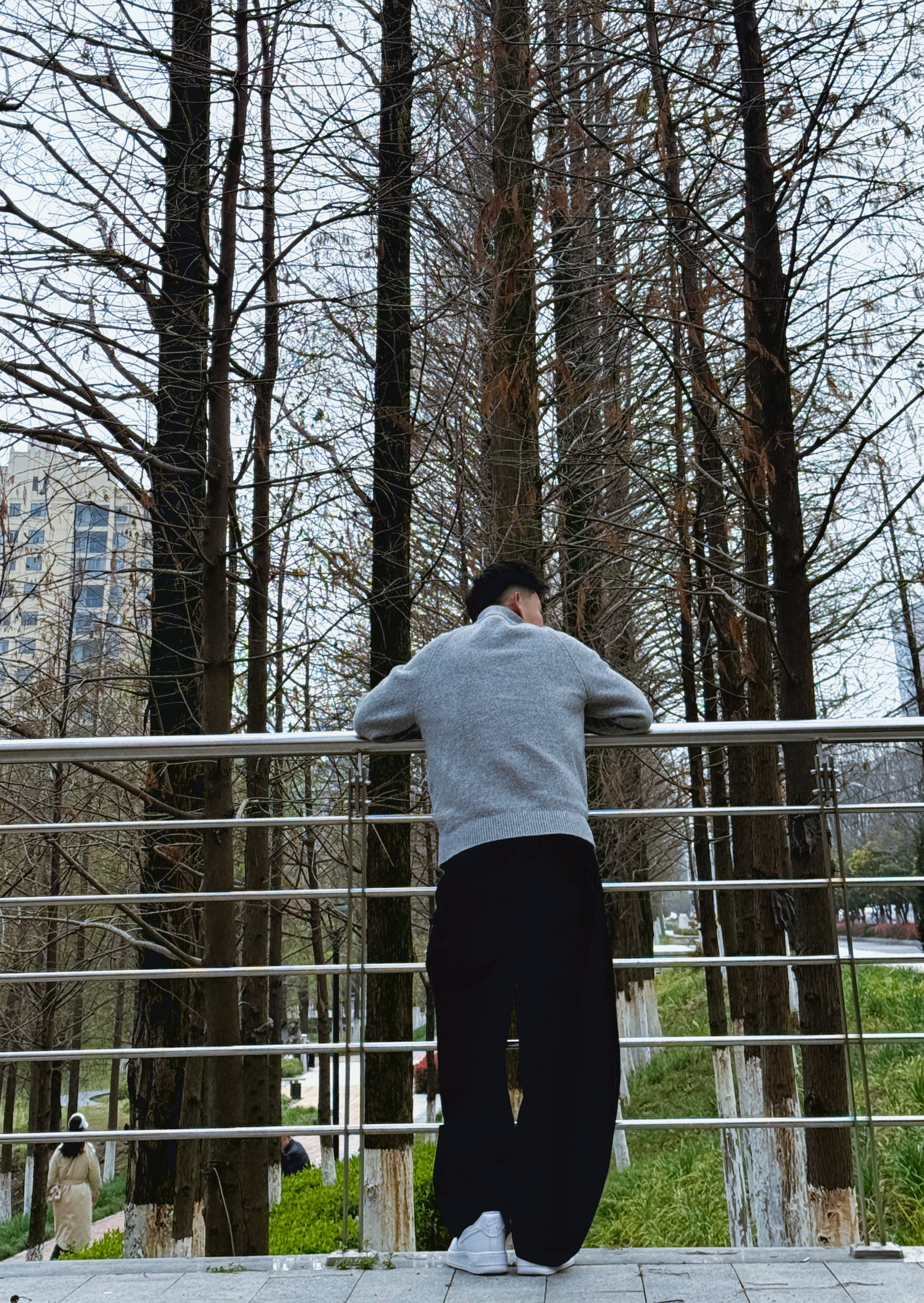 • 上衣:浅灰色半拉链针织衫,半开襟设计弱化了毛衣的沉闷感,既保暖又透气,是春秋过渡季的百搭单品。 • 下装:黑色阔腿工装裤,宽松版型修饰腿型,垂坠感强,与上衣的修身感形成对比,营造随性慵懒的氛围。 • 鞋履:纯白色厚底休闲鞋,提亮整体造型,同时增加了身高比例,让休闲感更突出。 尺码推荐~ 身高:175 体重:125斤 穿:L