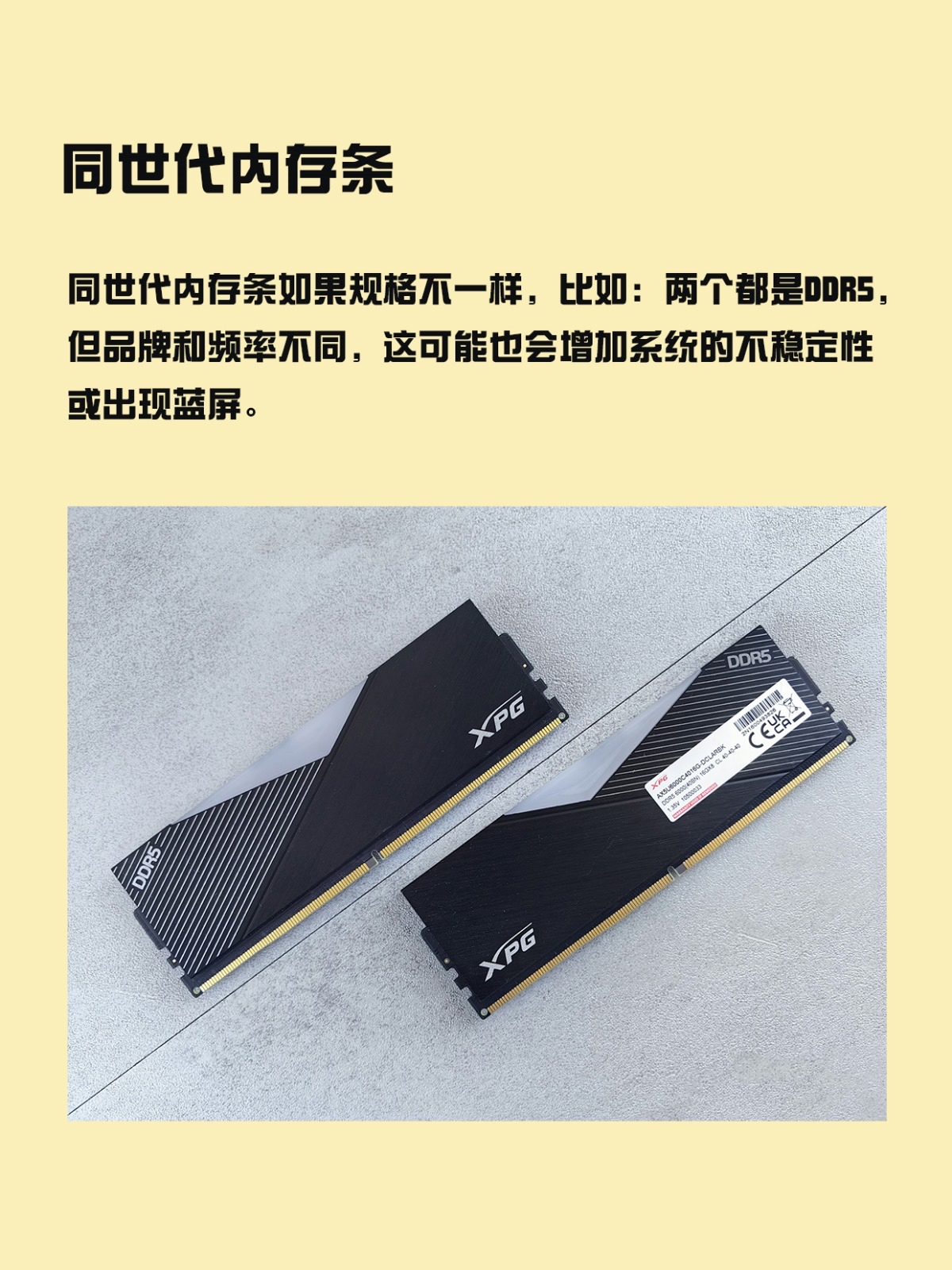 同世代内存条如果规格不一样,比如:两个都是DDR5,但品牌和频率不同,这可能也会增加系统的不稳定性或出现蓝屏。