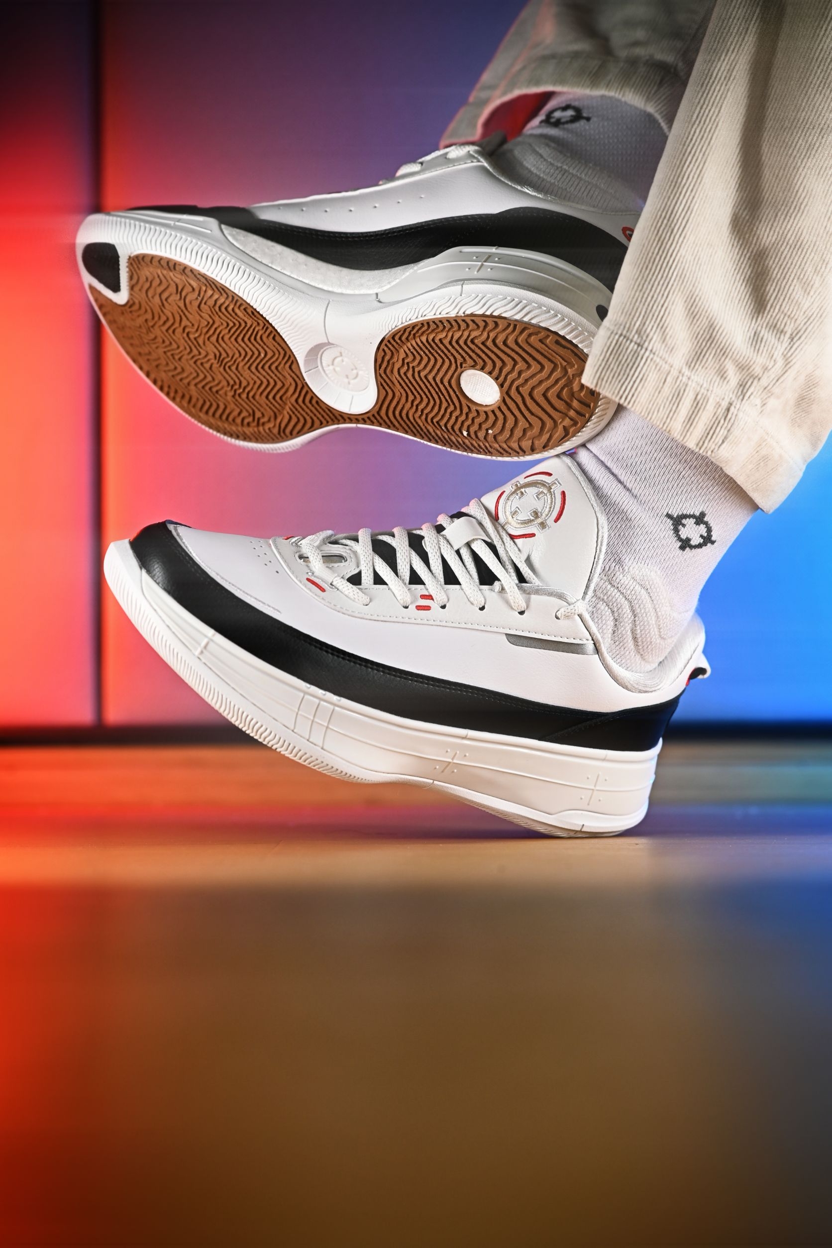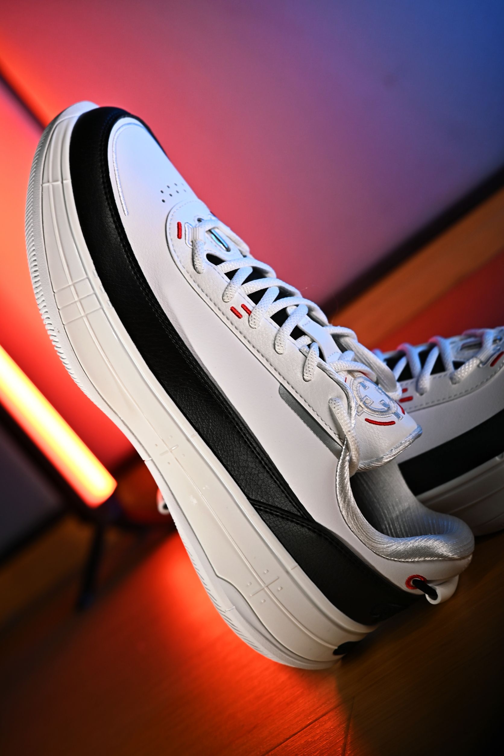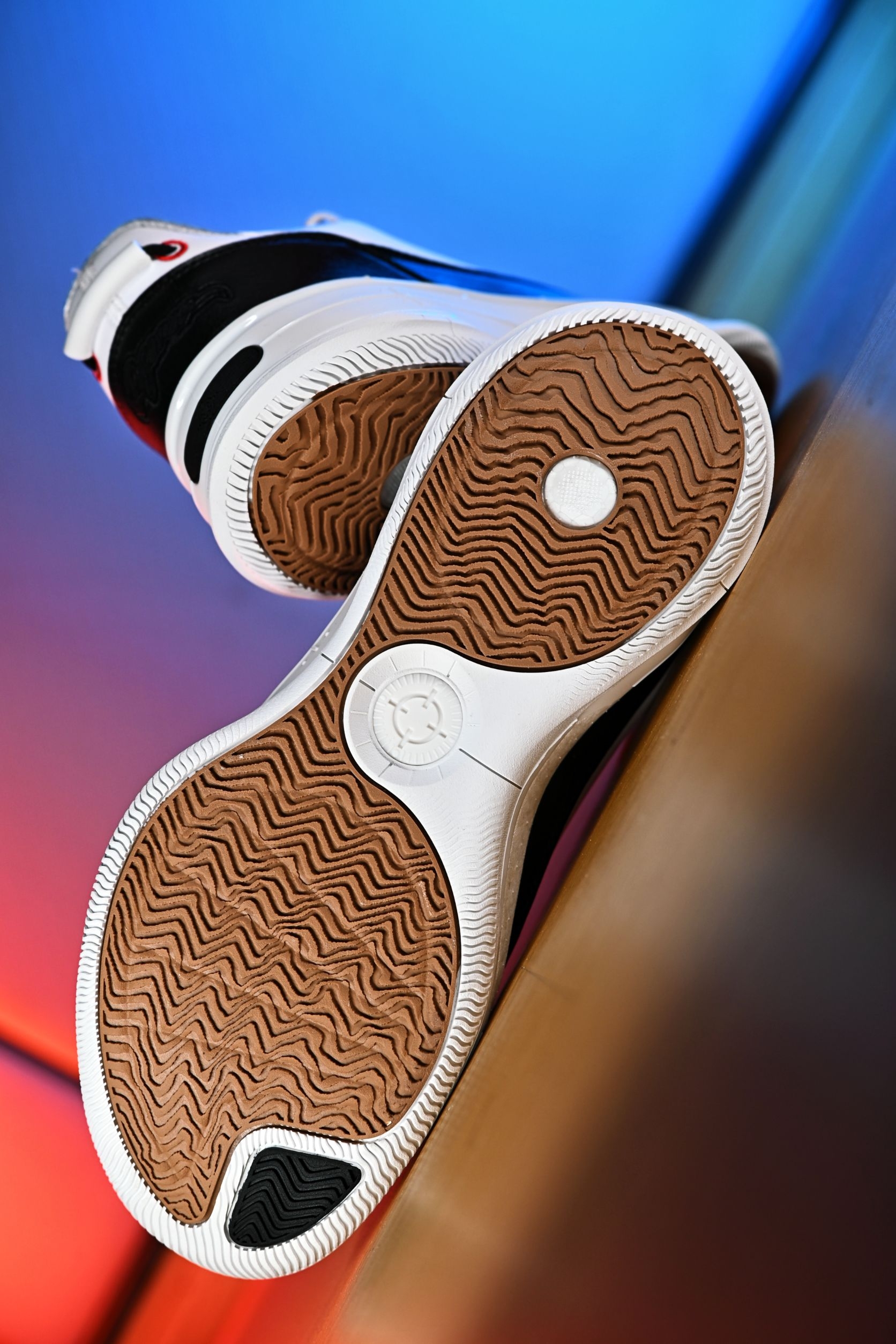 黑白熊猫配色是真的经典,复刻了那种老派篮球鞋的厚实轮廓,但上脚一点不笨重,通勤穿居然也不违和。 算是近些日子里,除了布克一代外少有的可以兼顾实战和日常的篮球鞋。 踩进去第一感觉是超临界发泡中底给的——软得刚刚好,不是那种塌陷的软,是起步有回弹、落地有缓冲的韧劲。侧面一整圈环抱式TPU把脚牢牢锁住,变向时安全感拉满。中底内置了抗扭片,整体跑起来更稳当,急停、变相都挺稳的。人字纹大底抓地很干脆,外场...