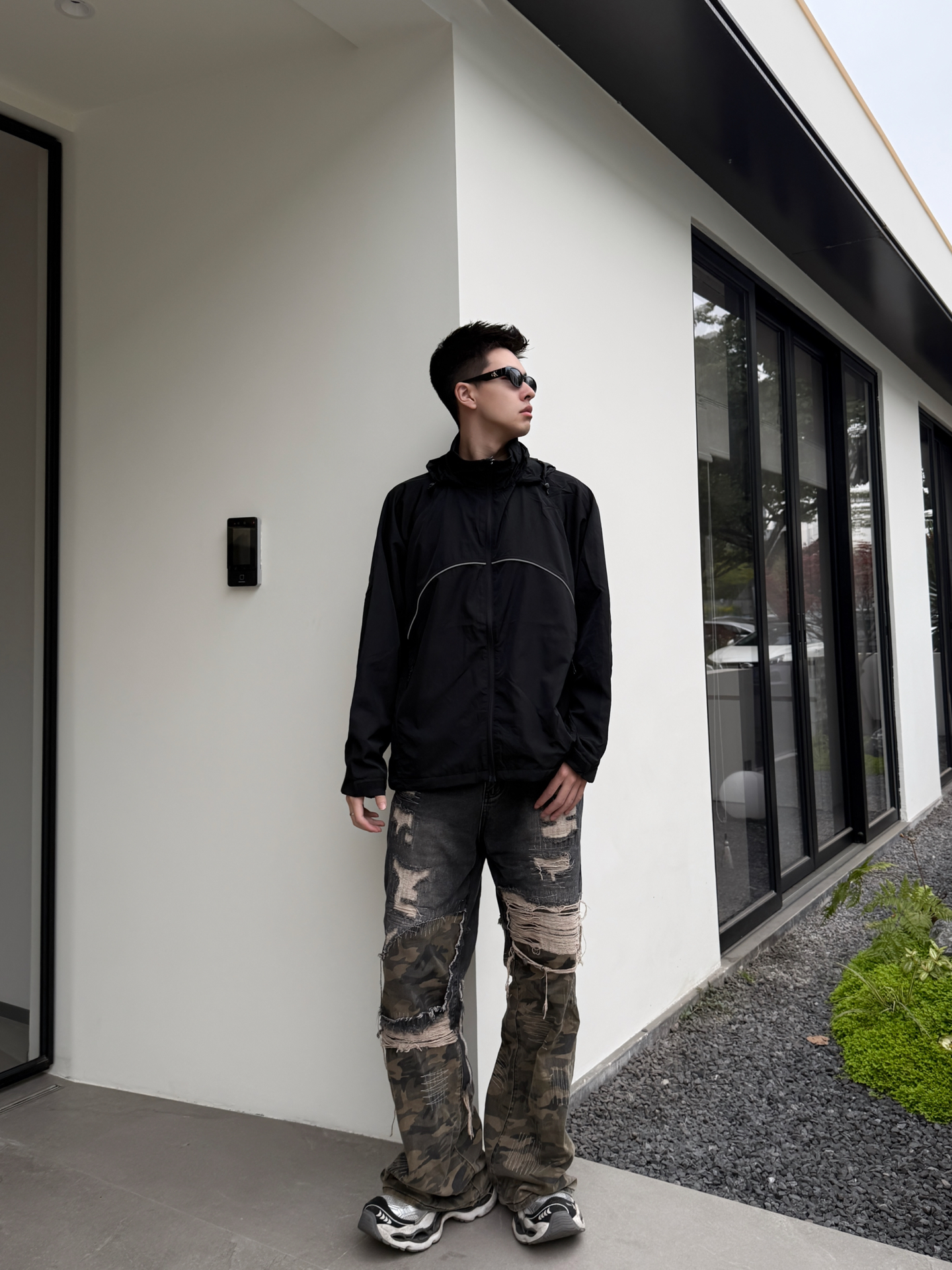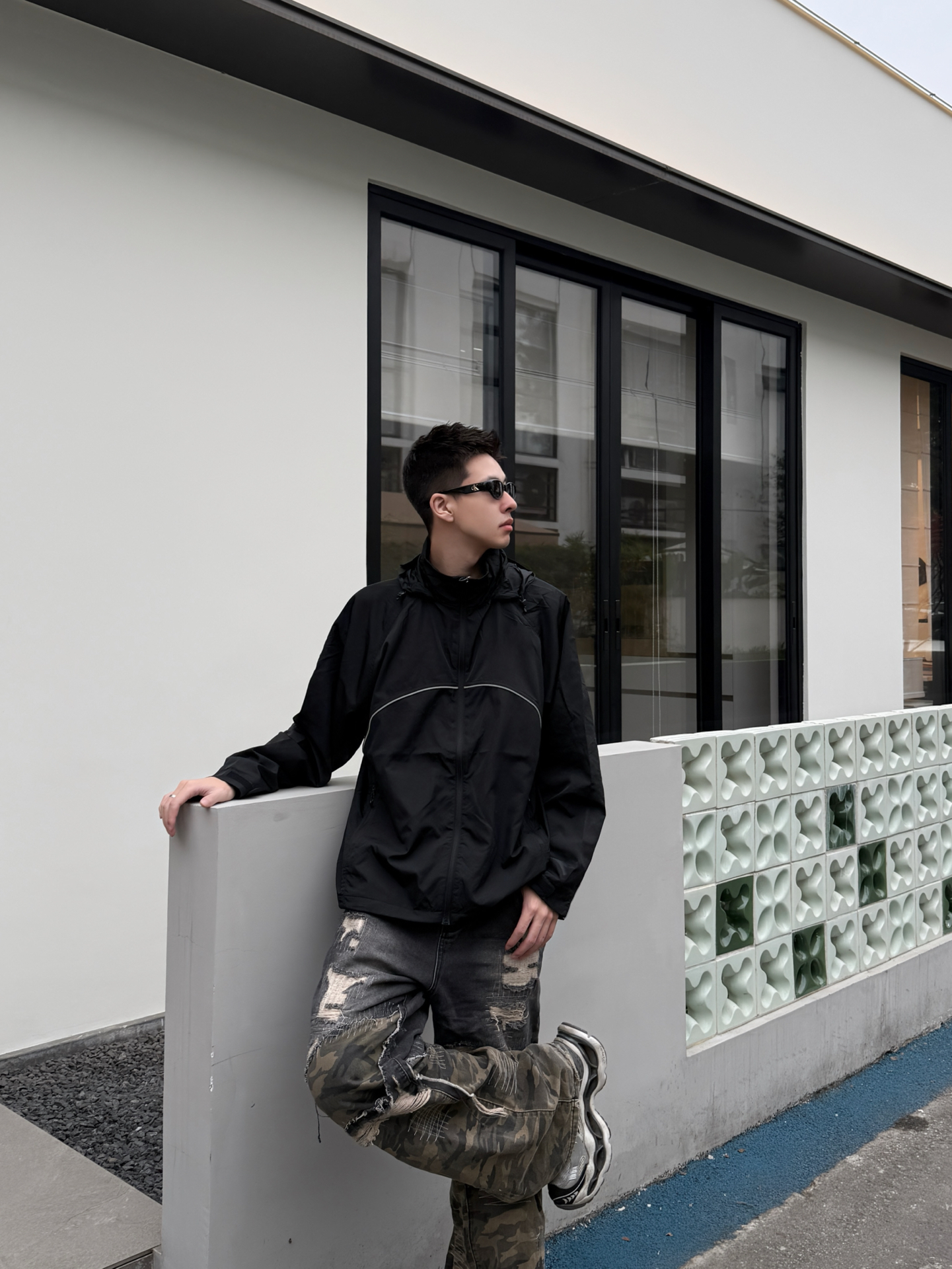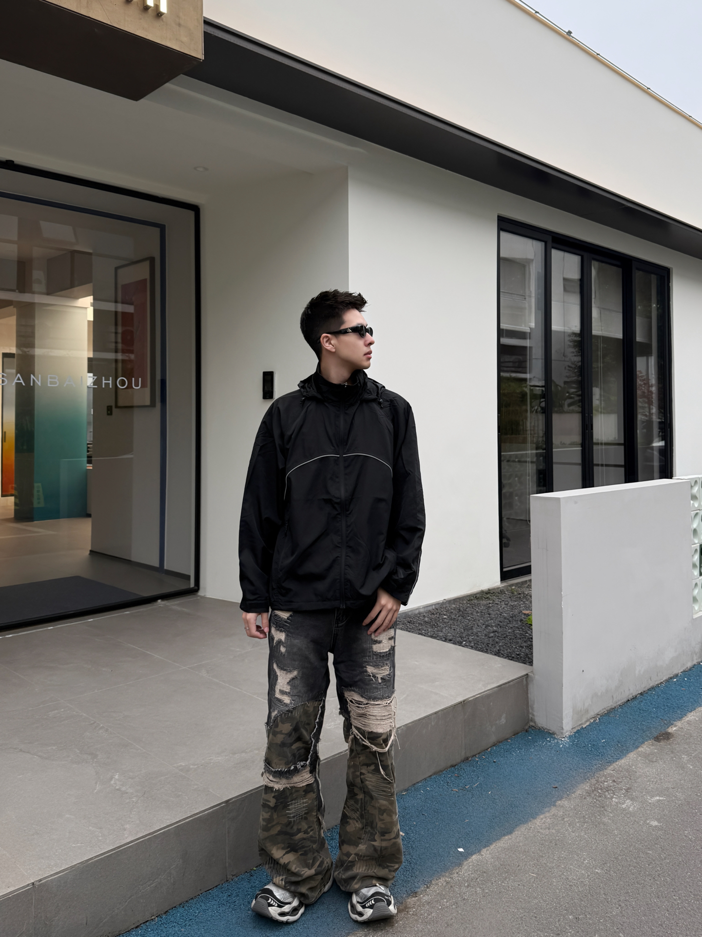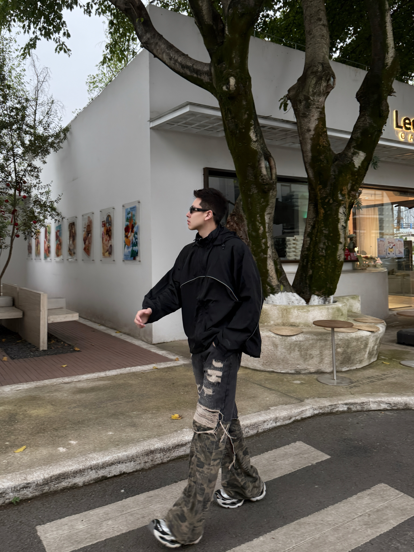 当软壳衣撞上迷彩破洞裤,瞬间解锁街头硬核感。 超级安踏连帽软壳外套,防风防泼水面料扛住春日温差,胸前反光线条在暗处悄悄发光,搭配做旧迷彩阔腿裤,从街角台阶到斑马线,每一步都带着山系户外的利落劲儿,舒服又出片。 不管是黑色还是紫色都超级好看,日常出街不知道穿什么选这件就对了。 tips:183cm 65kg 都是xl