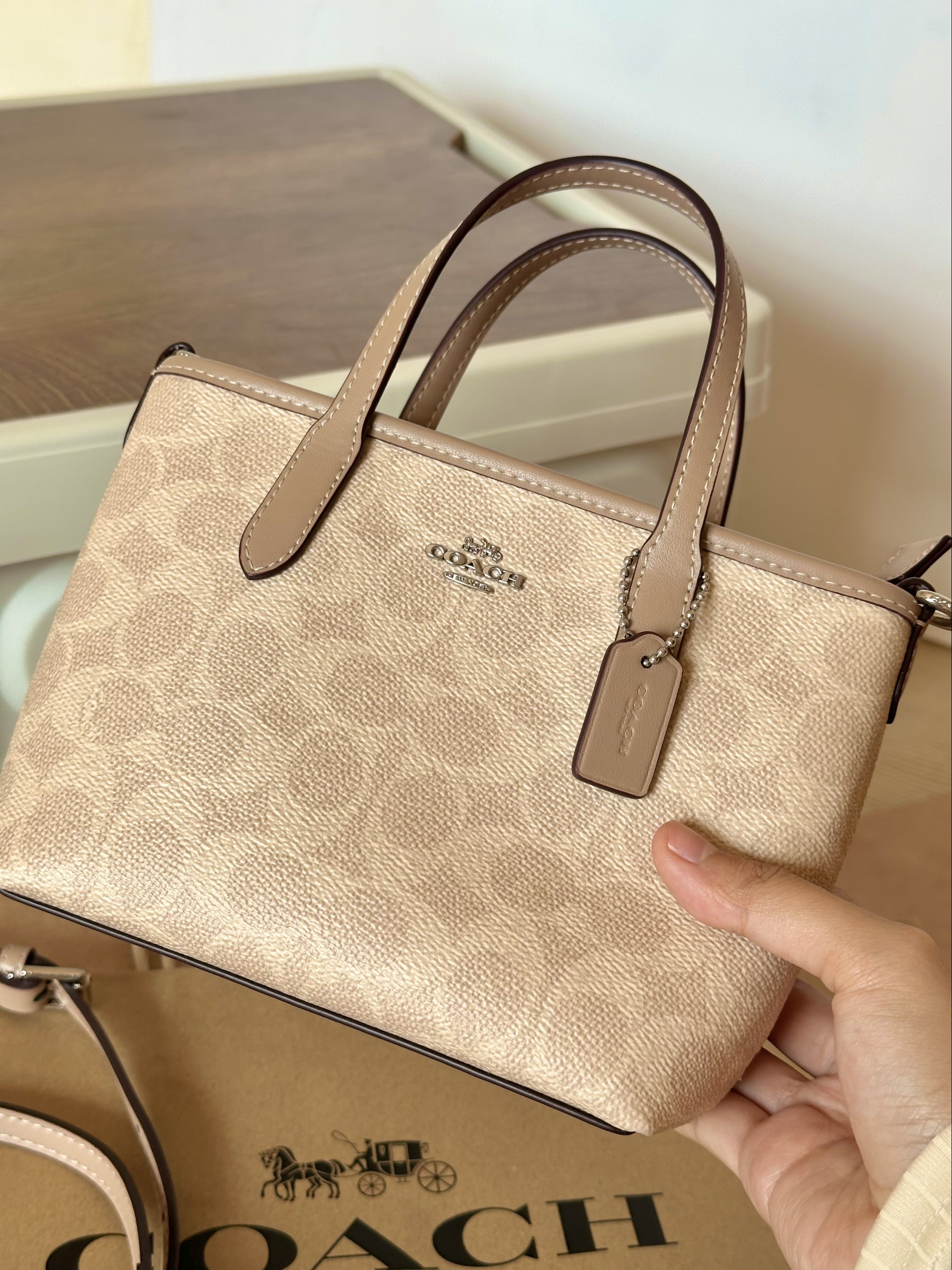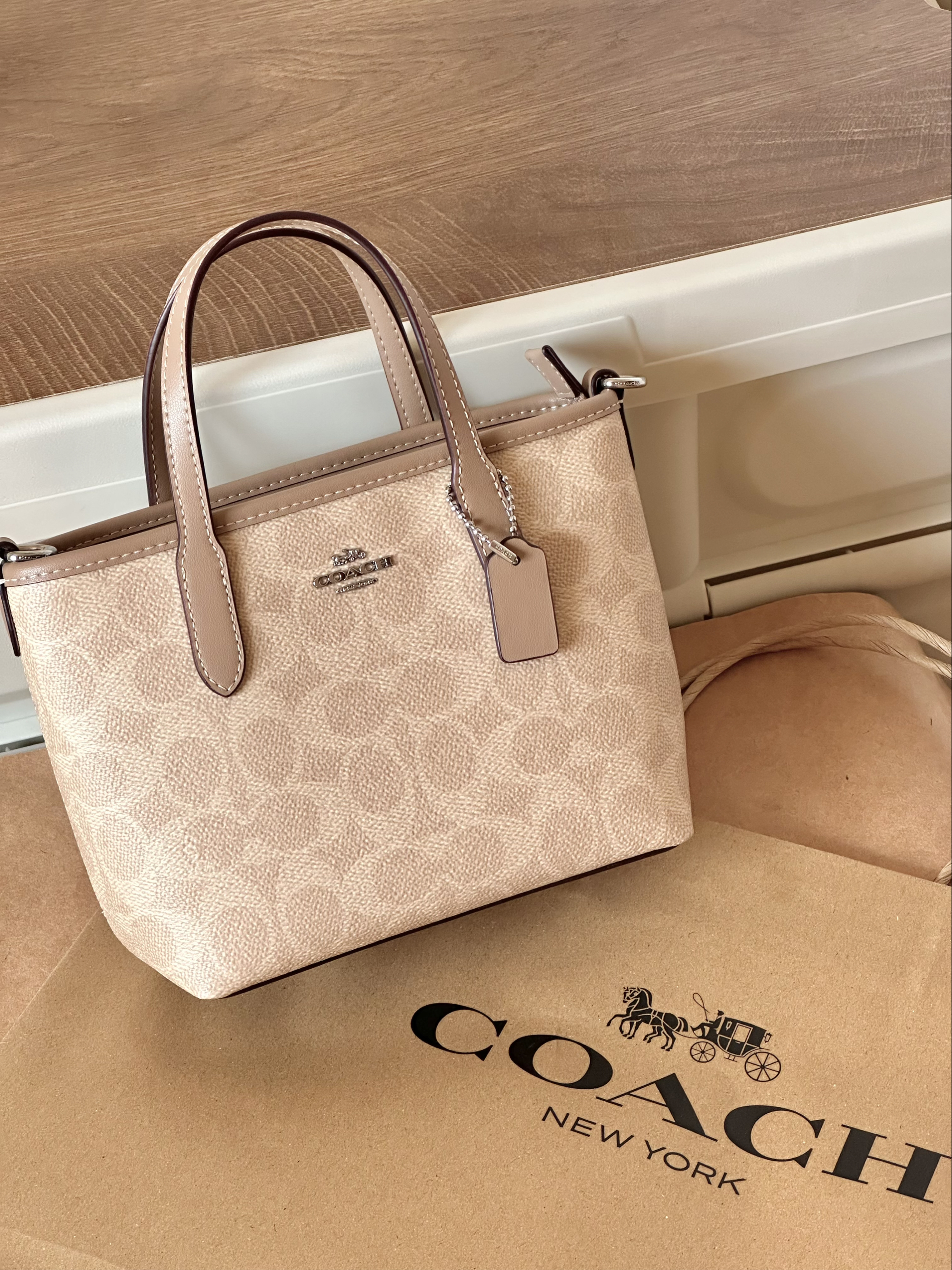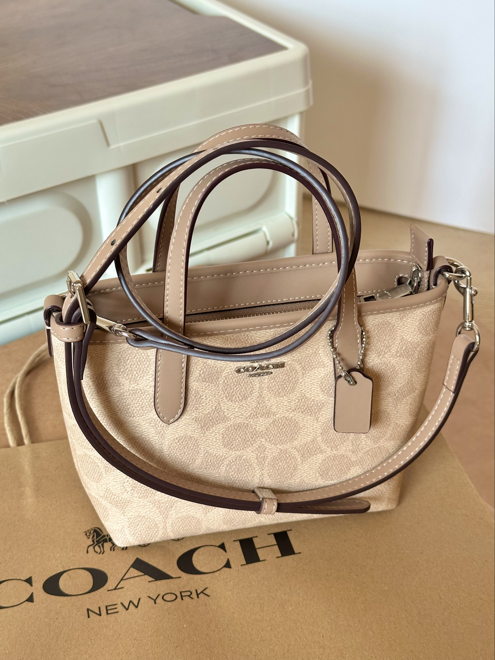 本篇笔记关联了Coach City 迷你 马车图案印花品牌徽标可拆卸肩带涂层帆布人造革购物袋单肩包托特包斜挎包手提包 灰褐色等商品,为用户提供真实的使用体验和购买参考。