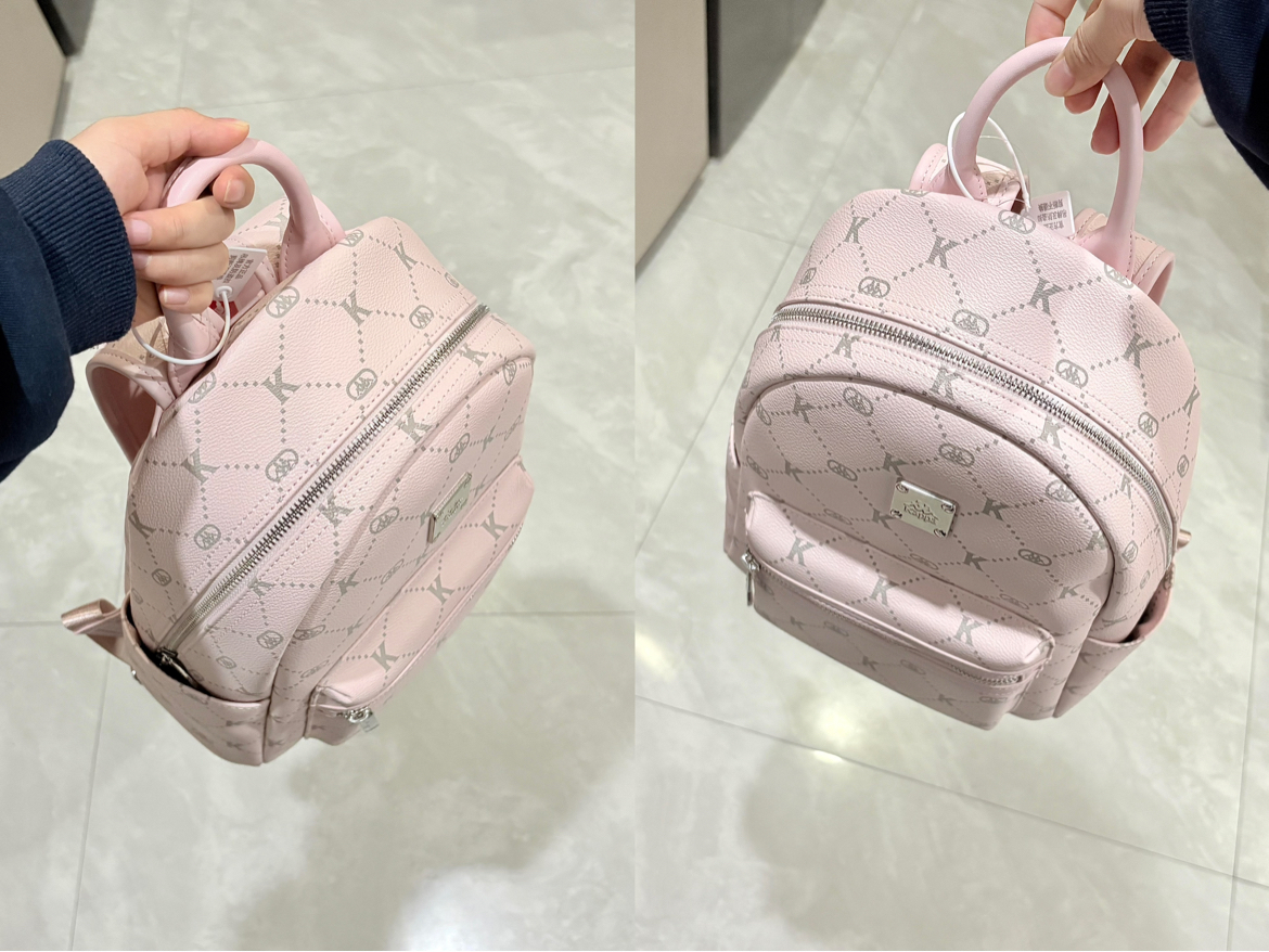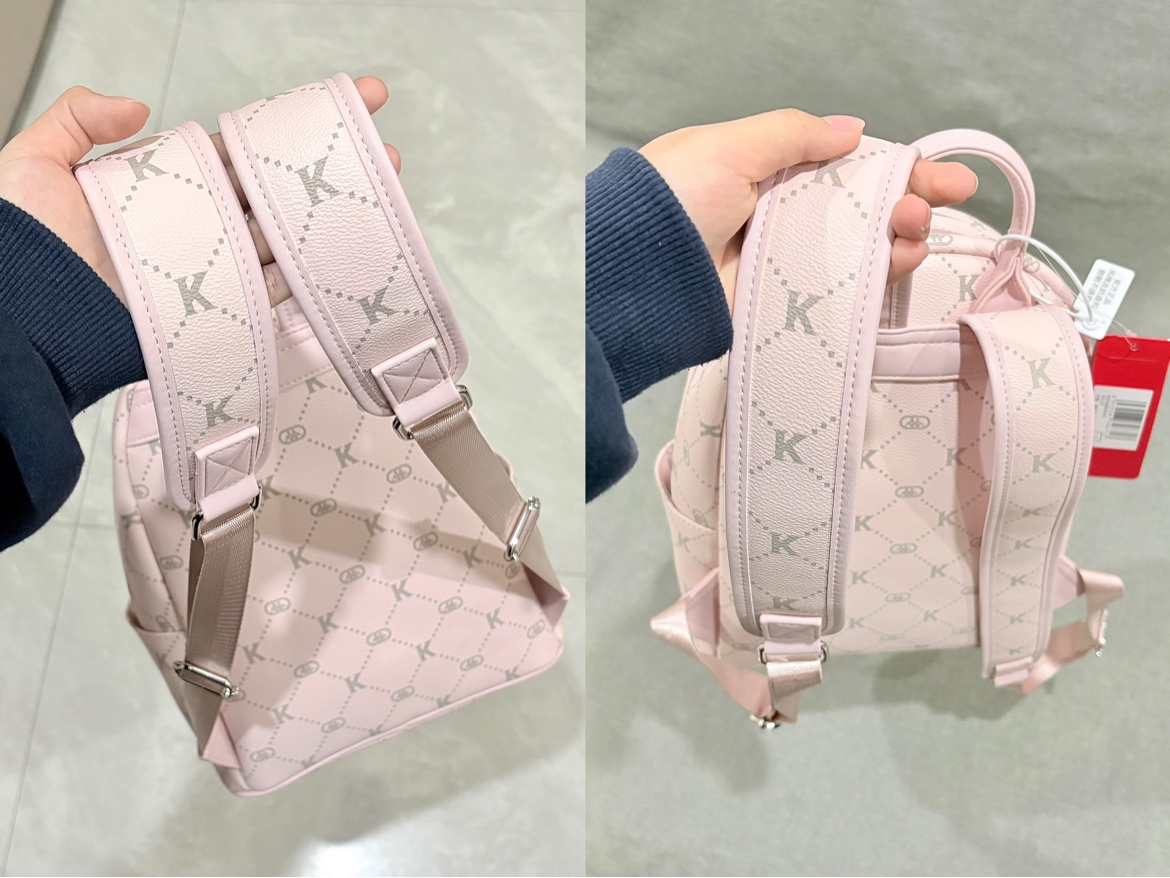 想找一款轻便又能装的小背包,怕印花显廉价、肩带太细压肩,也担心迷你款放不下日常出门的手机、补妆品,同时纠结粉色不耐脏。 这款浅粉印花双肩包大小刚好,能装下手机、粉饼和钥匙,肩带加宽设计,背久了也不会勒肩。包身是荔枝纹面料,摸起来有质感,印花规整耐看。 顶部有手提环,可背可提;前袋设计方便放小物件,五金顺滑,日常通勤、短途出游都合适。 浅色容易沾灰,需要及时擦拭,内部隔层不多,物品需要自己整理。 整...
