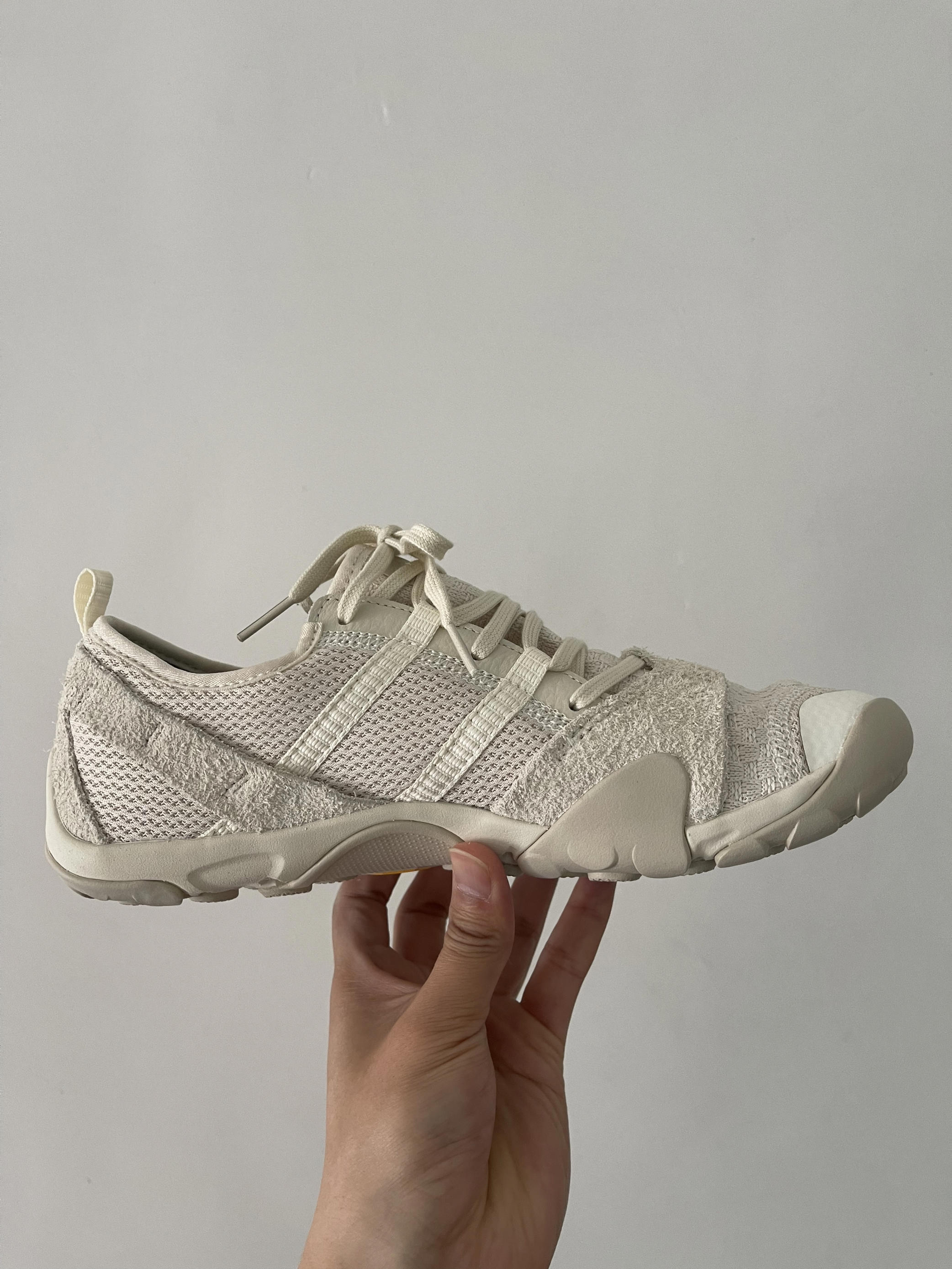 这双New Balance MT10 我穿了3个月左右,越穿越上头! 第一眼是“丑帅”挂的,米白翻毛+网布,复古户外感拉满,越看越有味道。 上脚第一感觉就是轻到离谱,走路像没穿鞋,脚底反馈特别直接,走久了也不累。 最惊喜的是鞋楦,宽脚、高足弓都能hold住,完全不挤脚,舒适度直接封神。 搭配上真的不挑,牛仔裤、运动裤、甚至工装裤都能搭,属于“随便穿都好看”的百搭款。 ⚠️ 小提醒:鞋身太轻薄,遇水...