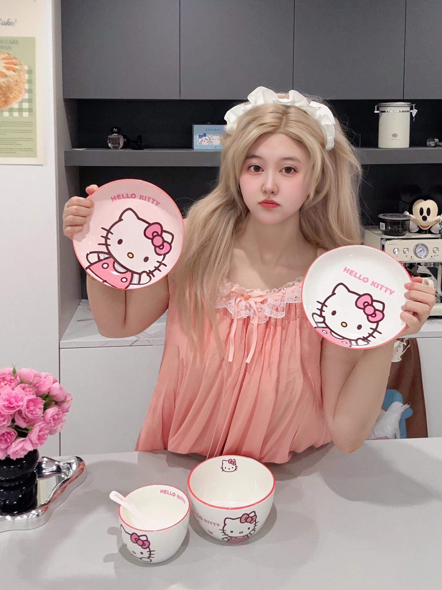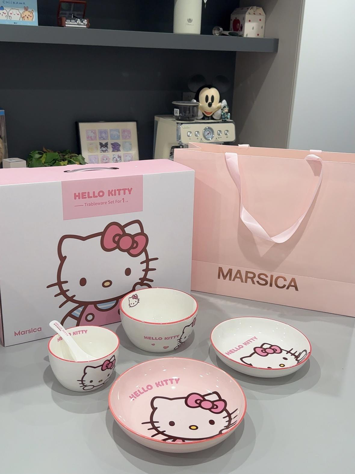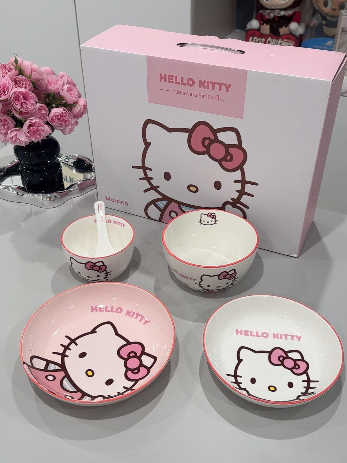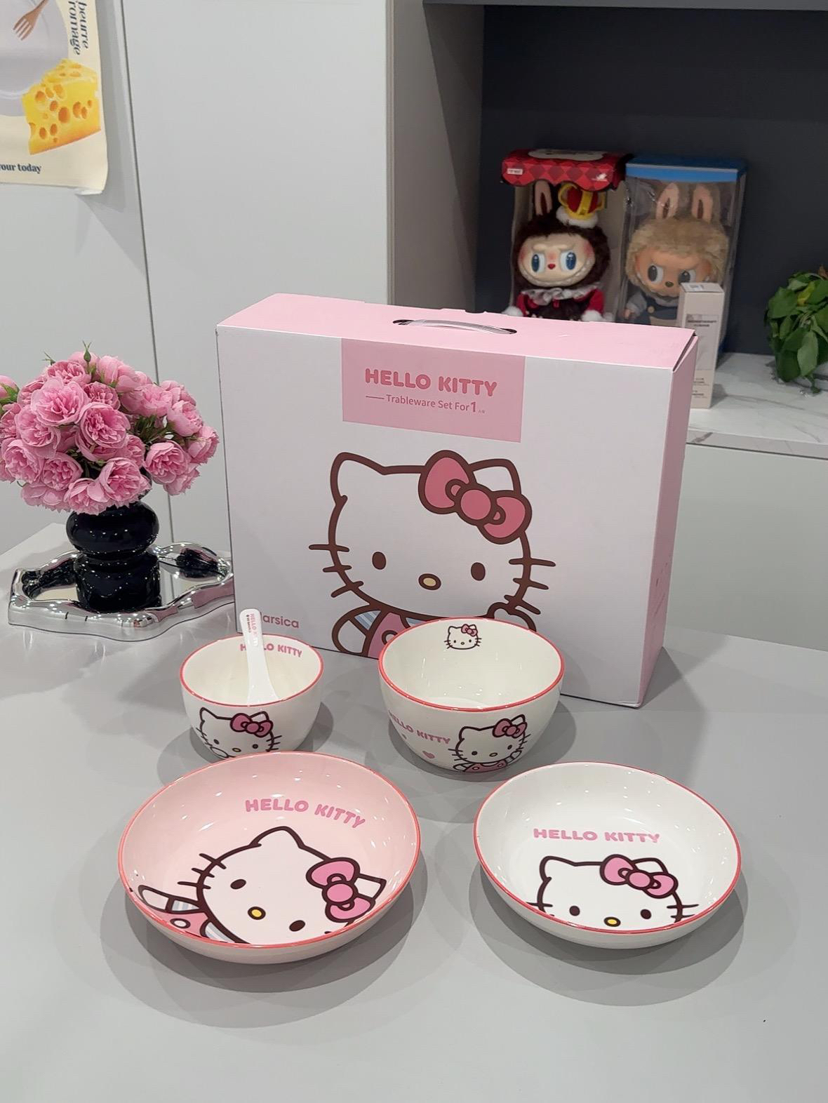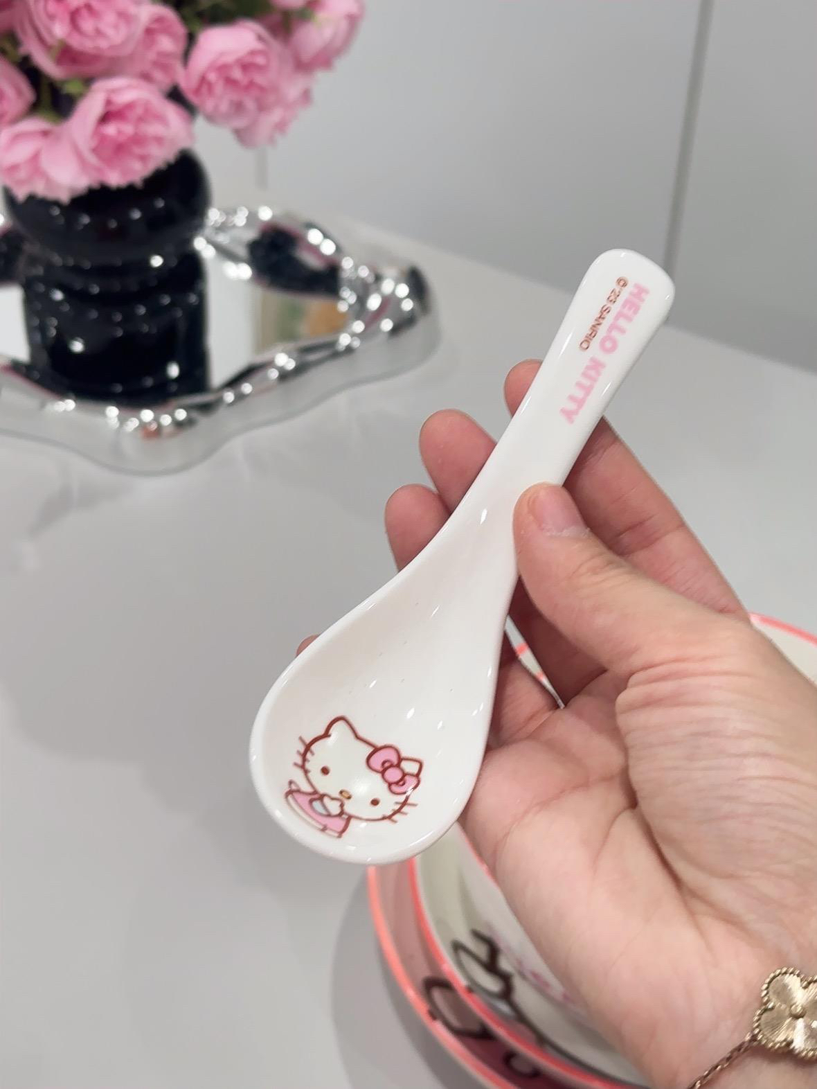 🎀Hello Kitty 餐具这一套用起来好幸福! 盘子 碗 勺子!💕 它的陶瓷质感很好, Kitty 图案超清晰又可爱~ 太萌啦!粉嫩粉嫩滴~ 我喜欢的漂亮餐具! 三丽鸥 美美哒! 今天多吃两碗饭~