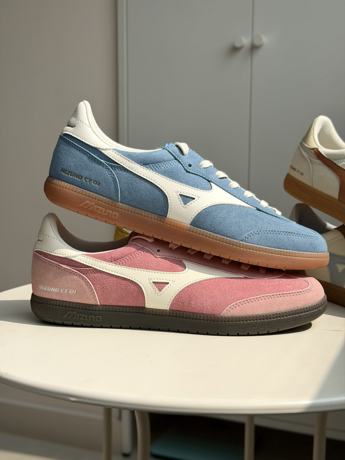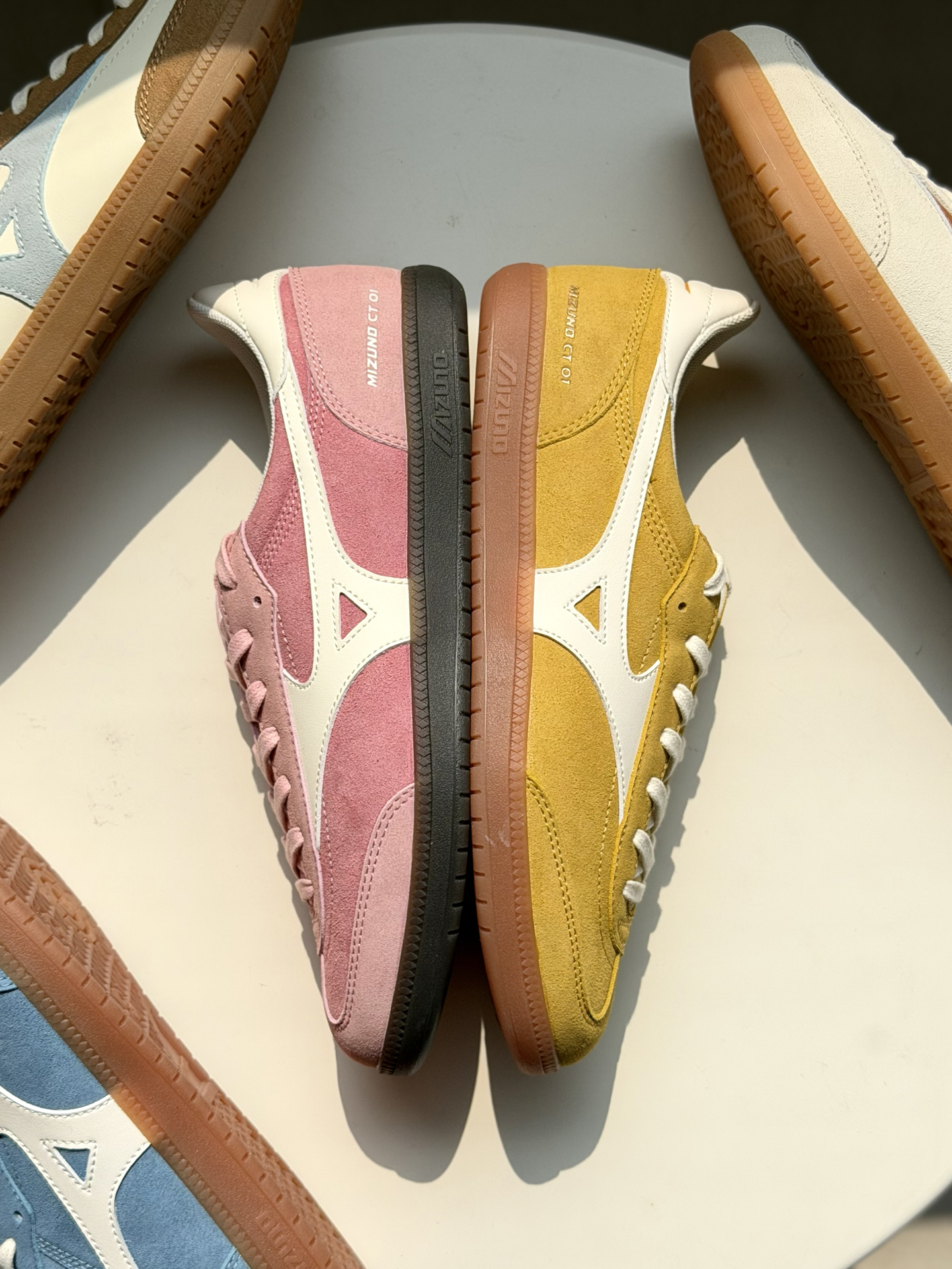Hello匹斯来啦! 今日分享 Mizuno CT 01复古薄底板鞋 不是我说兄弟们,美津浓的薄底板鞋是真的好看又好穿! 这次的五个配色你最喜欢哪个呢? 雾霾蓝、雾黄色、纸草色、粉桃色和黄褐色都是很适合春天的配色了,上脚很百搭而且很吸睛,真的是我的春季口粮鞋啦~ 如果你在找一双既有性价比又百搭的复古板鞋,听我的选它准没错哦! 尺码不偏,我建议大家按照正常板鞋码数选择~