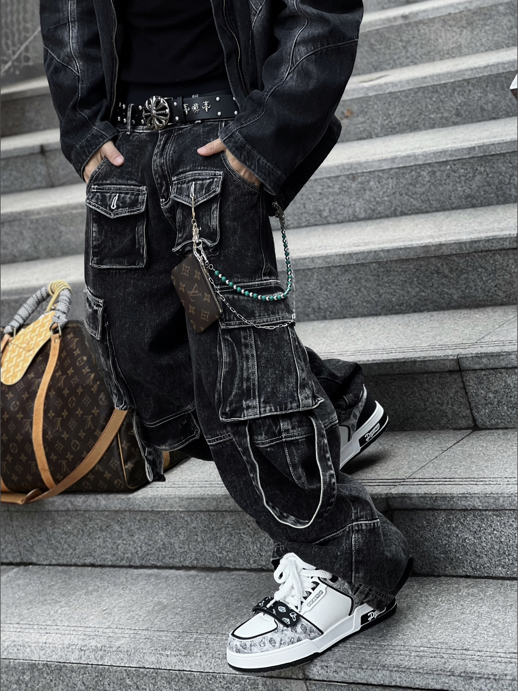 Hi、这里是有点懒的薯条🍟~ ☑️我的基础款从不无聊💁 全靠单品对冲出风格🆒 🔘哑光黑牛仔套装的酷飒 黑白牛仔🤠球鞋的清爽 老花旅行包的复古质感 混搭珠链配饰的潮酷细节⛓️ 黑白配色的极简,遇上版型与配饰的多元碰撞 穿搭不仅是出门Look,更是和同好的审美共鸣🤝 🎉谁说黑白没有潮流范、我是把他拿捏住!◽️◾️