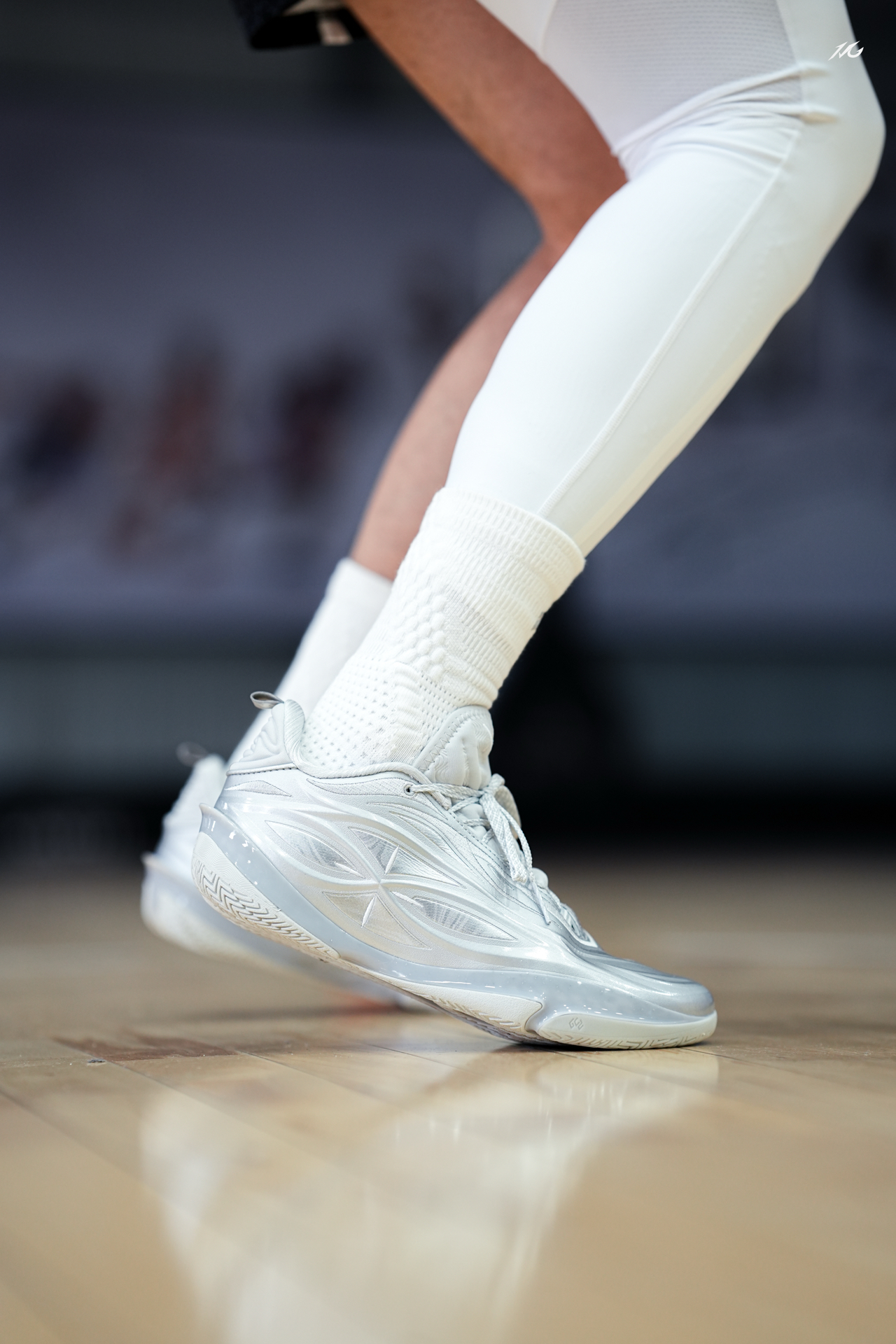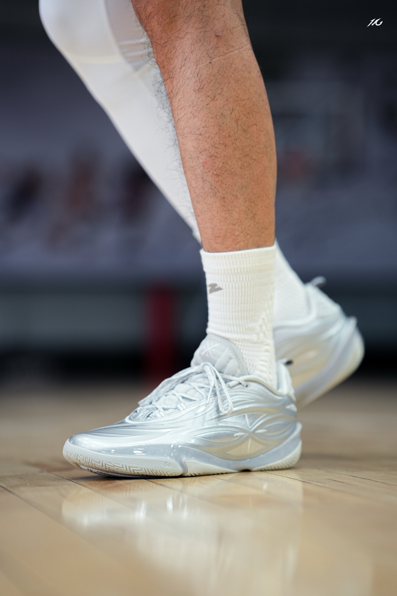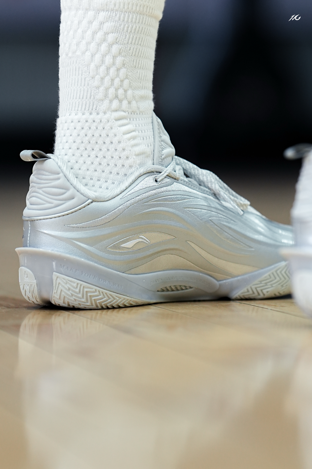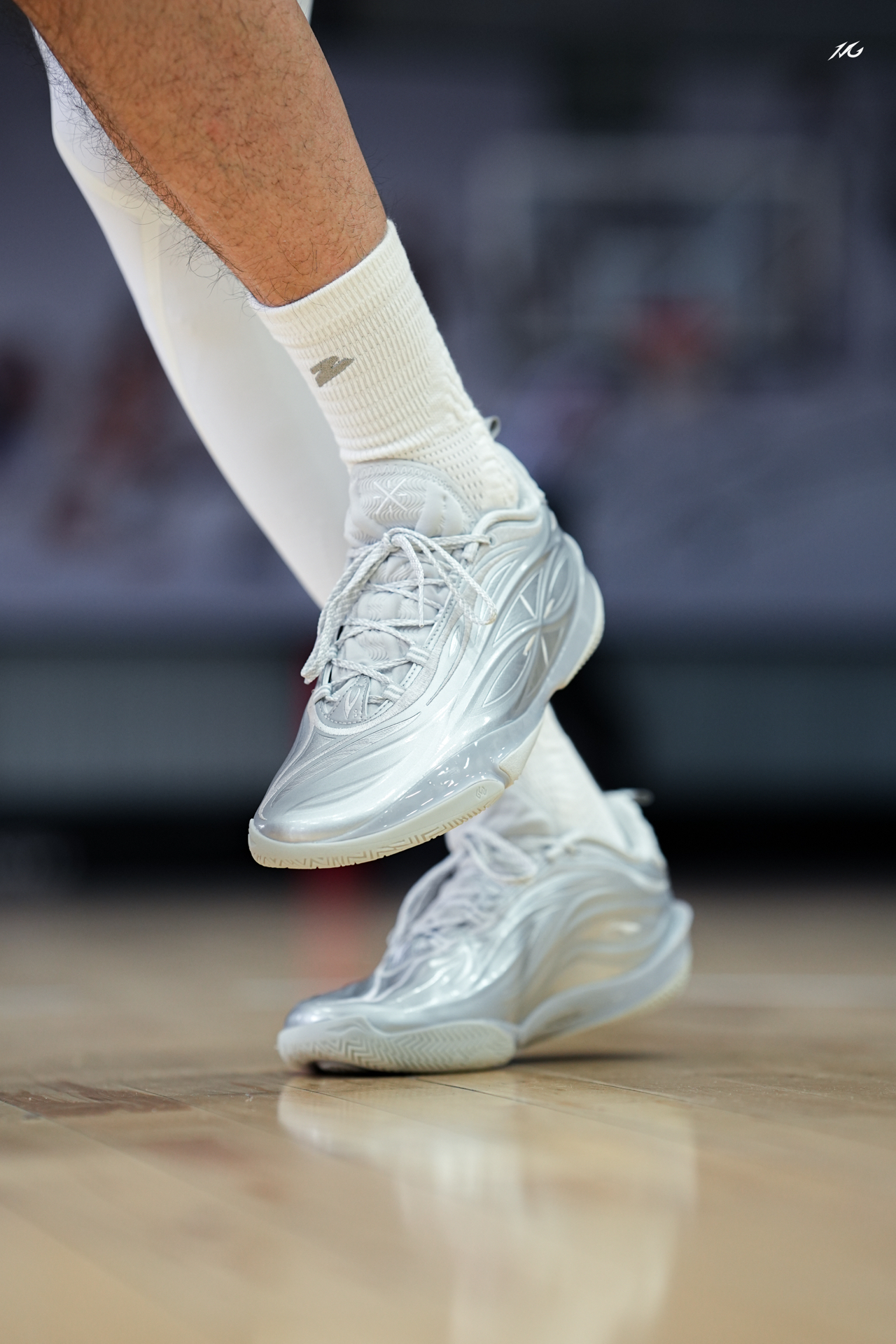 相当靓眼的一款金属银808 5ULTRA,这是真的白马银枪啊?!! 你们觉得上脚这类配色的球鞋会不会晃倒对方眼睛! 脚感上我186/160体重穿起真的软弹,但多少软的有点拖沓了,它就适合喜欢直接脚感的选手! 尺码建议瘦脚选小半码!