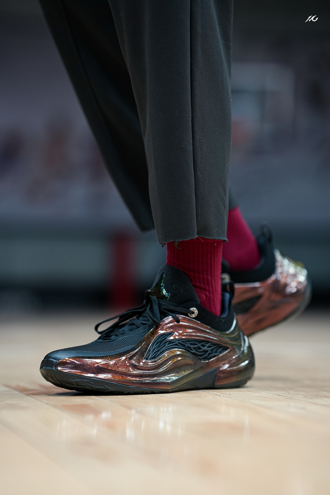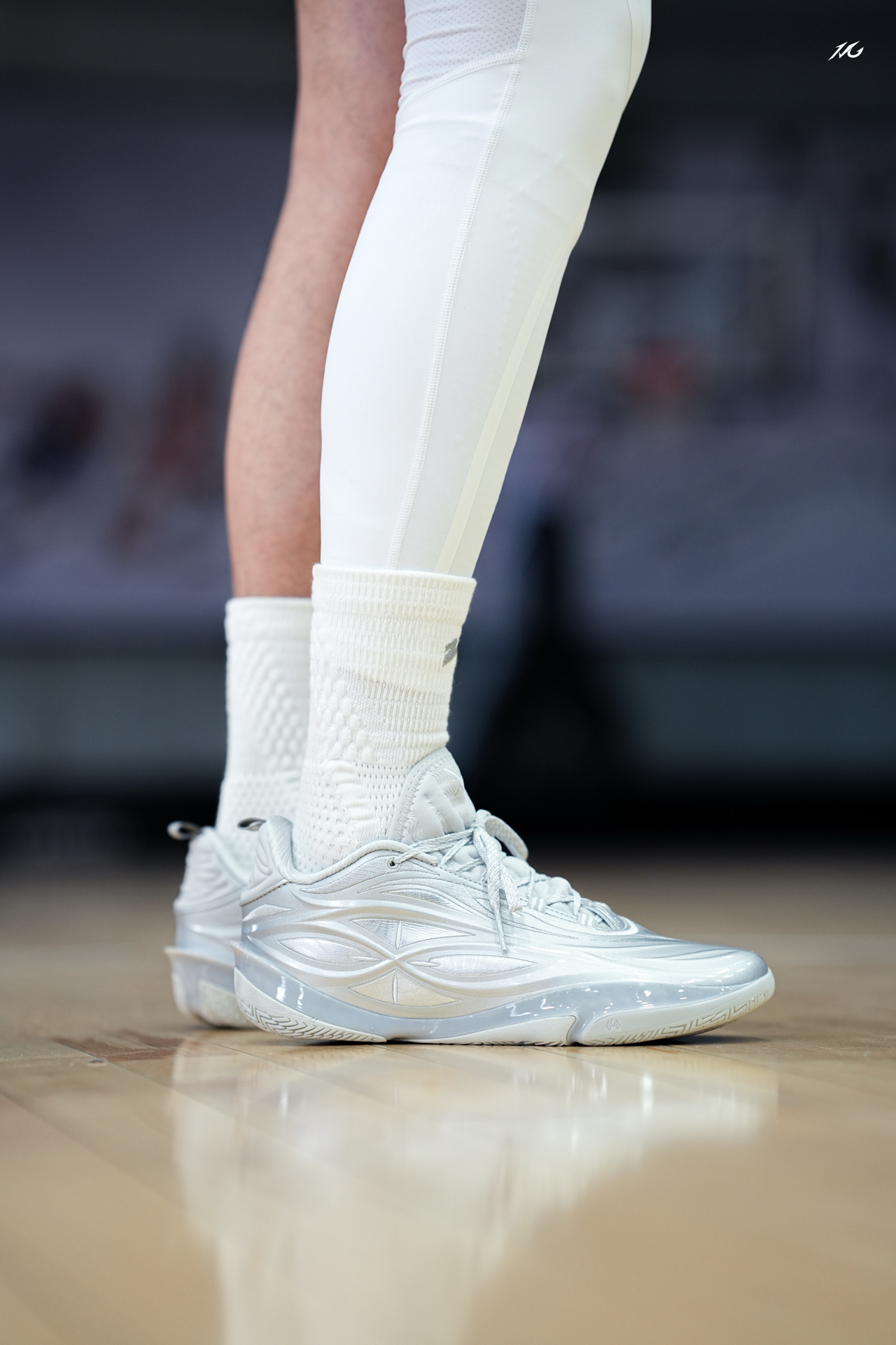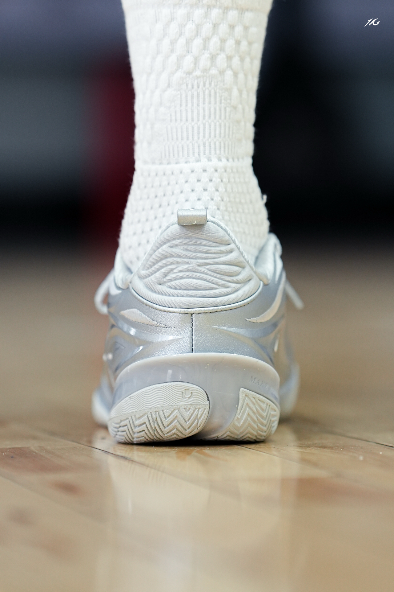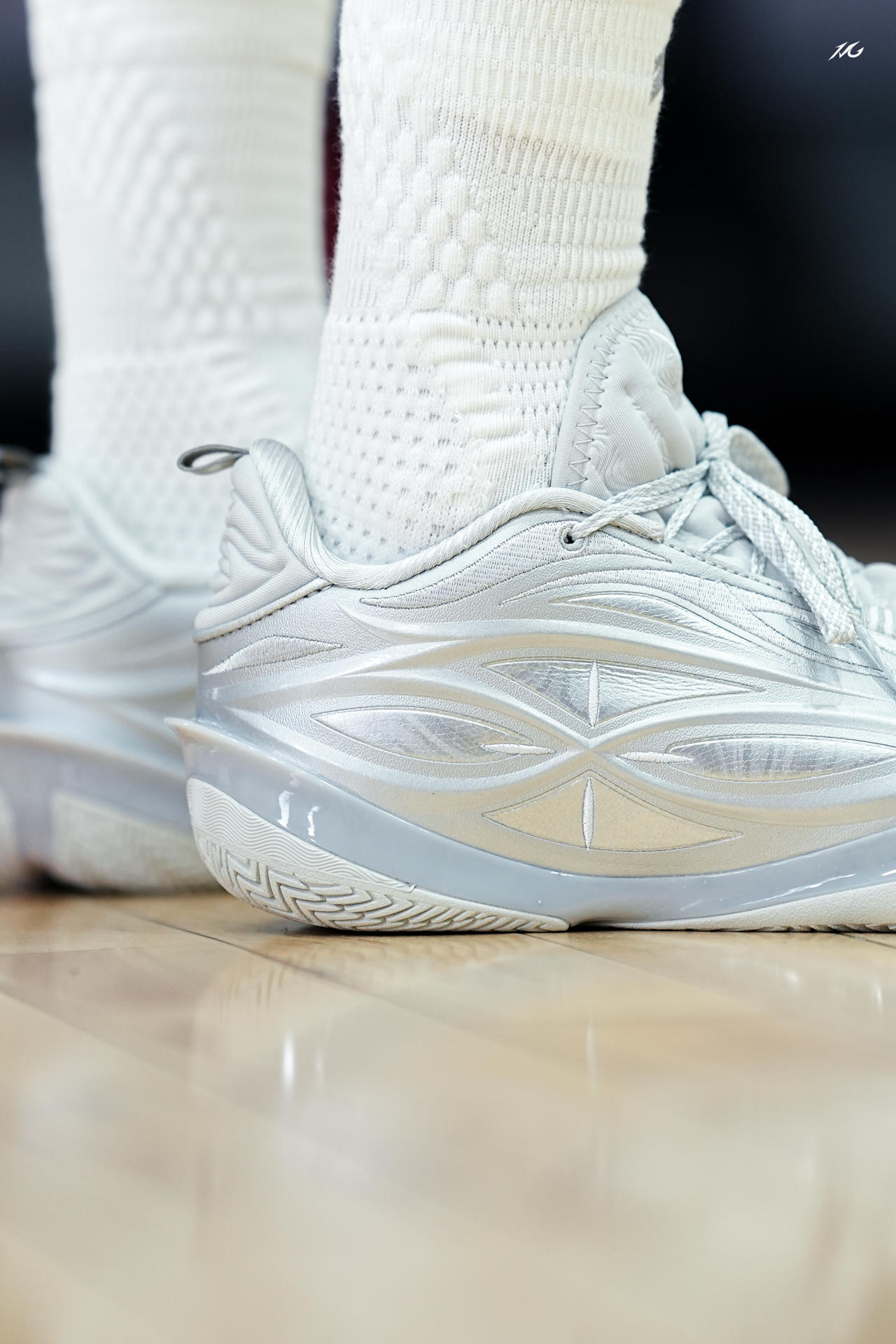 相当靓眼的一款金属银808 5ULTRA,这是真的白马银枪啊?!! 你们觉得上脚这类配色的球鞋会不会晃倒对方眼睛! 脚感上我186/160体重穿起真的软弹,但多少软的有点拖沓了,它就适合喜欢直接脚感的选手! 尺码建议瘦脚选小半码!
