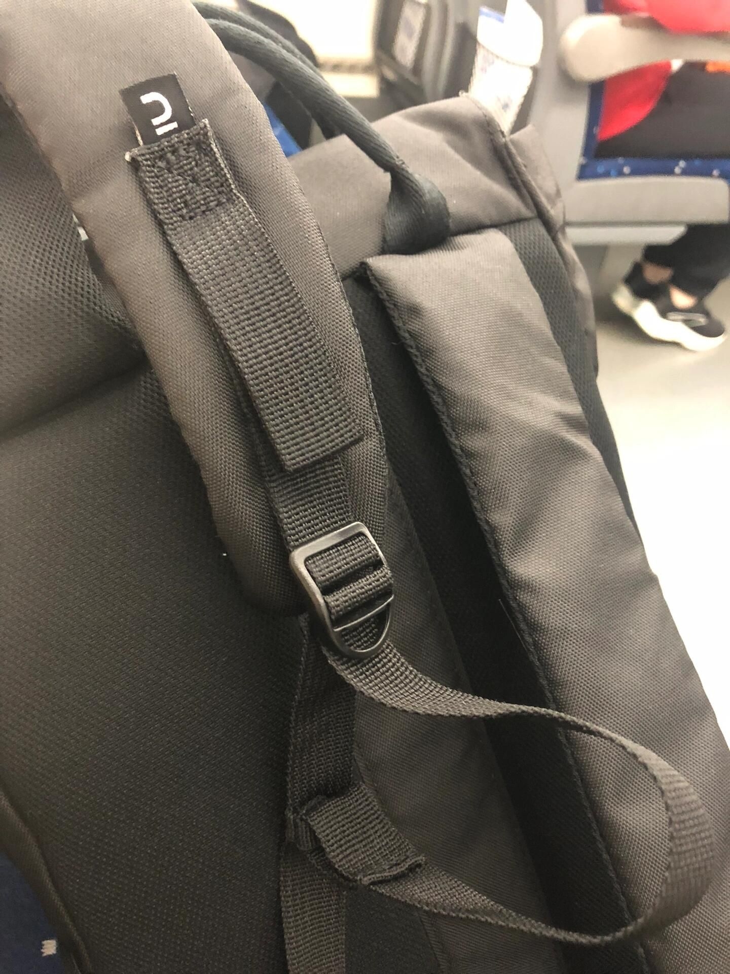 迪卡侬登山系列10L 超级简单的外观 超级大的容量 超级多的分区设计 超级减压!!!!! 电脑(不记得14or15寸)➕ipad➕电脑充电器➕爱茉莉染发剂➕牙膏➕iPhone6sp➕记事本➕校牌 这包真的很注意细节,咱看这背包带还是锁上了,这背部的设计