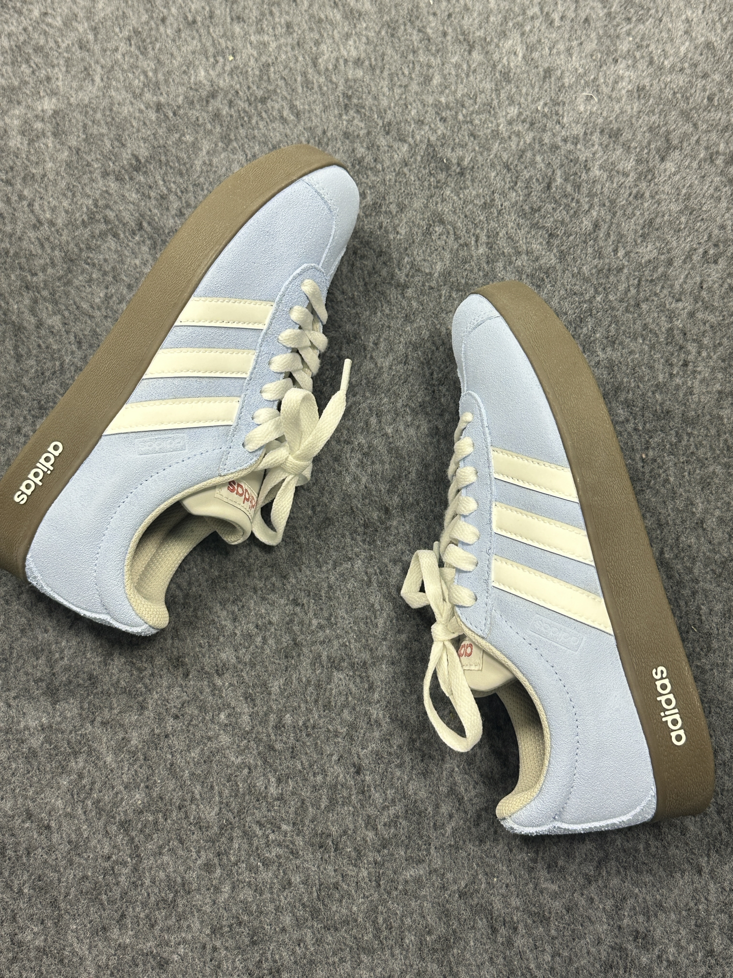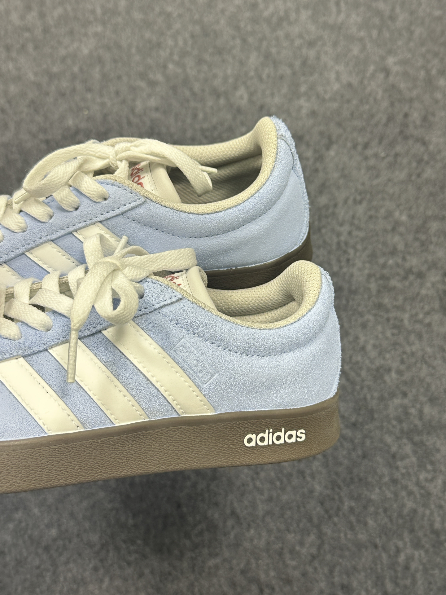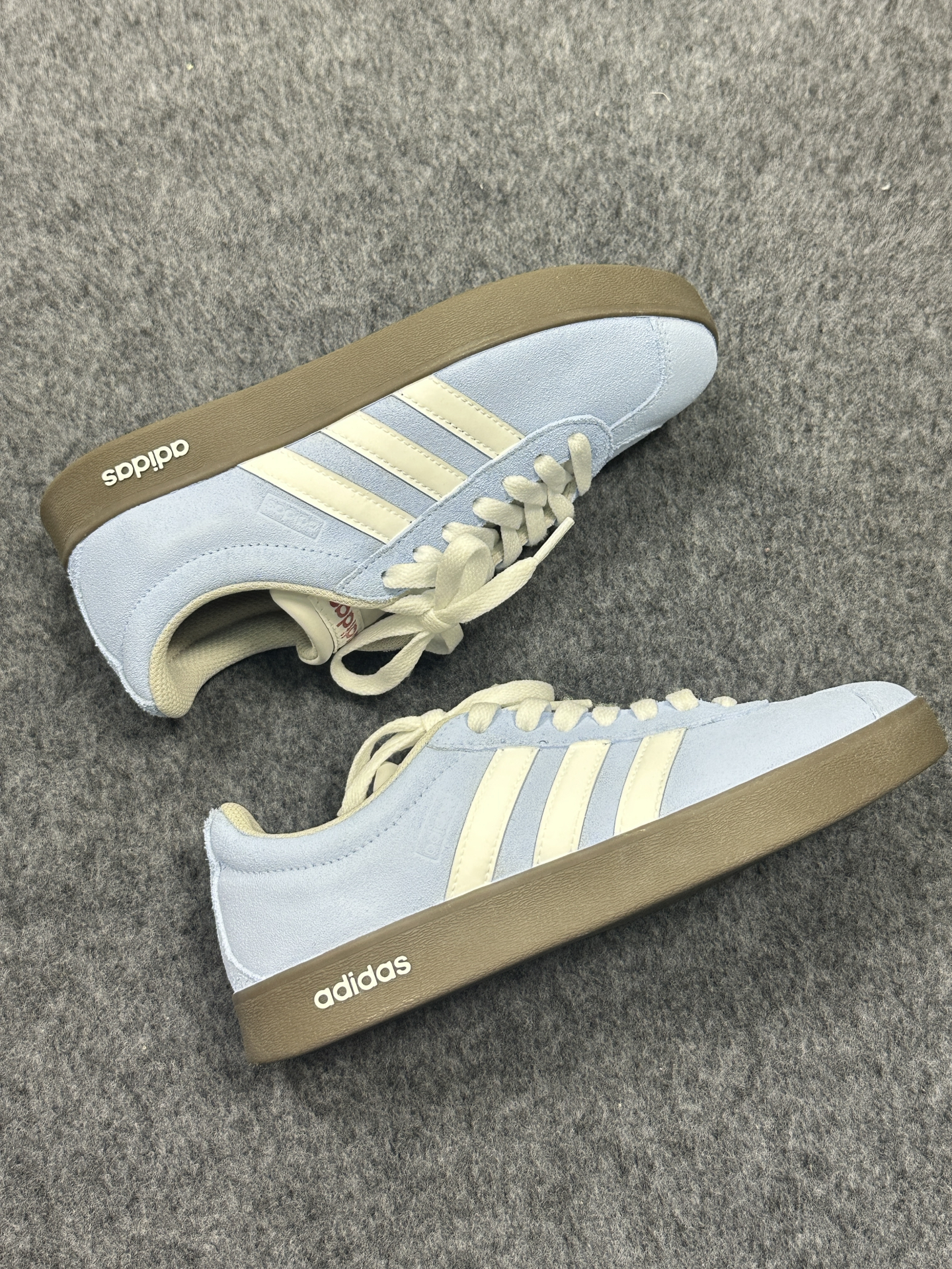 阿迪治愈系蓝色💗爱了爱了 配色是天空蓝➕奶白条纹 看着清淡但不寡淡 麂皮材质为这抹蓝增添了几分质感 上班通勤 逛街约会随便搭配衣服都很ok
