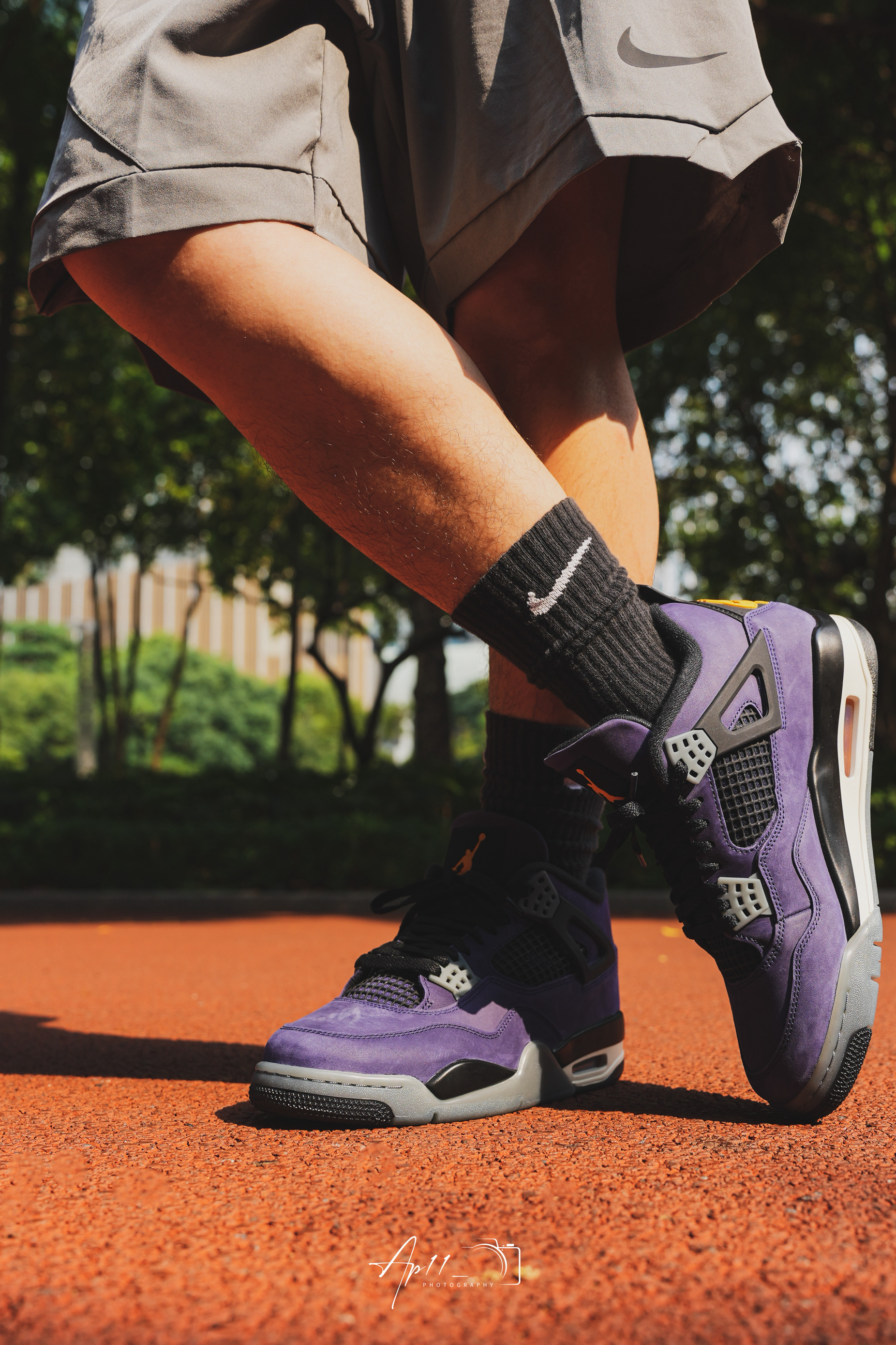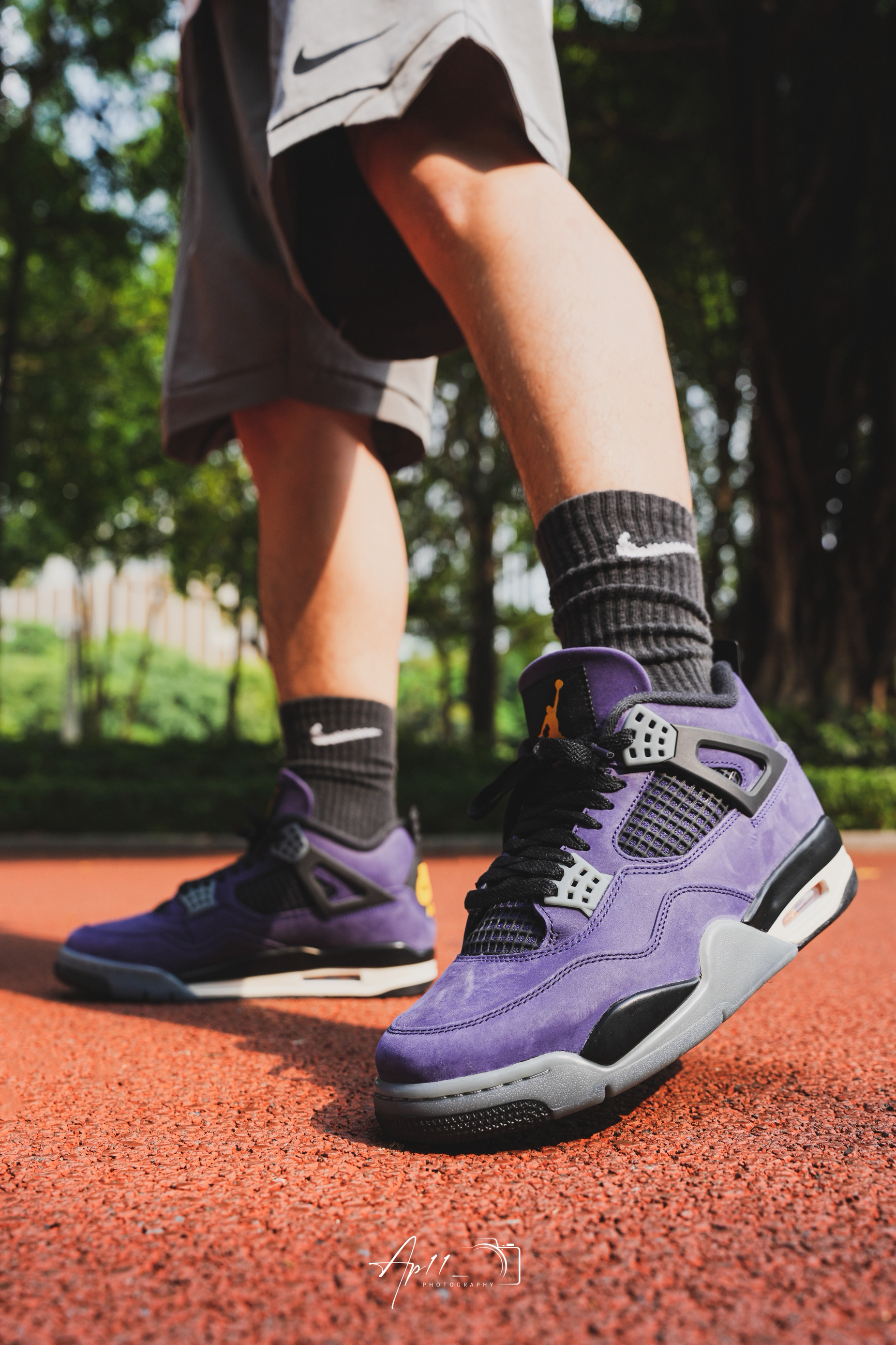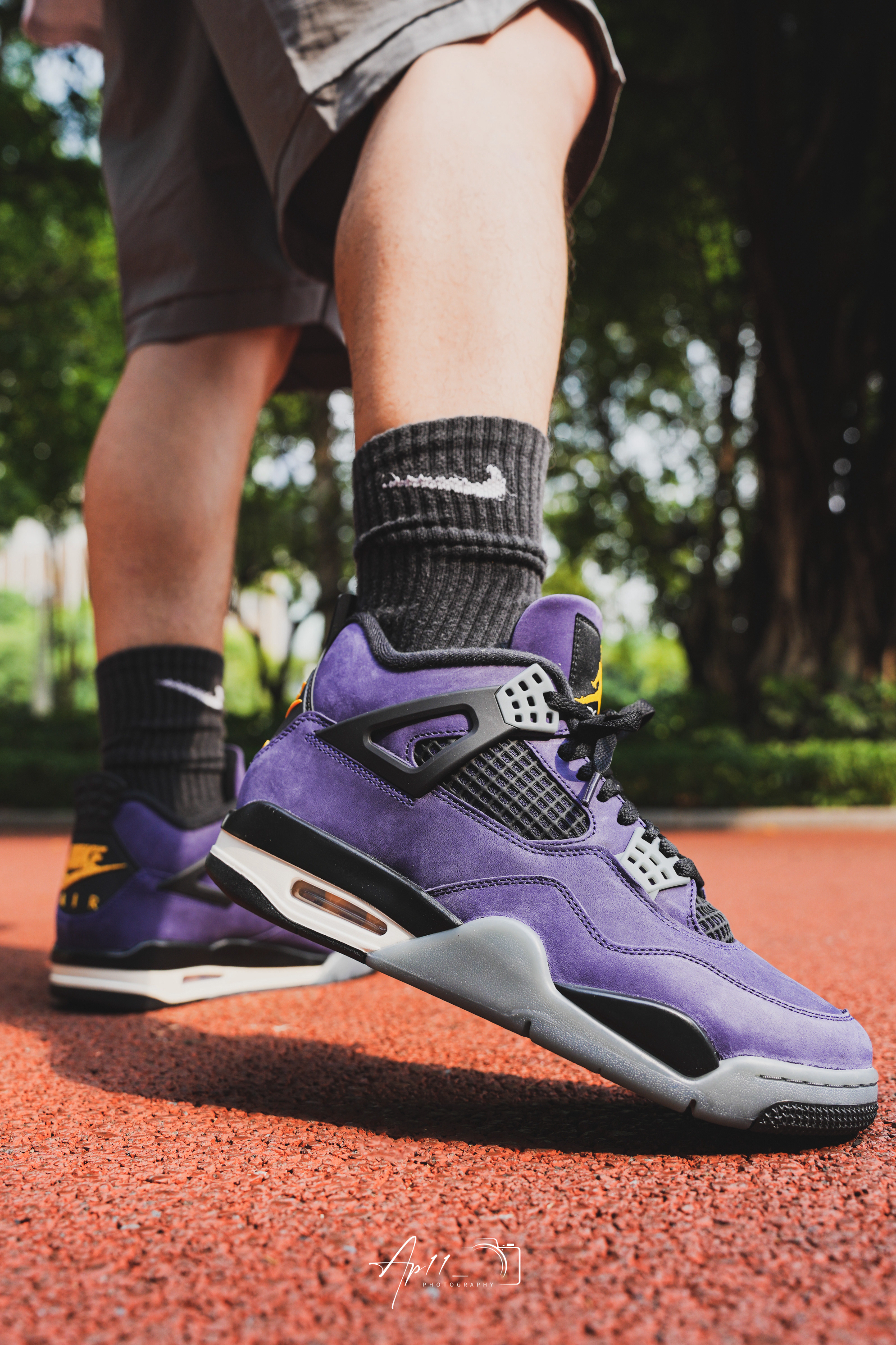 最近常穿这双AJ4,紫色看着很舒服,配短裤和黑袜很协调,鞋型挺括,走路脚感也比较稳,属于不用费心搭配、怎么穿都不会出错的款。