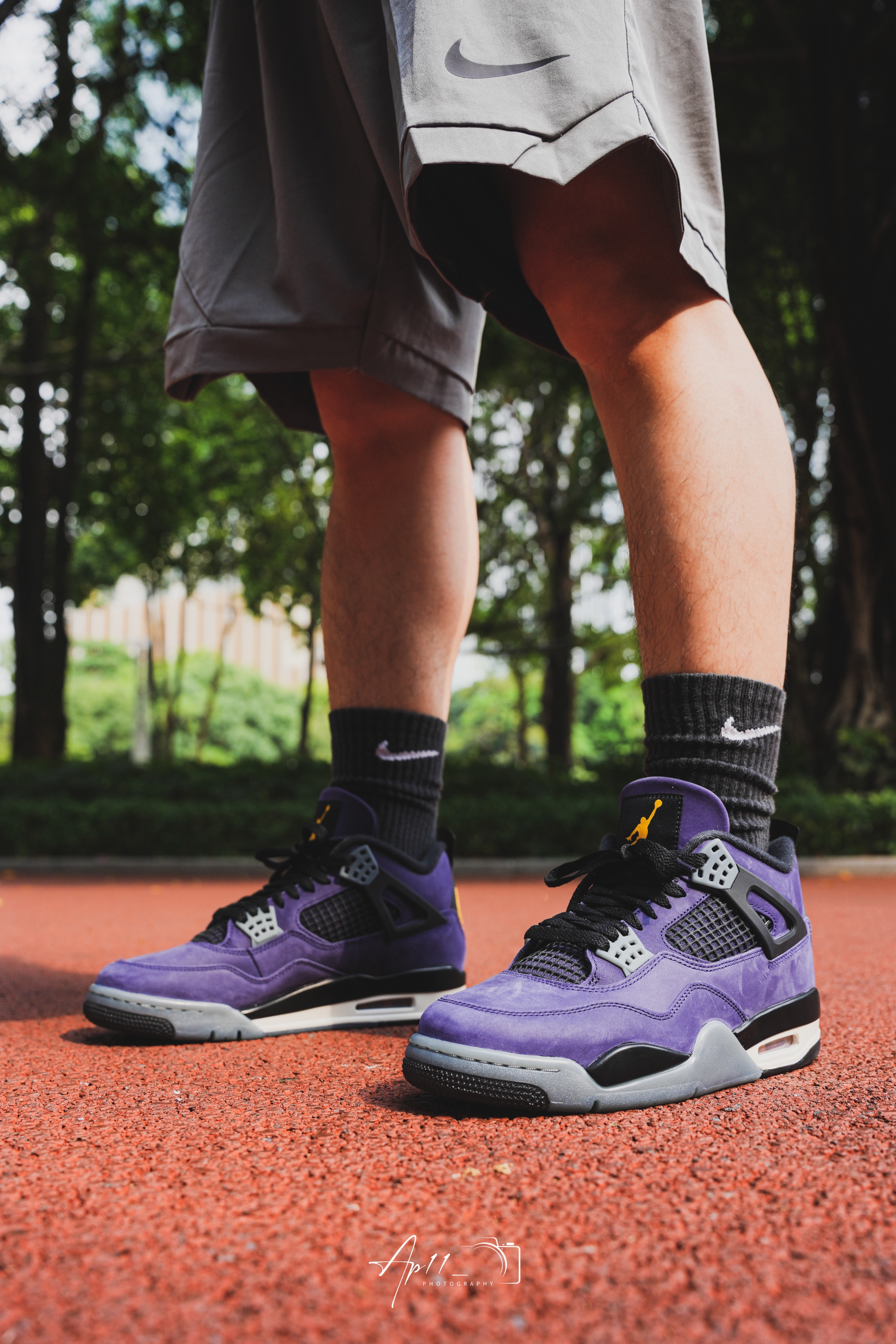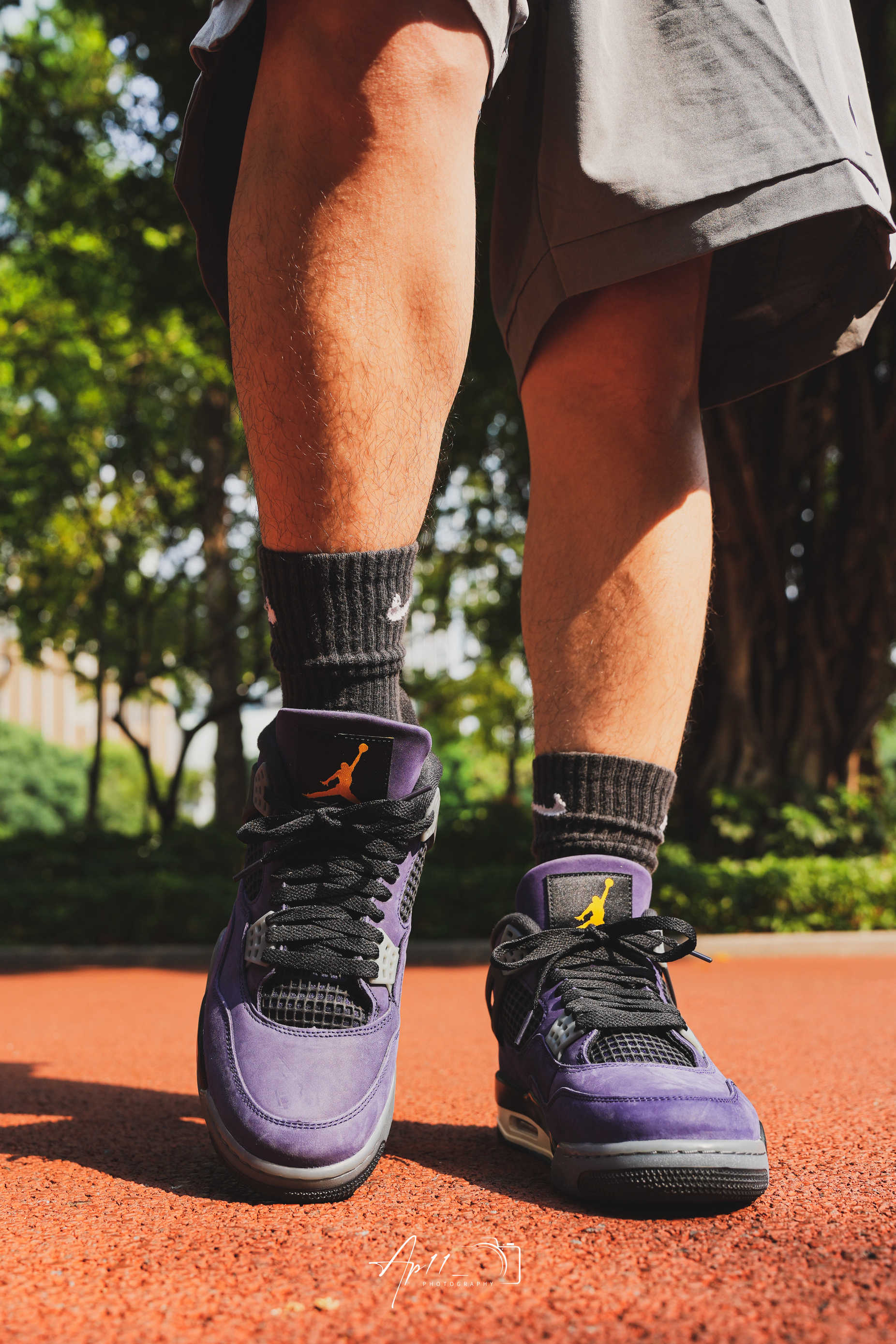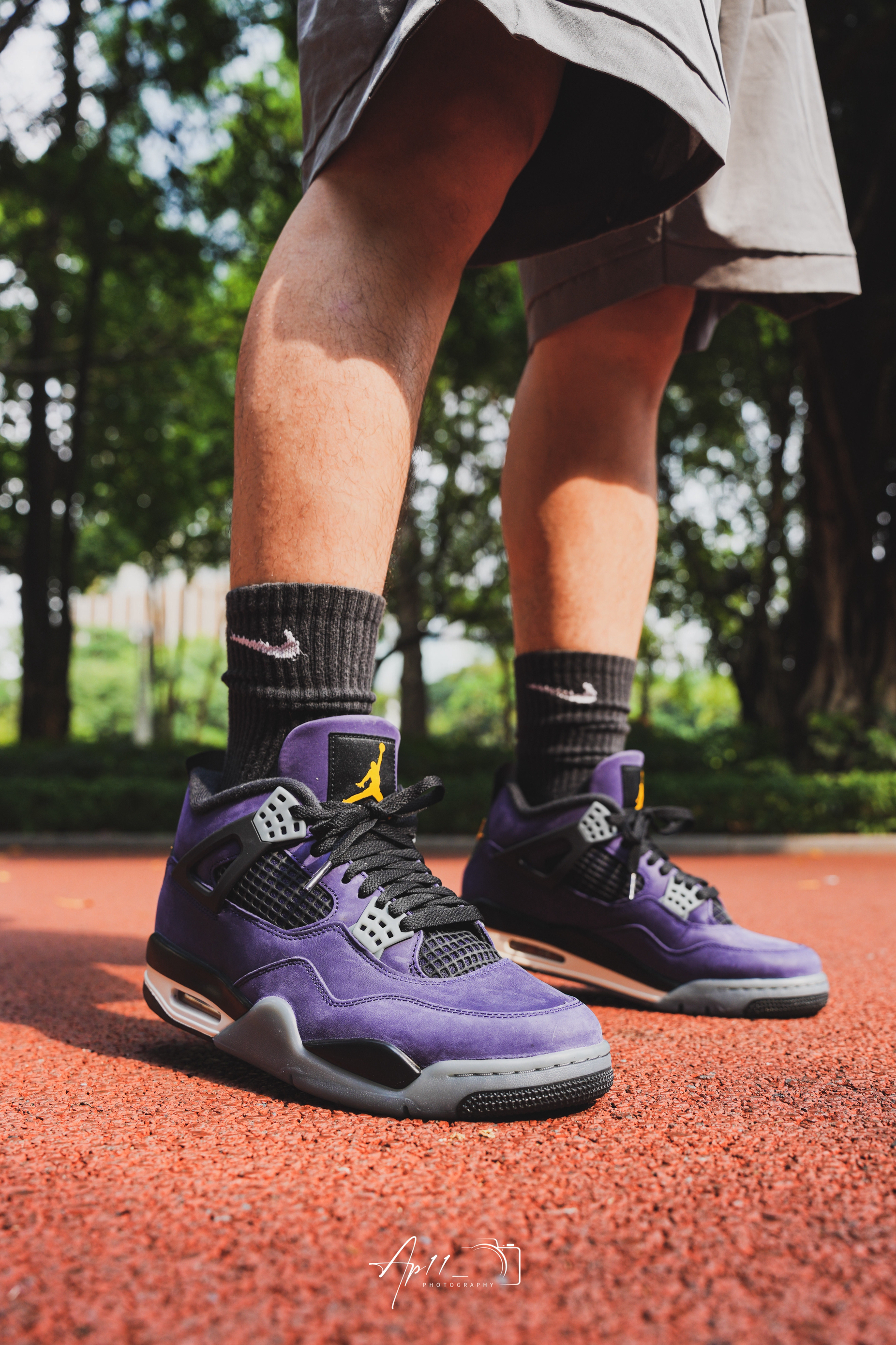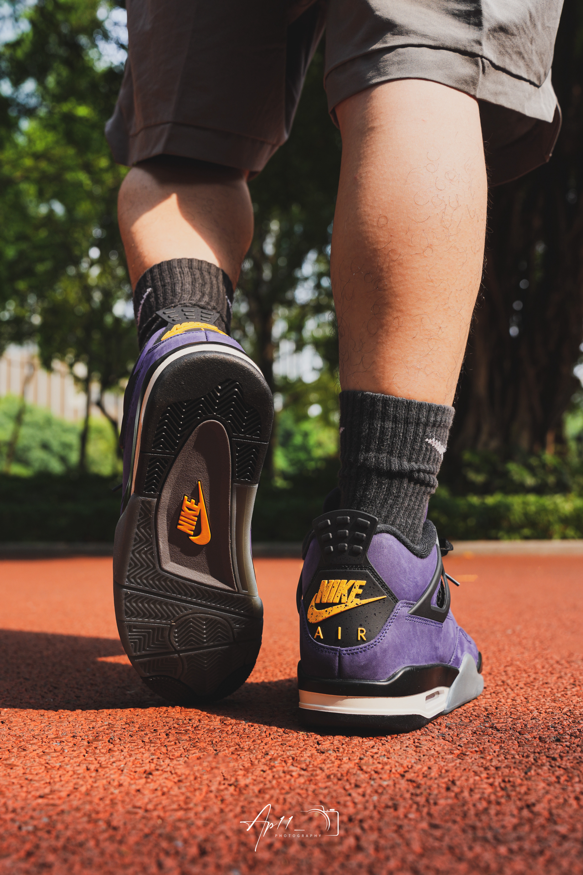 最近常穿这双AJ4,紫色看着很舒服,配短裤和黑袜很协调,鞋型挺括,走路脚感也比较稳,属于不用费心搭配、怎么穿都不会出错的款。