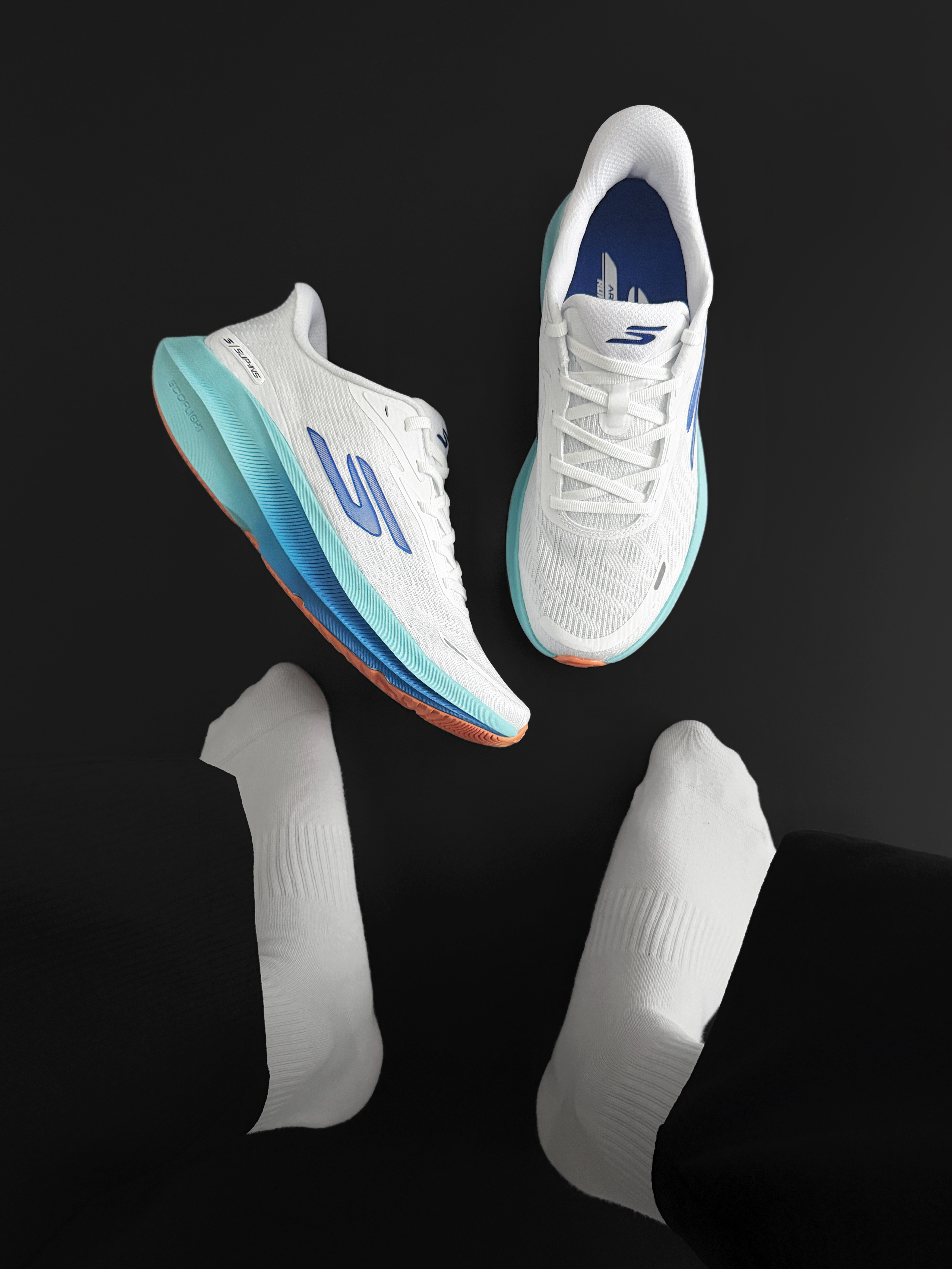 到手啦!这配色看着就清爽,蓝白搭配特夏天。鞋面是针织的,透气孔不少,跑起来脚都不闷汗。中底踩着弹弹的,跑的时候像有人推一把,轻松省力。鞋底抓地力也靠谱,转弯都稳当。才小几百,日常跑步、散步穿都合适,这个夏天就靠它陪我撒欢啦!