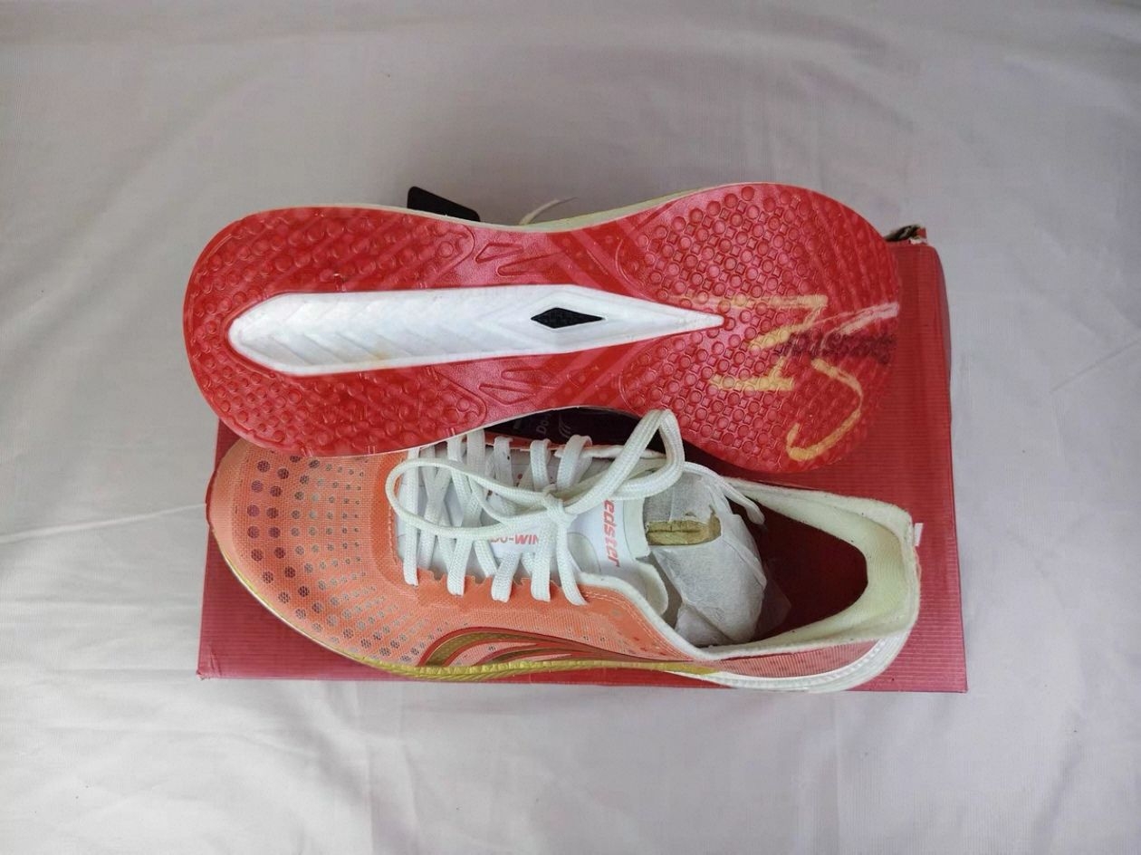 🍊多威SUPER F1跑鞋,橙色网布鞋面+金色条纹,轻盈透气超适合跑步运动!中底缓震科技,长时间运动也能稳稳支撑,减少疲劳感✨。鞋底耐磨橡胶,抓地力强,室内外都能轻松驾驭。整体设计贴合脚型,舒适又专业,跑步爱好者日常训练或比赛都很推荐哦!🔥