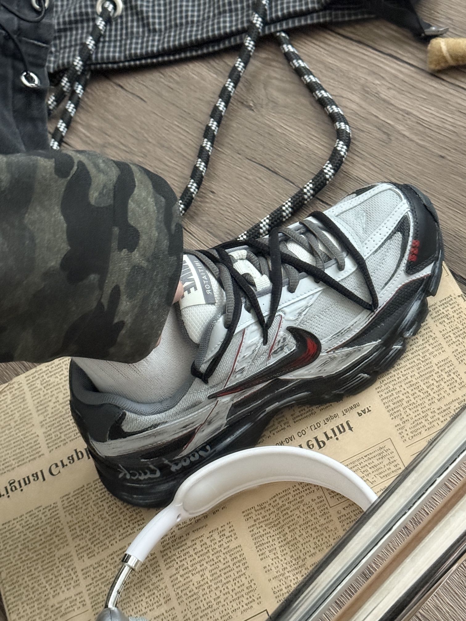 我这双鞋到手第一感觉就是做工很扎实,鞋面的材质摸起来挺有质感的。灰黑配色加上那个特别的绑带设计,真的超有个性,不管搭牛仔裤还是运动裤都很合适。穿了一次出门走路,我穿上脚感挺舒服的,鞋底有弹性,不累脚。而且这个配色特别耐脏,日常通勤或者出去逛街穿都很省心,算是近期买到的很满意的一双鞋了。