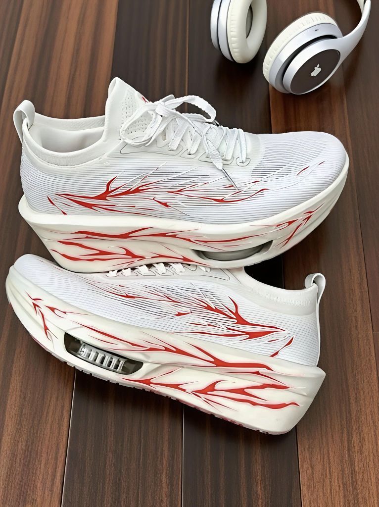这双潮流运动跑鞋太吸睛了!白红配色很有活力,针织鞋面透气又轻便,脚感贼舒服~ 上脚跑跳都很带劲,日常晨跑、街头出街穿都很飒,搭配运动装、休闲装都很绝,回头率拉满✨ 就是白色鞋面容易脏,得勤打理,但它的颜值和舒适度真的让我爱了,运动党可以冲!