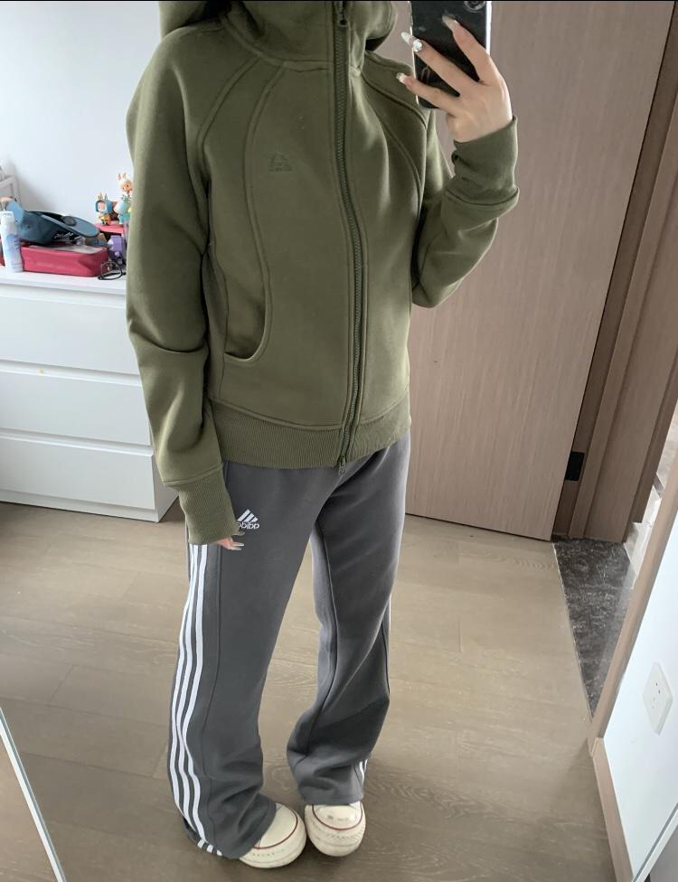 很修身松弛的一套通勤ootd! 绿色系修身连帽外套太好看了 很特别显气质的颜色