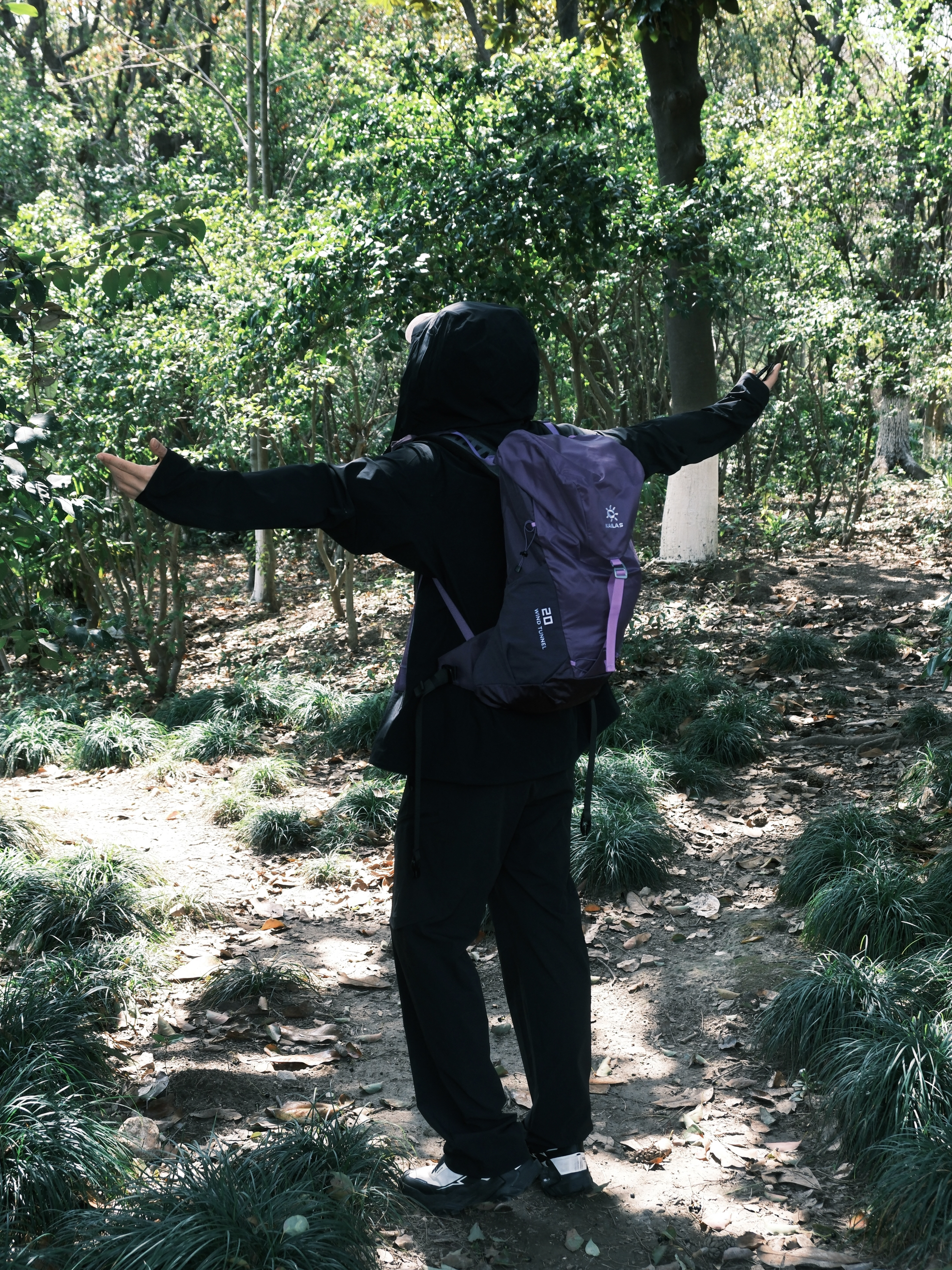 - 初春出门真的很需要一套能打的山系穿搭🍃凯乐石M3-X黑色软壳衣上身真的绝了,利落又干净,防风防晒还透气,户外运动日常通勤都能轻松拿捏~搭配同色系软壳裤,阔腿直筒的版型舒服又有型,防泼水这点在春天真的很实用! - 背上深紫色的风洞背包,20L容量刚好,轻便又能装,周末说走就走的徒步就靠它了✨ - 整体就是那种不刻意的帅气,清爽干净又带着点户外感,走在路上自己都觉得状态特别好~ - 春天就是要这样...