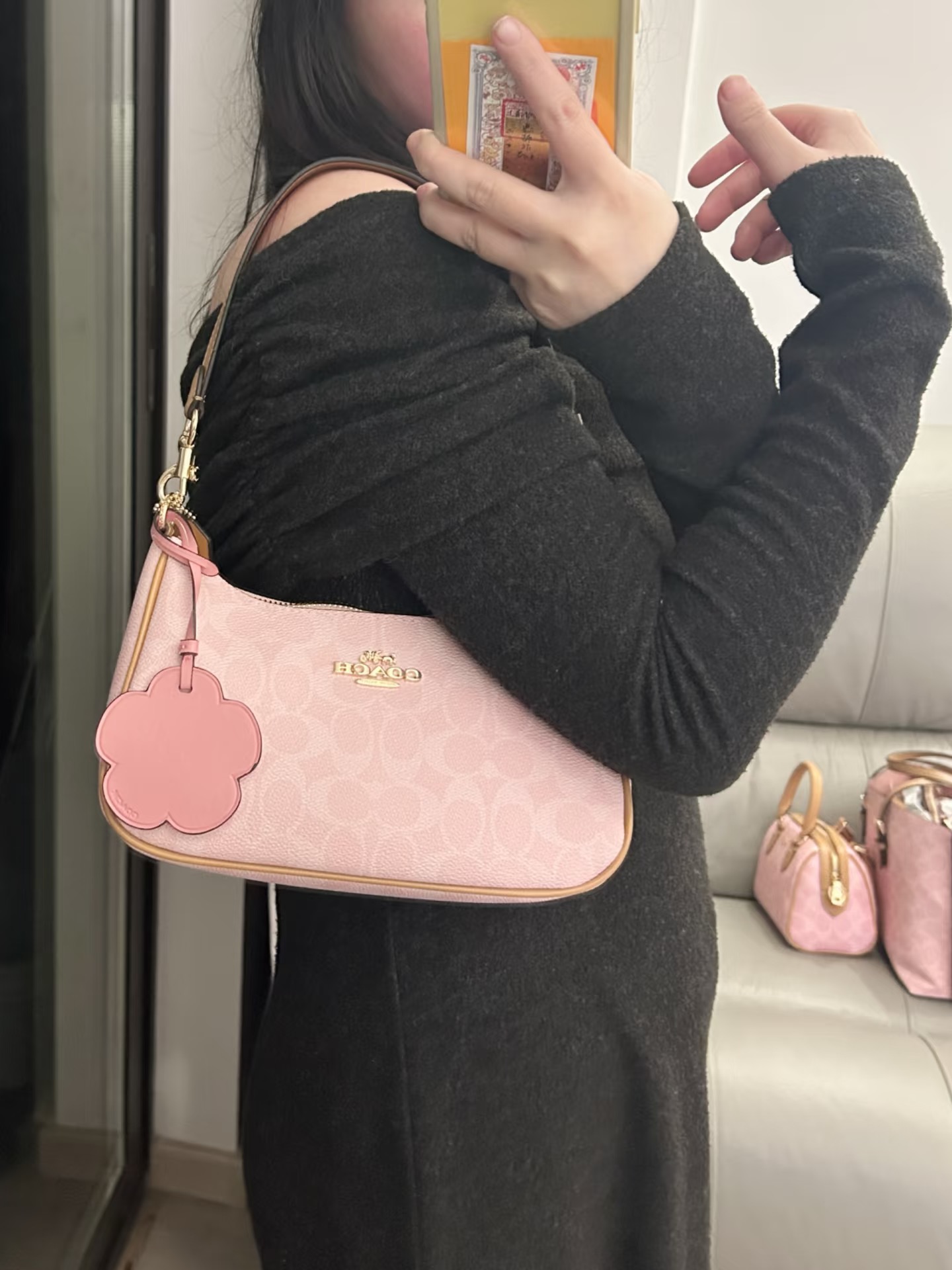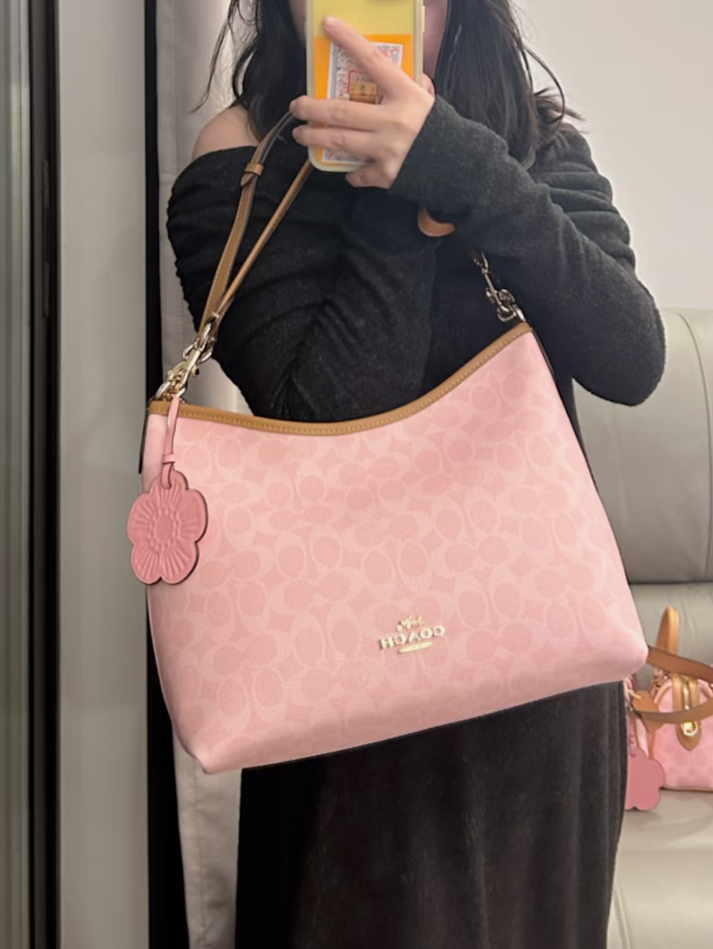 Coach你是懂做粉色的!😭 2月刚上的新色Laurel流浪包,这个樱花粉也太嫩了吧! 经典老花配温柔粉,自带高级感,完全不显老~ 容量对小个子女生超友好,日常出门的手机、粉饼、钥匙统统装得下! 无论是搭配日常休闲装,还是像我这样的小女人风格,都巨巨巨搭!