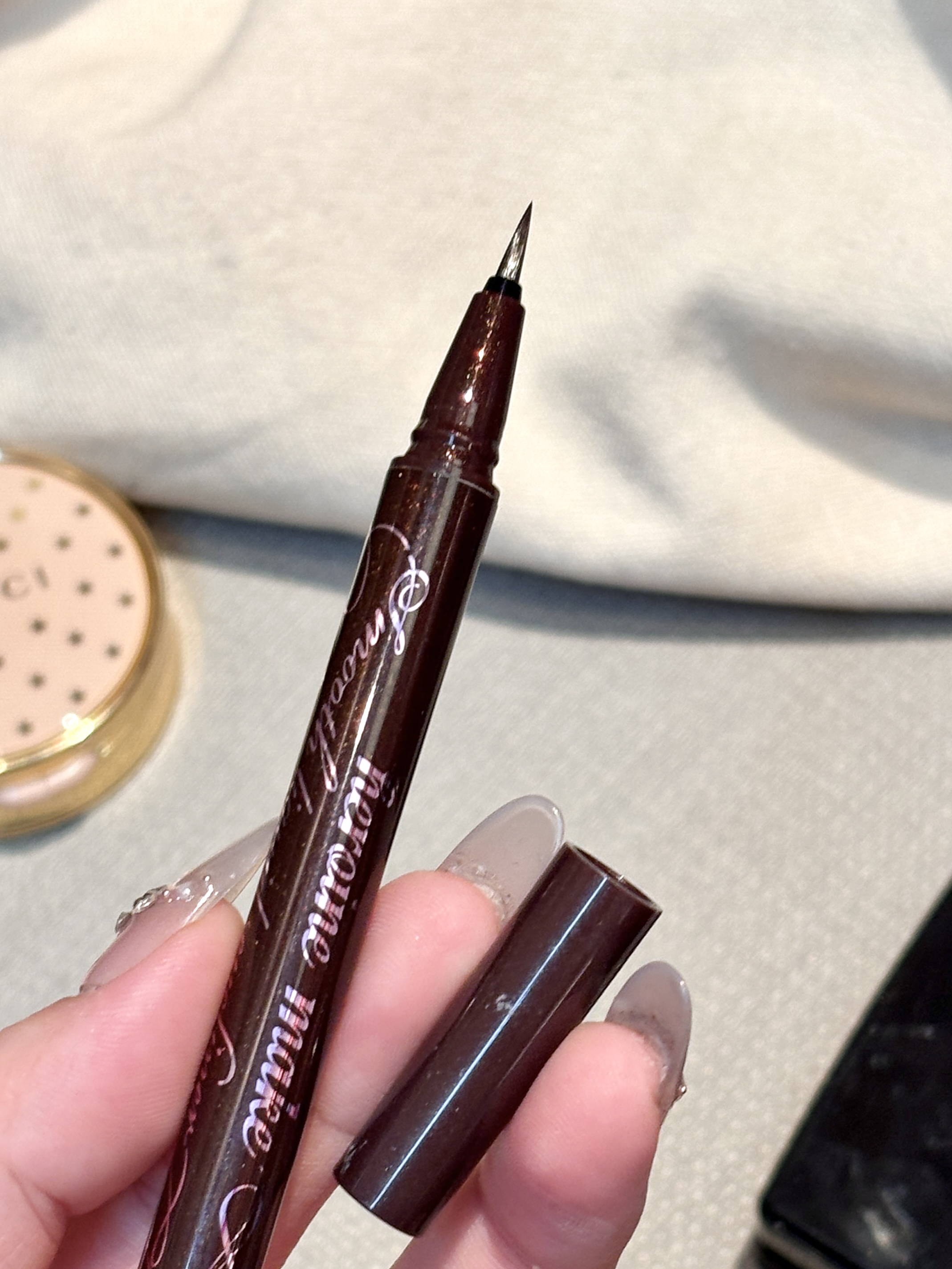Kissme这支眼线液笔真的是我的本命!笔尖超细超顺滑,新手也能轻松勾勒出流畅的眼尾,不会手抖结块。 防水防汗力拉满,夏天出油、戴口罩都不晕染,带妆一整天眼线依旧完整。深黑色显色自然,日常通勤、浓妆都适配,小小一支放包里补妆也方便,闭眼入不踩雷!
