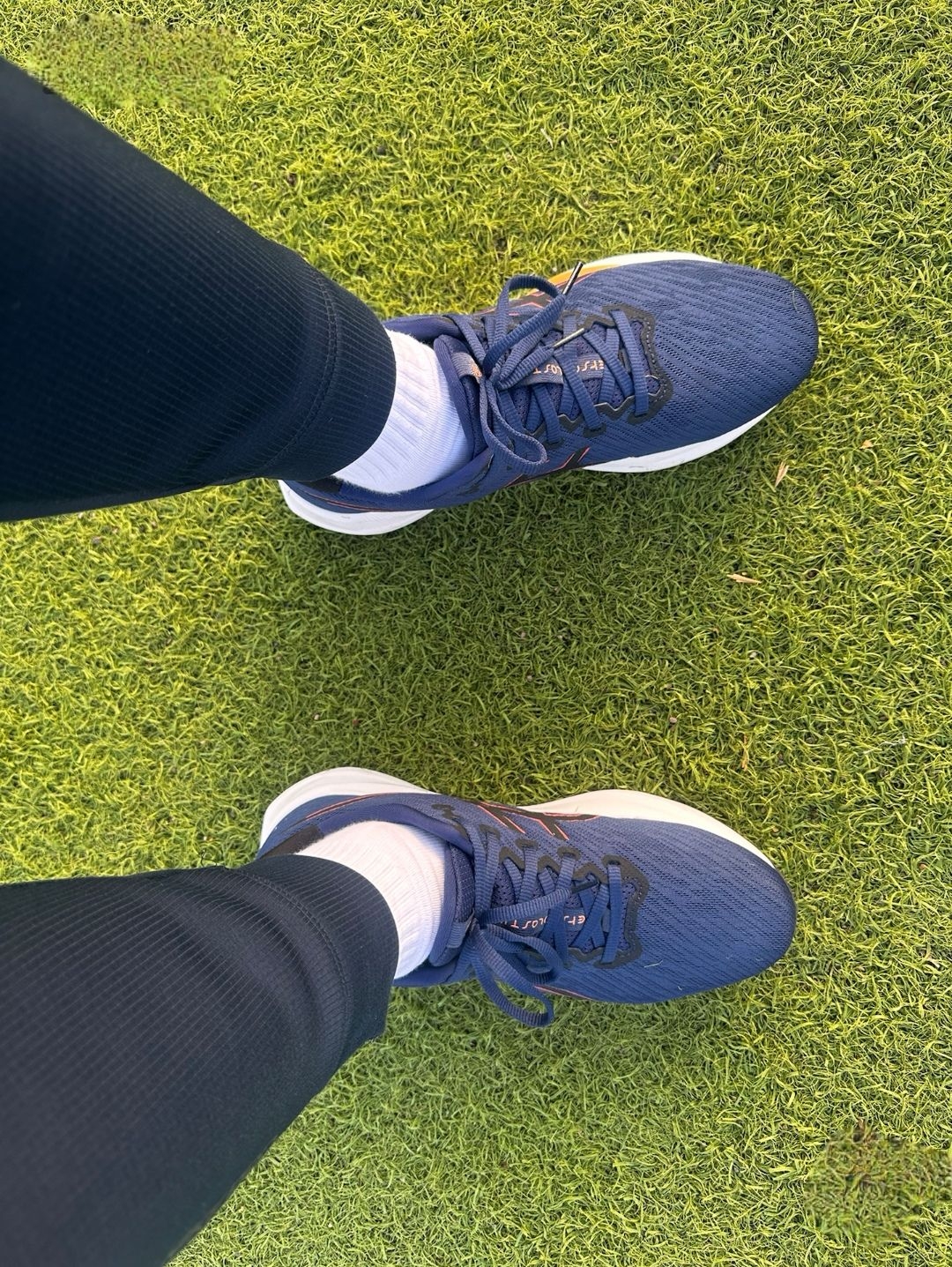 谁懂啊!本来是冲着颜值随手入的跑鞋,结果穿了一周直接焊在脚上——藏青+橙棕的撞色,配束脚裤/运动裤都巨显腿直,鞋型是那种“看着低调但细节全是小心机”的款,鞋舌的字母标自带潮感,日常出街完全不违和。 重点是脚感!中底软弹但不卸力,早上挤地铁站1小时脚不酸,下午去球场随便跑两步也能踩出回弹感,外底的纹路抓地力很稳(草坪/柏油路都试过不打滑)。关键是价格才三百出头,这个质感放专柜起码翻倍!