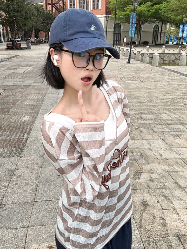 今日份鬼马少女上线啦😝😝眼镜一戴,谁都不爱😅😅哈哈条纹辣妹的街头日记,主打一个随性自在