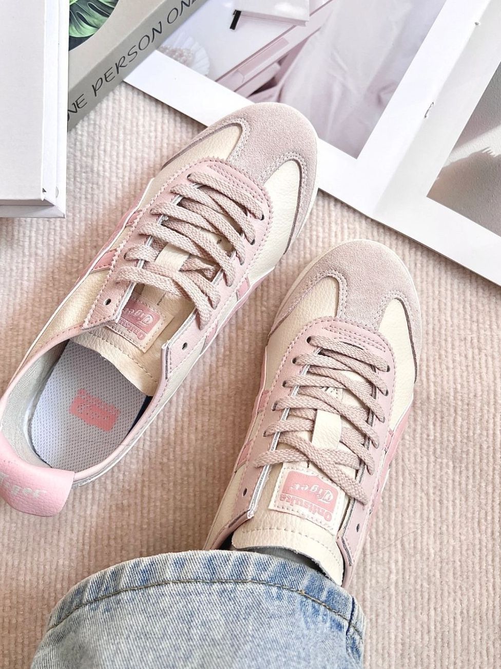 谁懂啊!这双奶白粉鬼冢虎直接美到心巴💘 米白拼柔粉超温柔,复古德训鞋版型巨显脚小,上脚轻盈又百搭,春夏配小裙子直接甜晕!