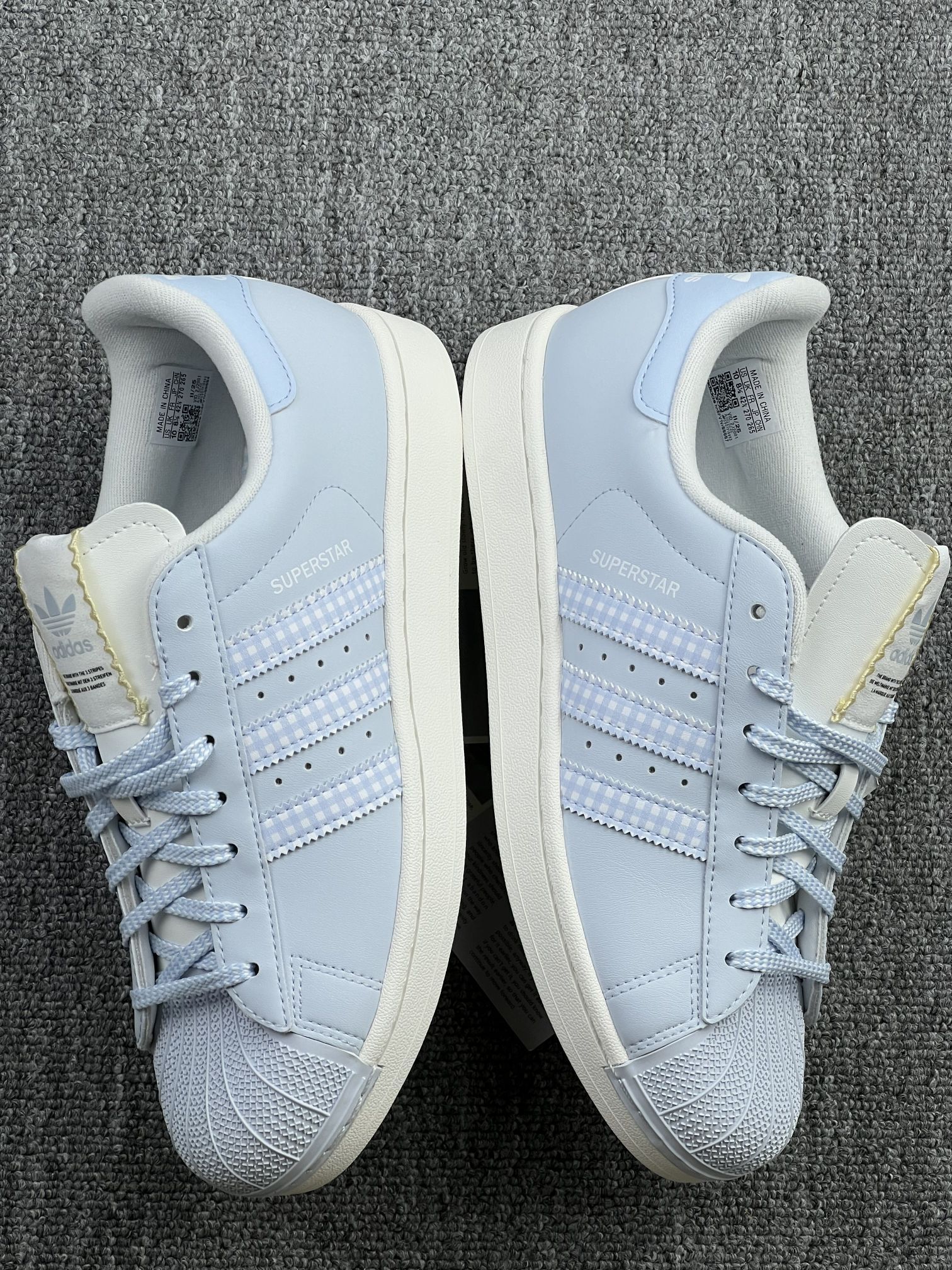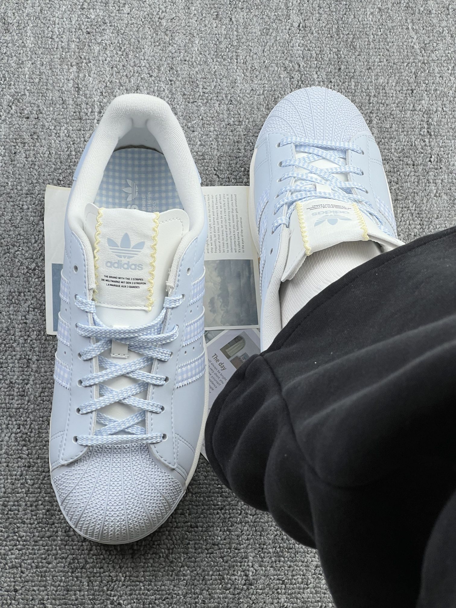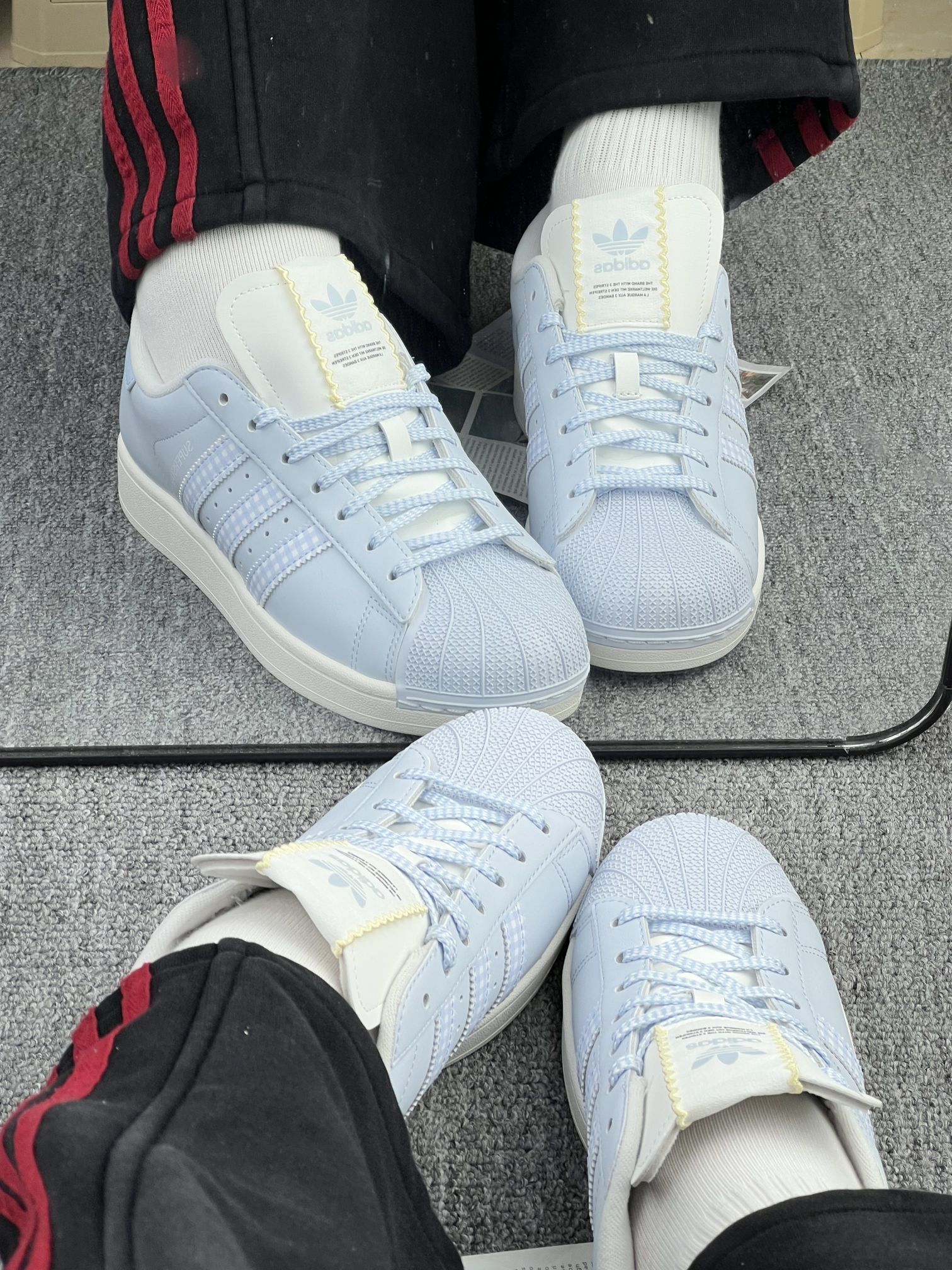 这双浅蓝贝壳头的实物真的很戳人,颜色是那种很温柔的淡冰蓝,搭配格纹细节,春夏穿很显清爽,和浅色牛仔裤、百褶裙都很搭,不用刻意费心搭配,日常出门直接穿就很合衬👟。 皮面手感是细腻的软质材质,鞋身整体重量适中,不会有明显压脚感,经典的贝壳头橡胶鞋头支撑性也够,走路时前掌不会晃。日常通勤、逛两三个小时街,脚感是踏实稳定的类型,没有运动鞋那种软弹,但完全够日常用,鞋垫的厚度也刚好,不会硌脚✨。 不过它...