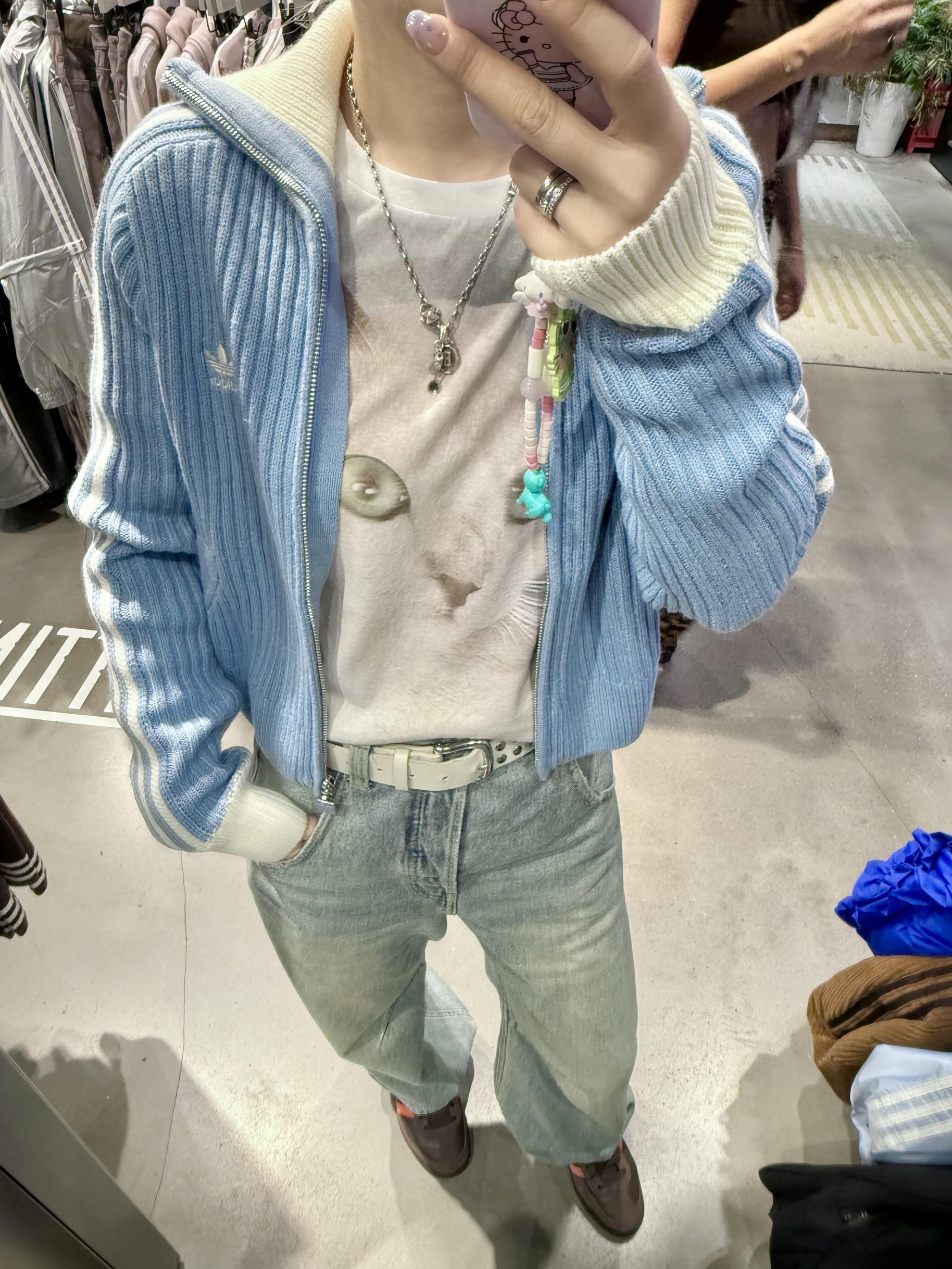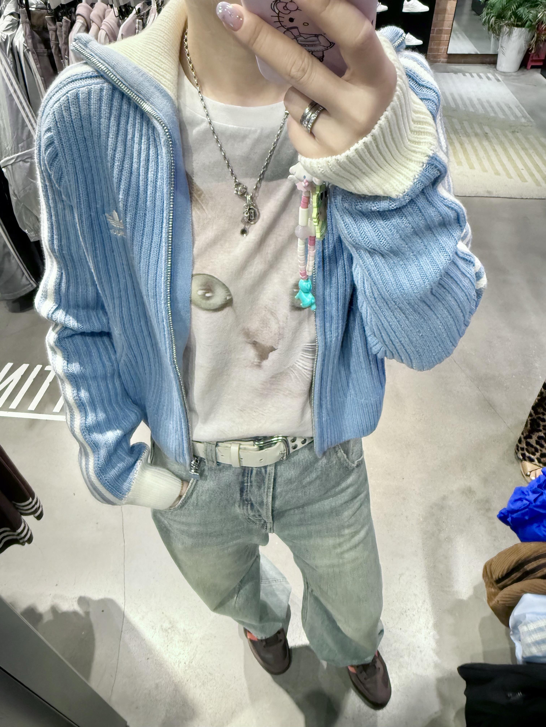 这么韩系的毛衣外套!阿迪悄悄上新啦!🩵 谁能拒绝秋日的“甜系潮搭”? adidas这款奶蓝针织开衫太会了! 软糯质感裹着温柔,蓝白条纹又带点酷劲儿。 搭配任何内搭都可爱感直接翻倍! 不管是搭配小白还是时尚达人, 穿这套都能轻松拿捏秋日风格, 是衣柜里少不了的“秋日宝藏穿搭”~