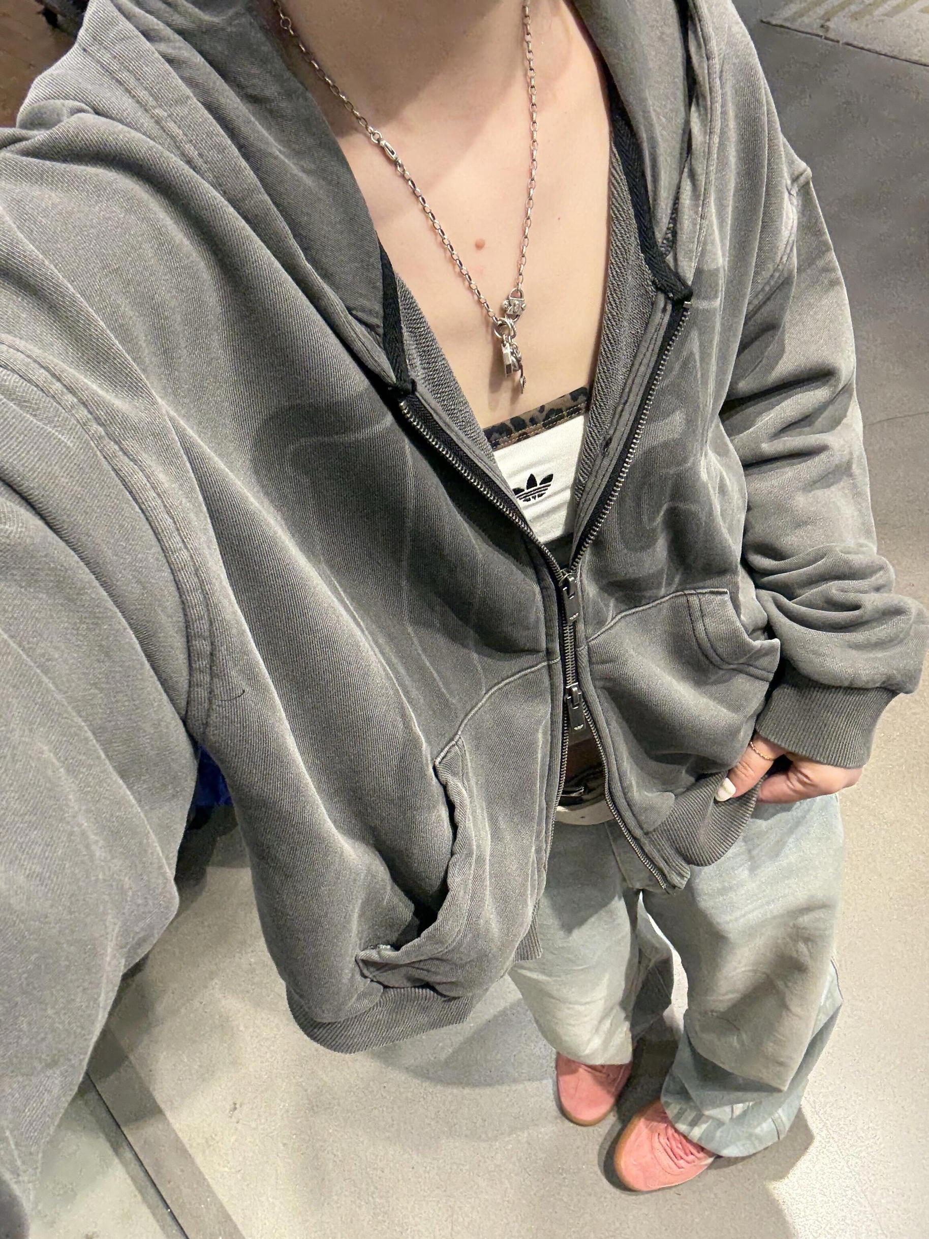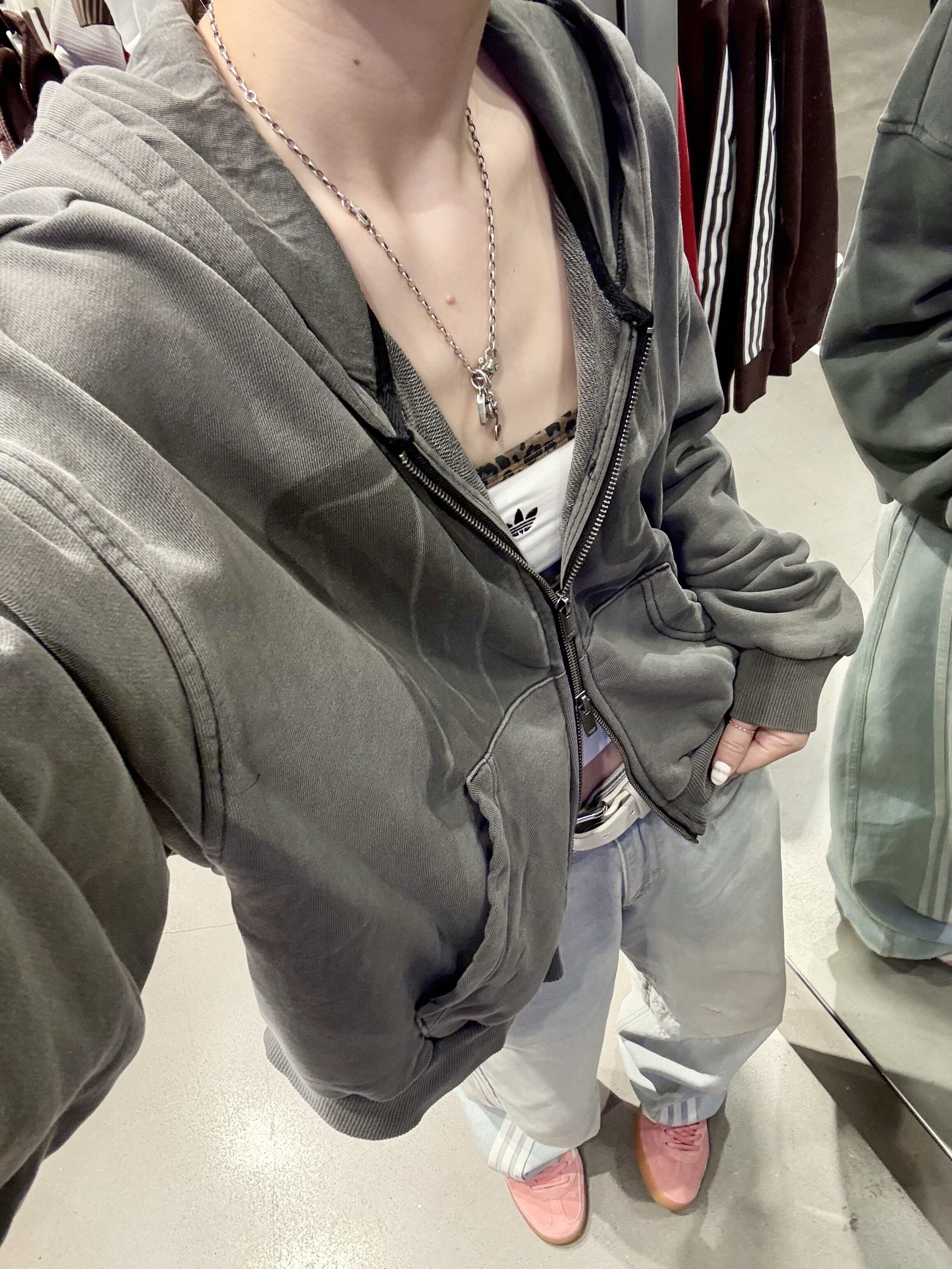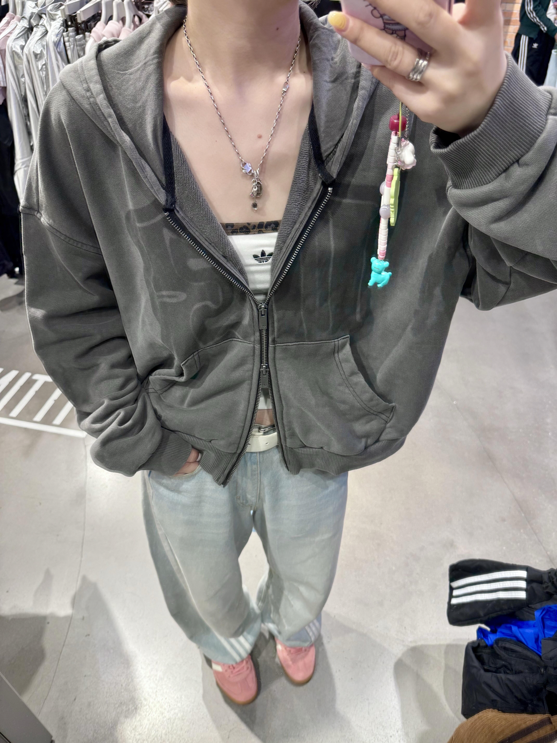 阿迪上新的这件连帽衫自带复古滤镜!🩶 谁还没get这件“灰常潮”的连帽外套啊! 做旧灰调自带复古滤镜,上下两开拉链~ 松弛感和潮酷感直接双buff叠满~ 内搭小背心+搭阔腿裤+德训鞋 甜酷碰撞绝绝子! 就连挂饰都在疯狂输出可爱感 主打一个“我随便穿穿,但就是很会穿”的傲娇范儿
