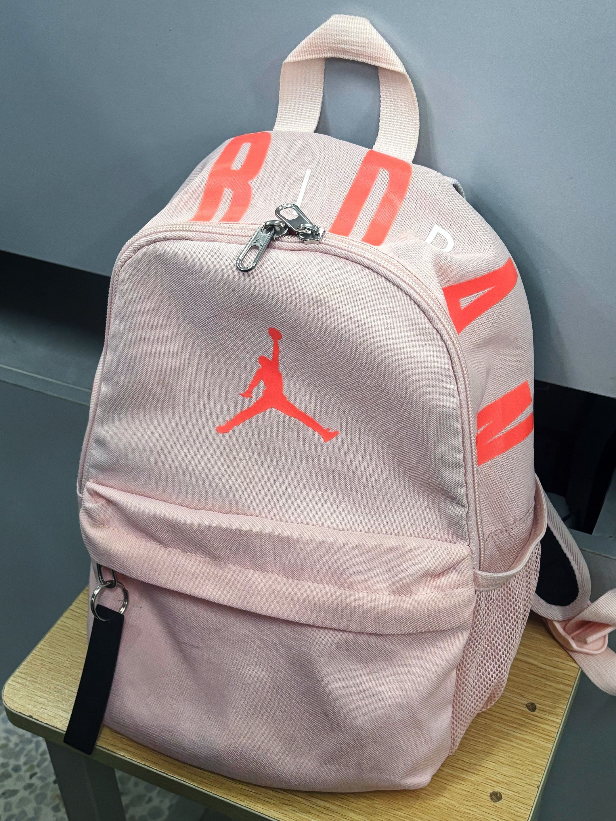 软乎乎的樱花粉+标志性飞人Logo,颜值直接封神! 日常背超轻便,装得下手机、钱包和化妆品,上课/约会/逛街都适配,甜妹必备单品💯 百搭又耐看,谁背谁是元气少女!