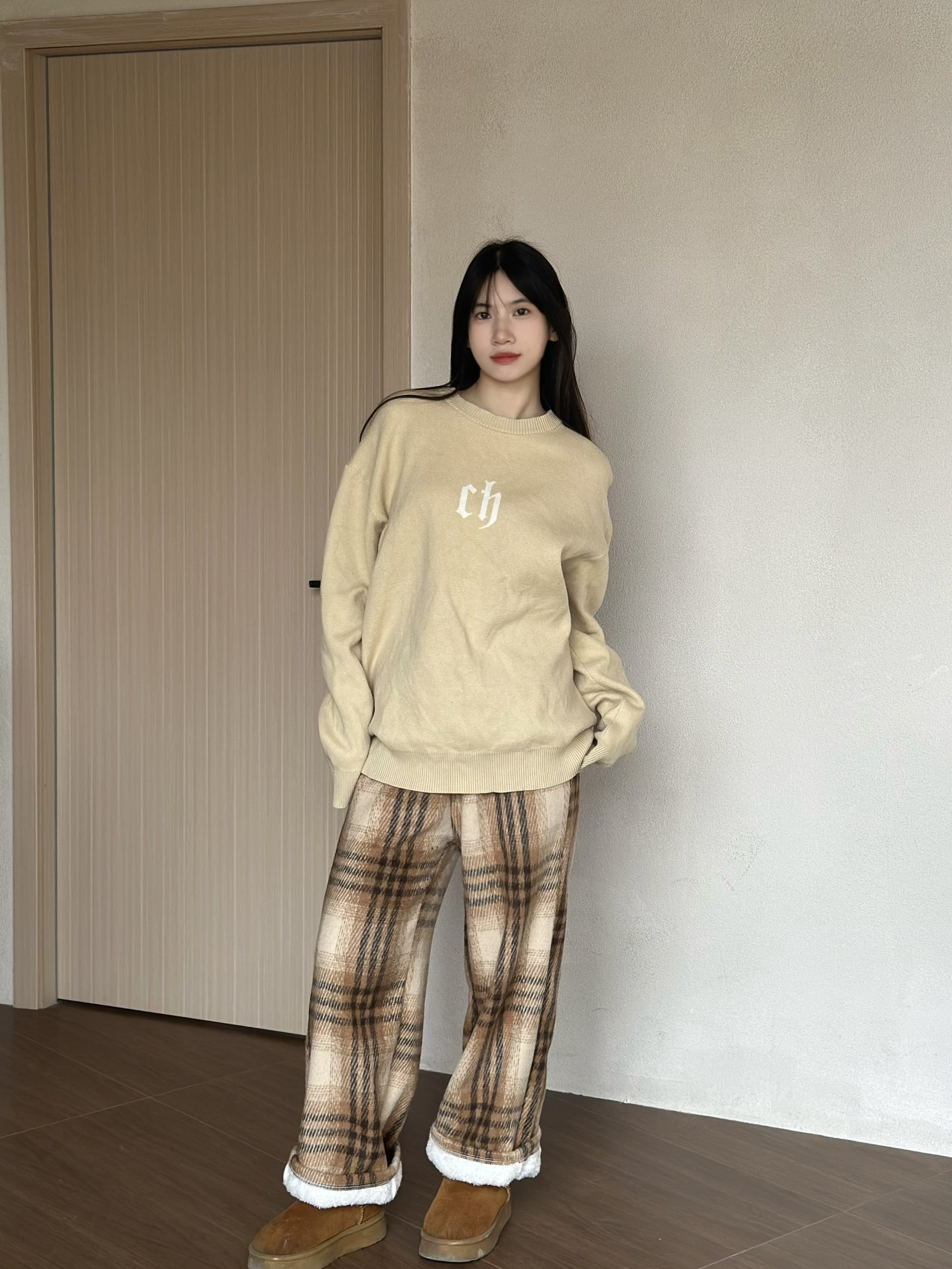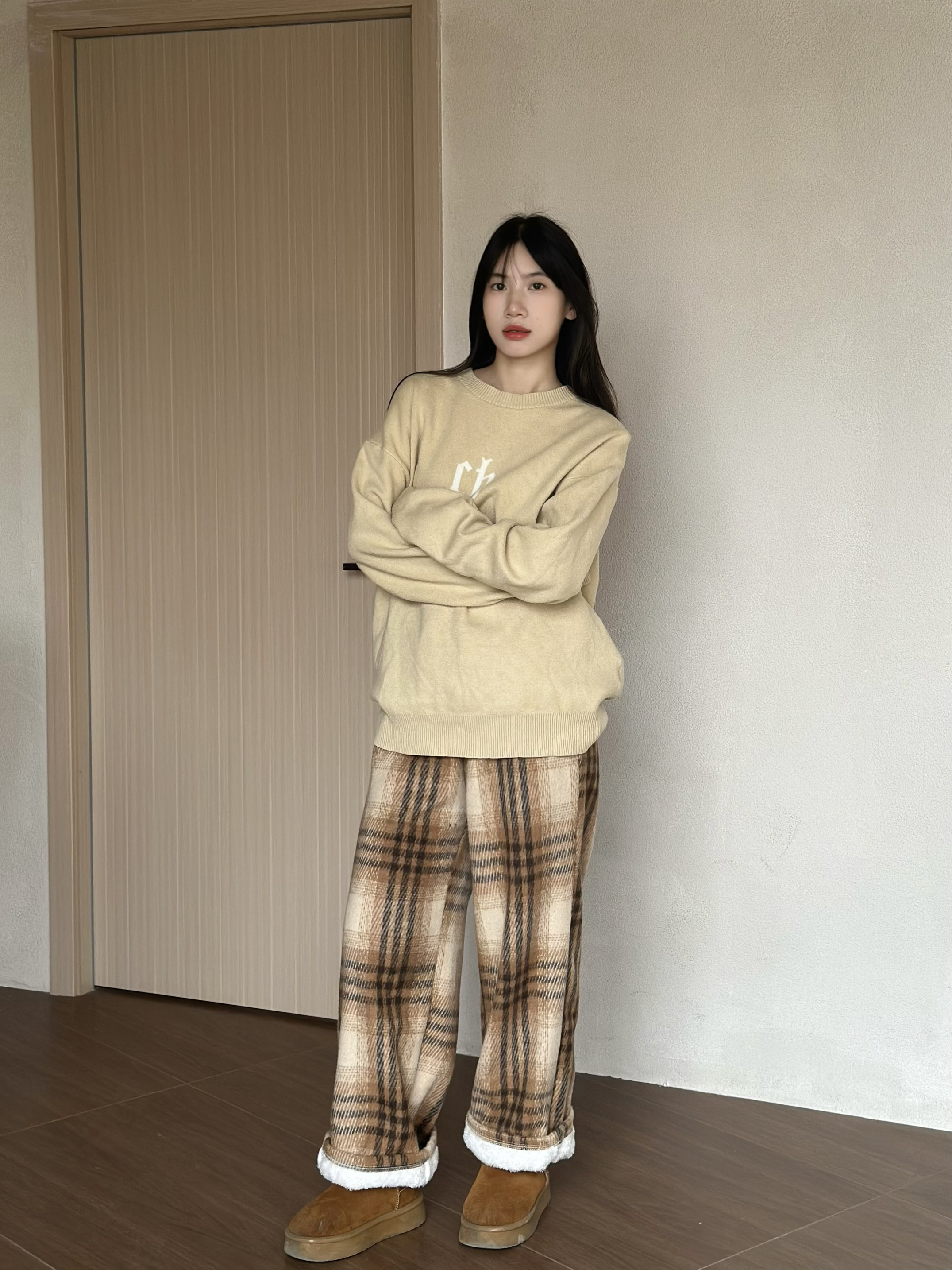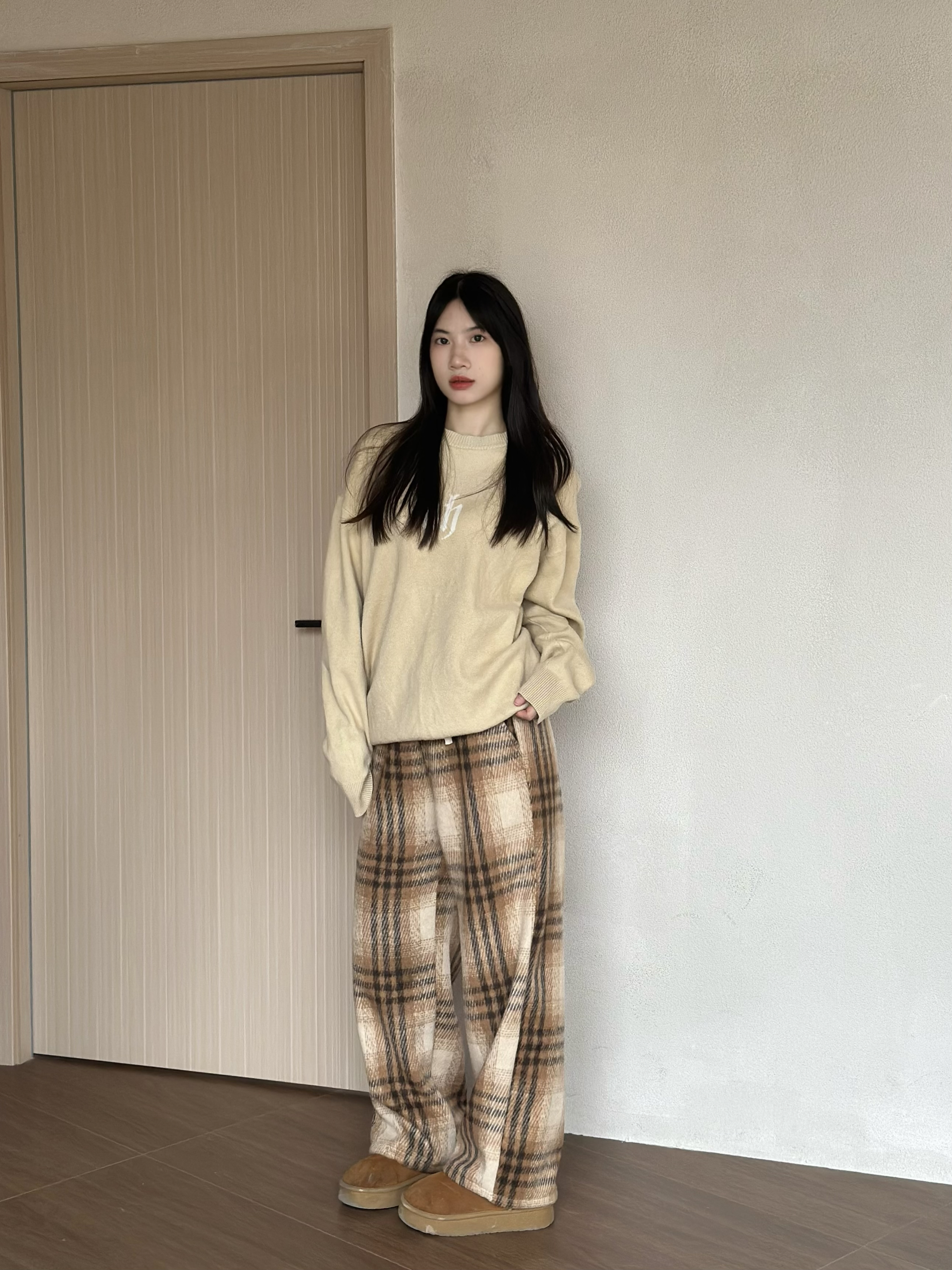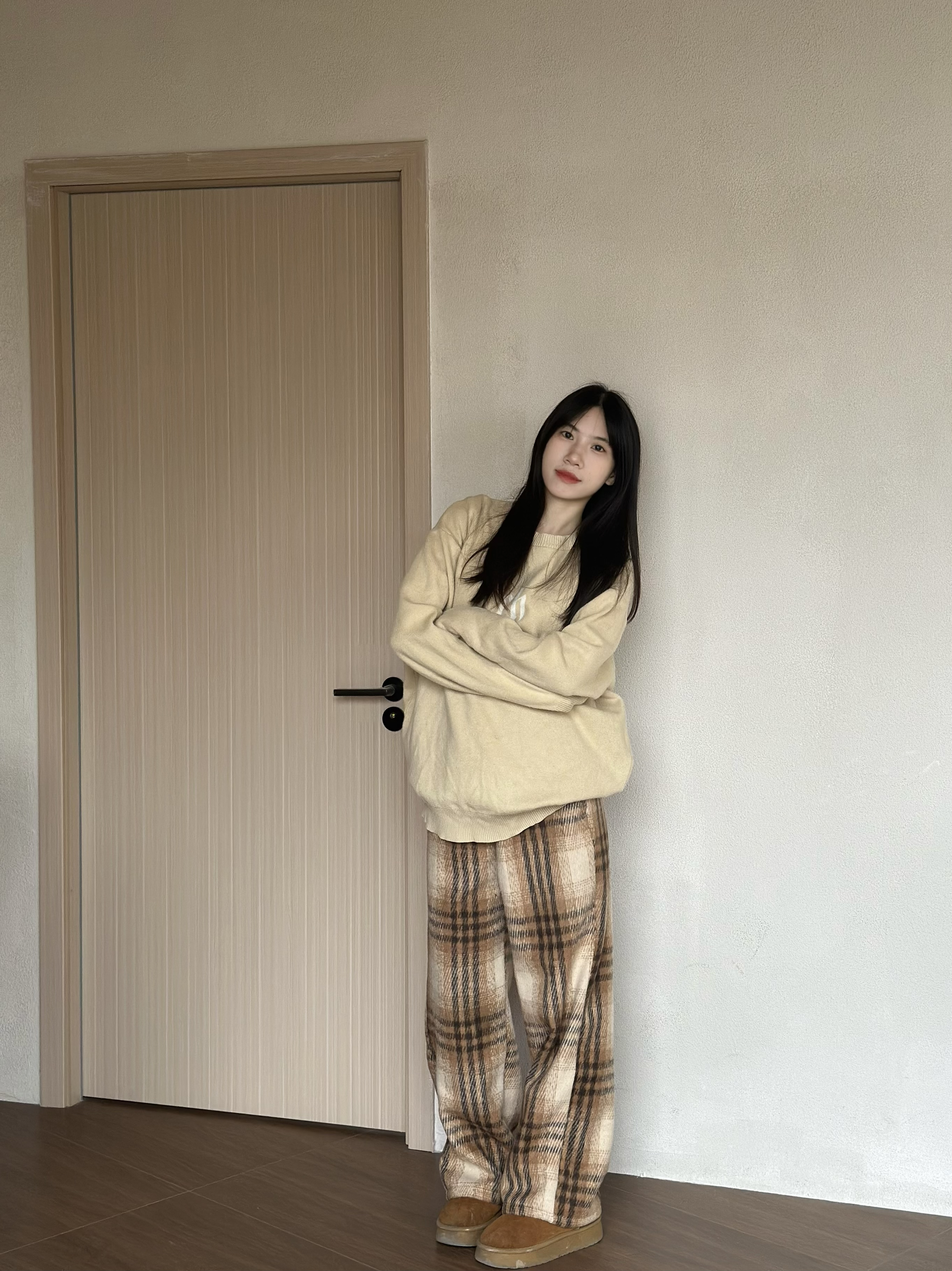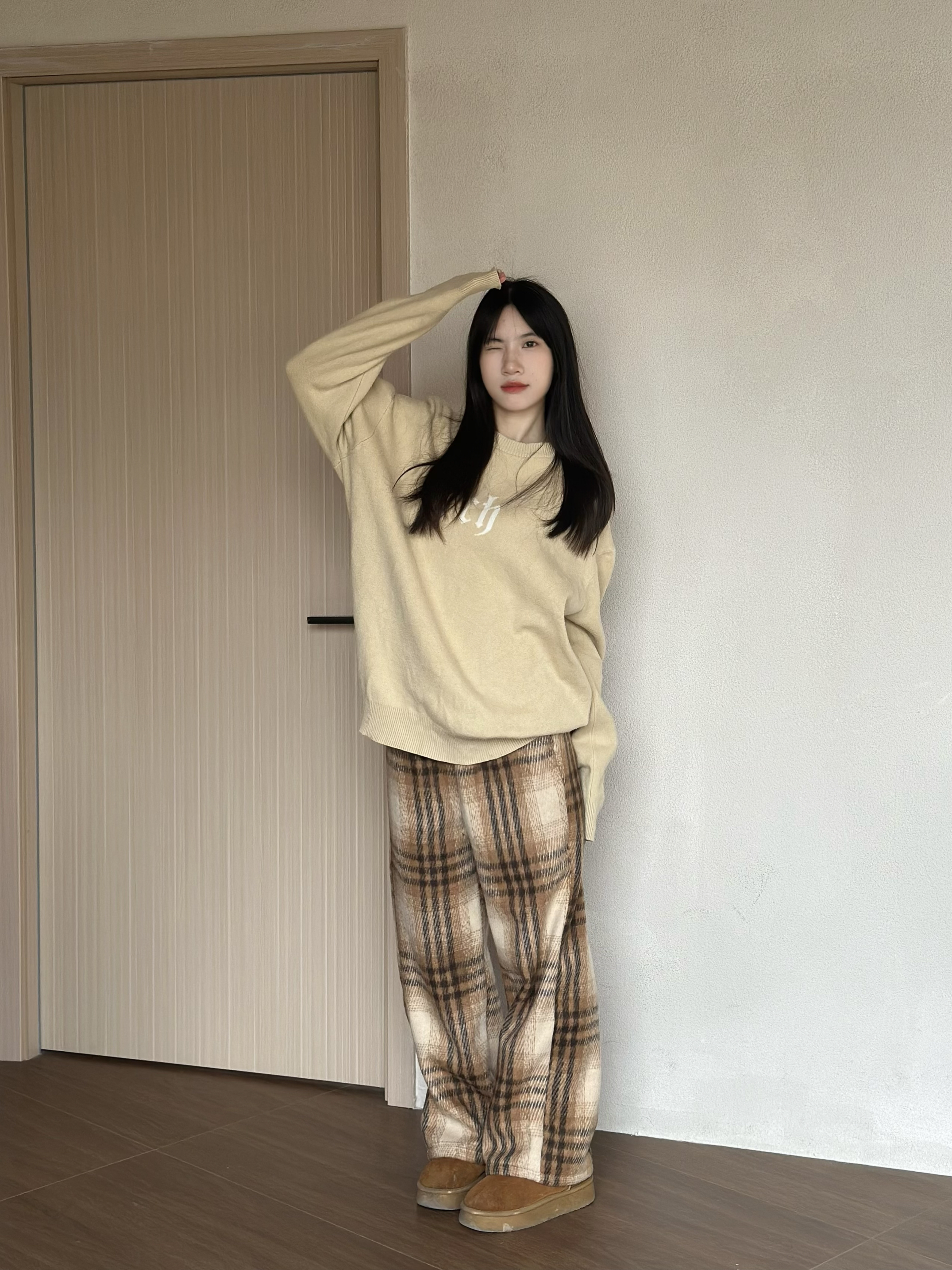 降温天的舒适穿搭来啦✨ 宽松毛衣+加绒格子阔腿裤 垂感巨好,不挑腿型 藏肉显瘦一把好手 加绒内里暖乎乎的 北方过冬也完全hold住 日常出街、宅家都能穿 懒人直接抄作业 谁穿谁是氛围感美女