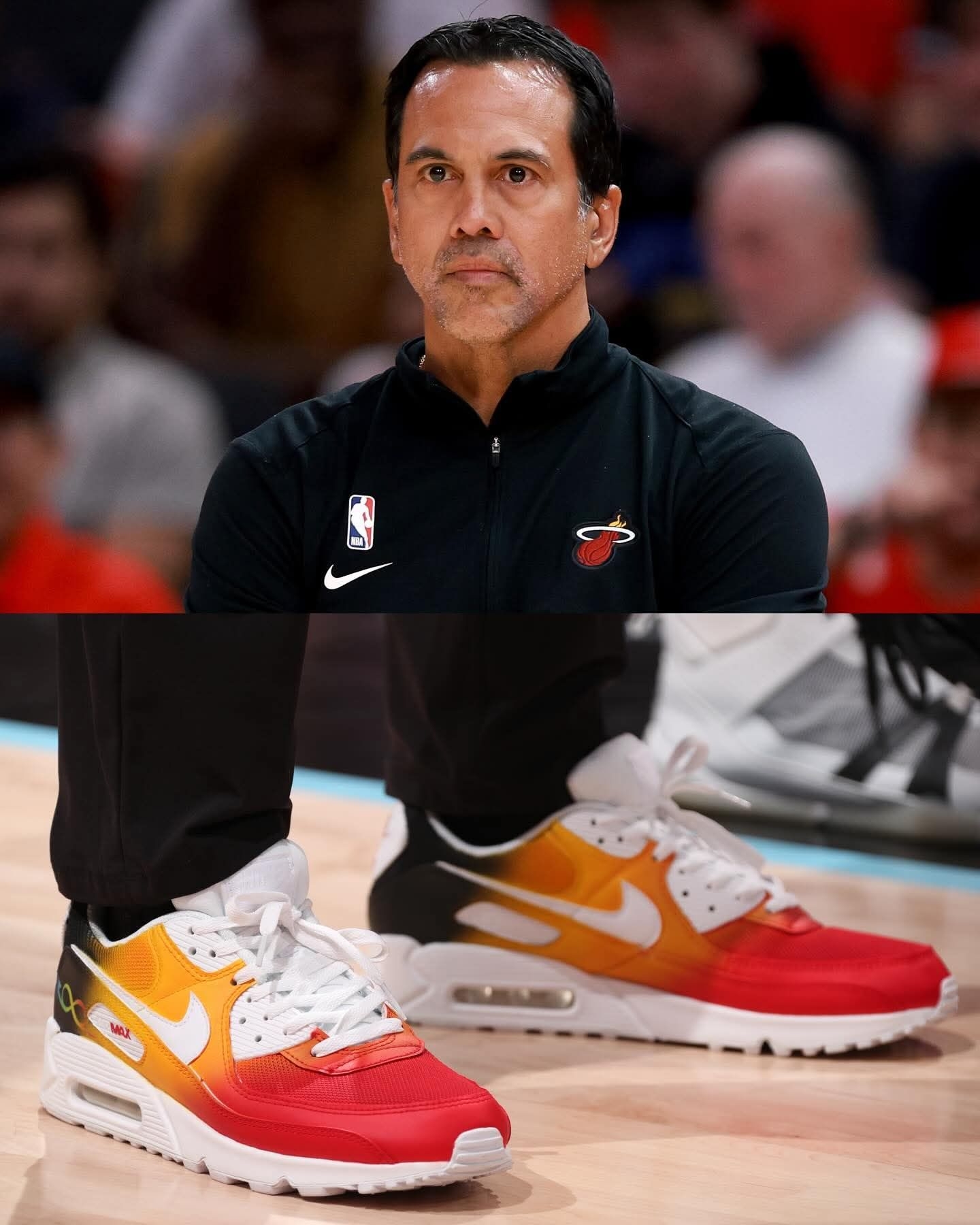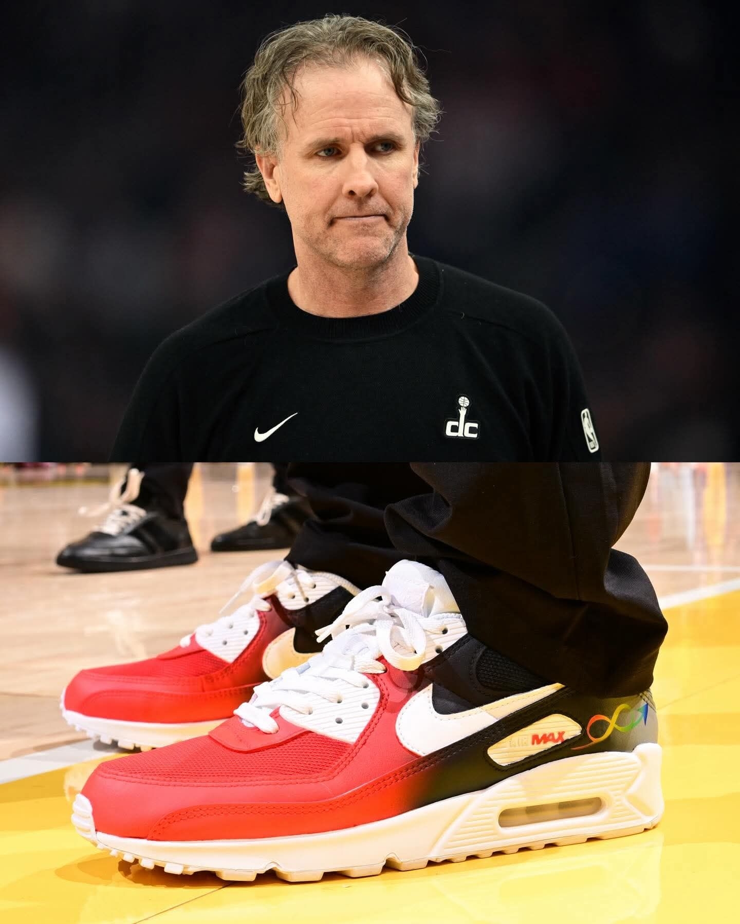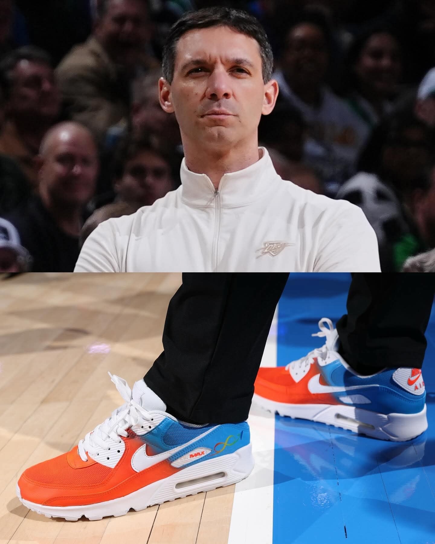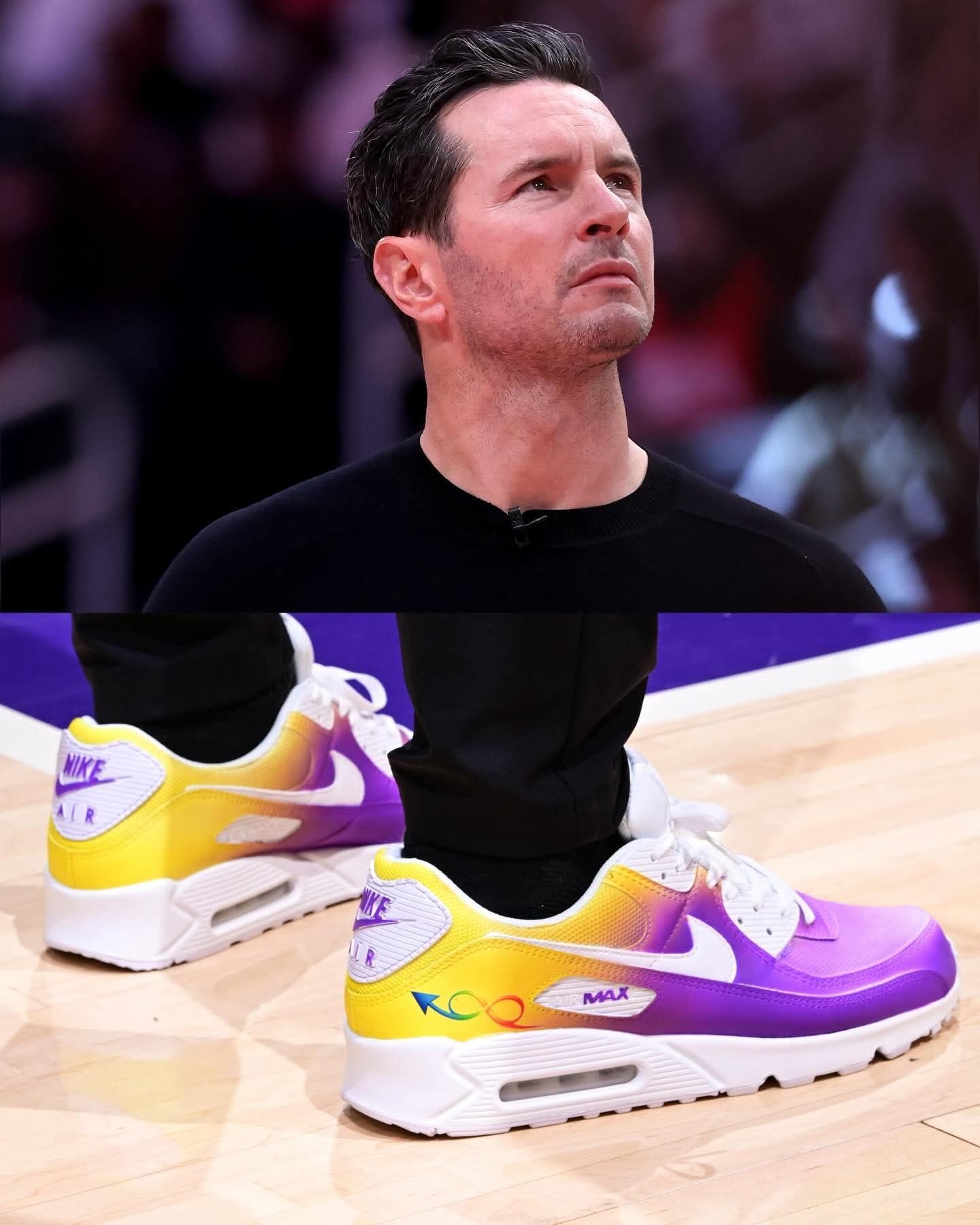 谁懂啊家人们!NBA教练们集体上脚的这双定制Nike Air Max 90,直接把球鞋的意义拉满了✨ 为了「自闭症接纳日」,每一双都用了标志性的彩虹渐变配色,鞋身的无限符号、MAX标识,每一处细节都在为自闭症群体发声。 从紫黄渐变到橙蓝撞色,从亮绿到红橙渐变,不同的色彩却承载着同一个信念:接纳、理解与爱❤️ 球鞋从来不止是穿搭工具,更是传递善意的载体。当教练们穿着这双鞋站在球场,体育的温度...