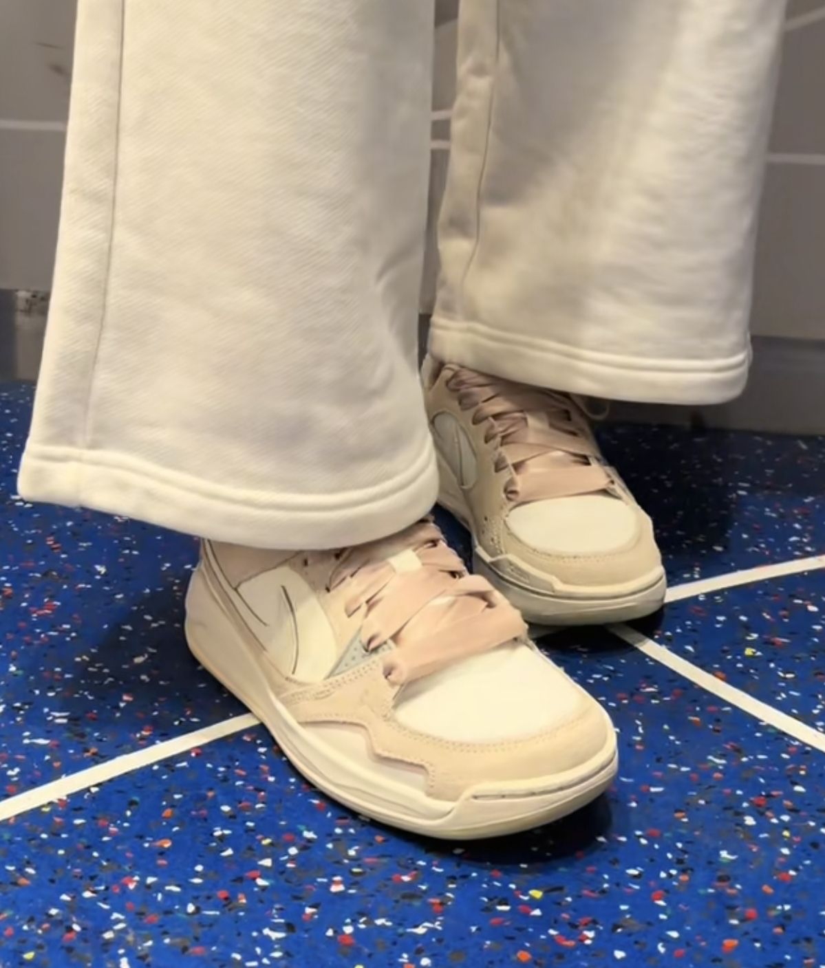 终于入手这双奶fufu的粉白鞋,换上芭蕾风鞋带之后温柔感直接拉满。上脚很软,走路久了也不会累,配阔腿裤、牛仔裤都好看,是那种越看越耐看的类型。颜色是淡淡的粉杏色,不扎眼,日常穿完全不挑风格,春天的氛围感有了。