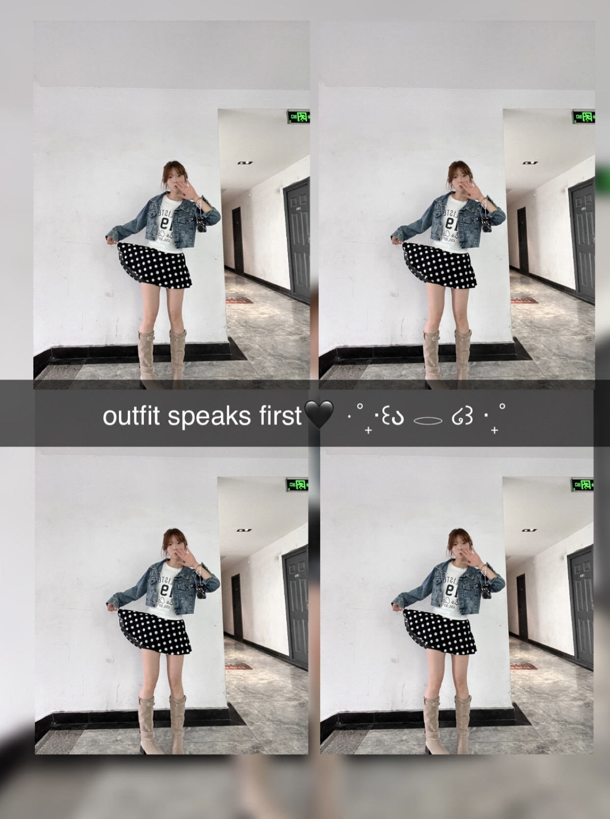 从此爱上拼贴照片! 波点控狂喜!这条短裙我能穿一万次! 复古牛仔外套+波点短裙,一套直接封神,显瘦又显高,甜妹辣妹都能驾驭,谁穿谁好看! 牛仔短裙穿搭公式,懒人直接抄作业📝 牛仔外套+牛仔短裙,一套搞定春夏穿搭,不挑身材不挑场景,日常通勤/约会都合适,闭眼冲就对了!