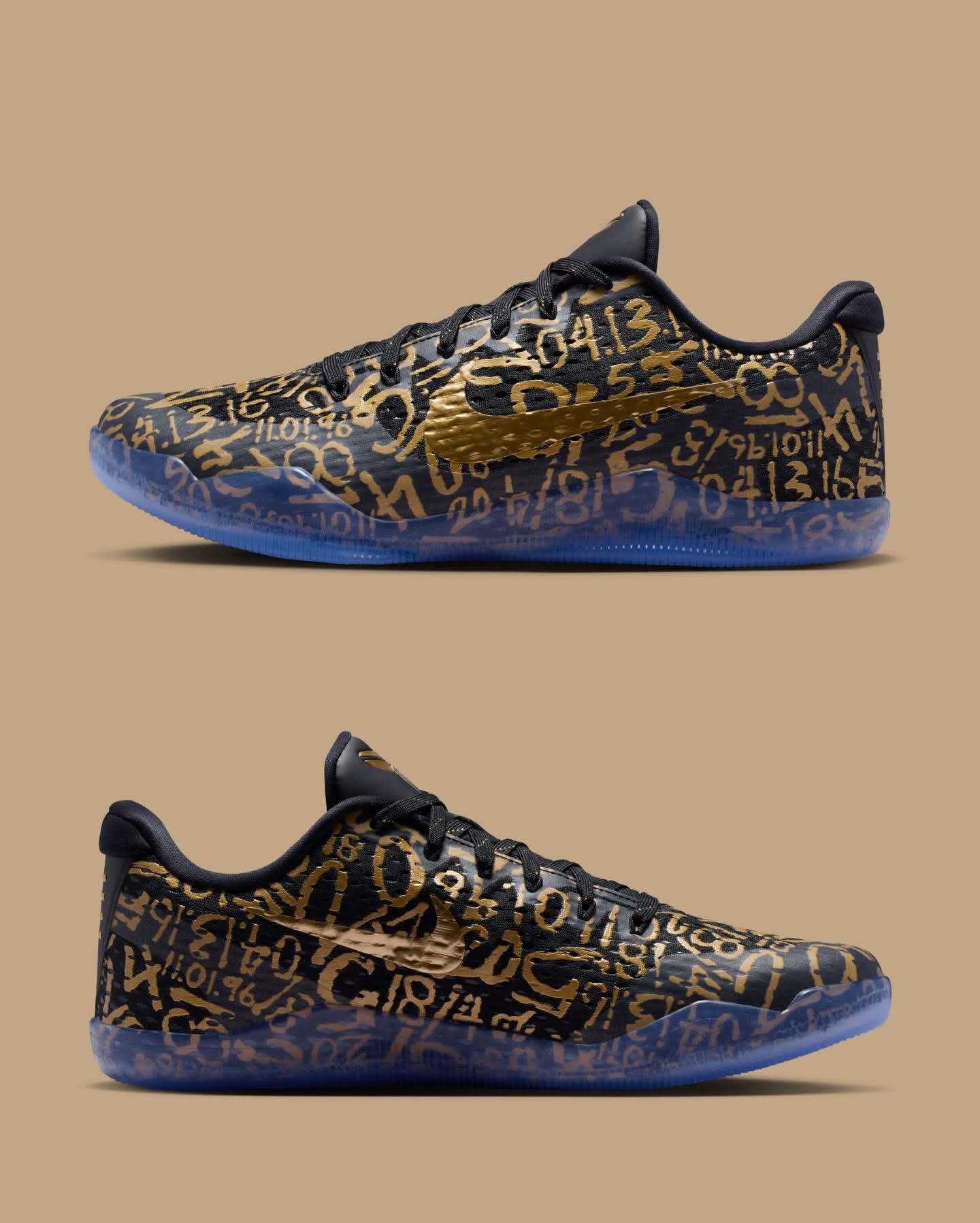 曼巴日重磅回归!Nike Kobe 11 Protro "Mamba Day" 正式登场✨ 黑金满印的鞋身铺满「MAMBA DAY」字样,蓝水晶外底呼应曼巴精神,每一处细节都在致敬科比的传奇生涯。 作为科比退役赛季的战靴,Kobe 11 Protro 保留了元年的极致轻量化与启动感,Protro 升级让缓震与包裹更适配现代球场。 无论是实战党还是科蜜收藏,这双曼巴日配色都是不可错过的信仰款。黑曼巴...
