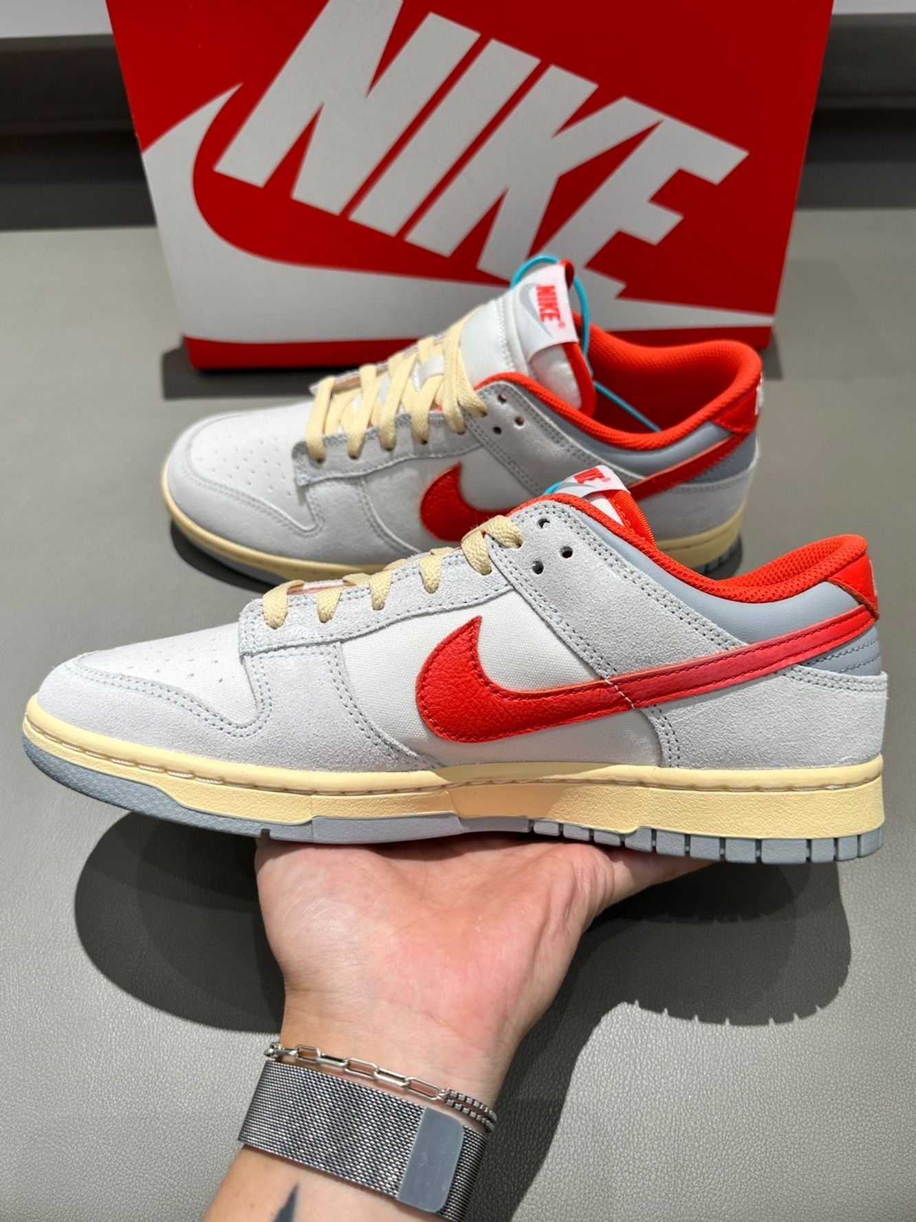 这款复古配色的dunk Low 会是你的心头爱嘛?|||#618潮物战利品清单 Dunk作为近年来最热门的鞋款之一,其热度一直居高不下。这款全新推出白灰Dunk Low ,旨在向1985年元年鞋型的Dunk Low致敬。鞋身以白色织物搭配浅灰色麂皮框架呈现,侧面的Swoosh也采用红色皮革点缀营造出丰富的层次感。鞋身最大的亮点是鞋带、中底部分以氧化做旧效果呈现,营造出独特的复古气息!呼应OG鞋型的...