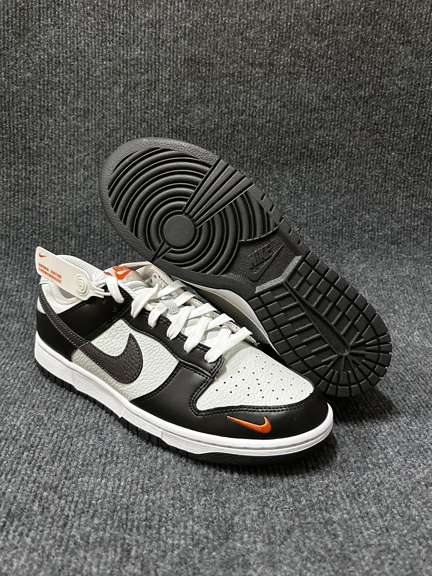 我摊牌了🫠|不用担心撞鞋的新熊猫⁉️|||⭐️今天分享的就是这双黑灰橙的dunk,远看有点像熊猫dunk,但近处看发现别样的细节更多了。 ✅细节上看采用了黑灰的撞色设计,鞋侧的亮橙swoosh作为点缀,时尚又耐看🤩 日常搭配工装裤或者浅色系的牛仔裤都是不错的的选择呢。 ✅材质上采用了带有荔枝纹的合成革,质感十足。打理起来也方便,湿纸巾擦拭即可。 ✅尺码方面选择正常码即可。 #早秋出游穿这双 ...