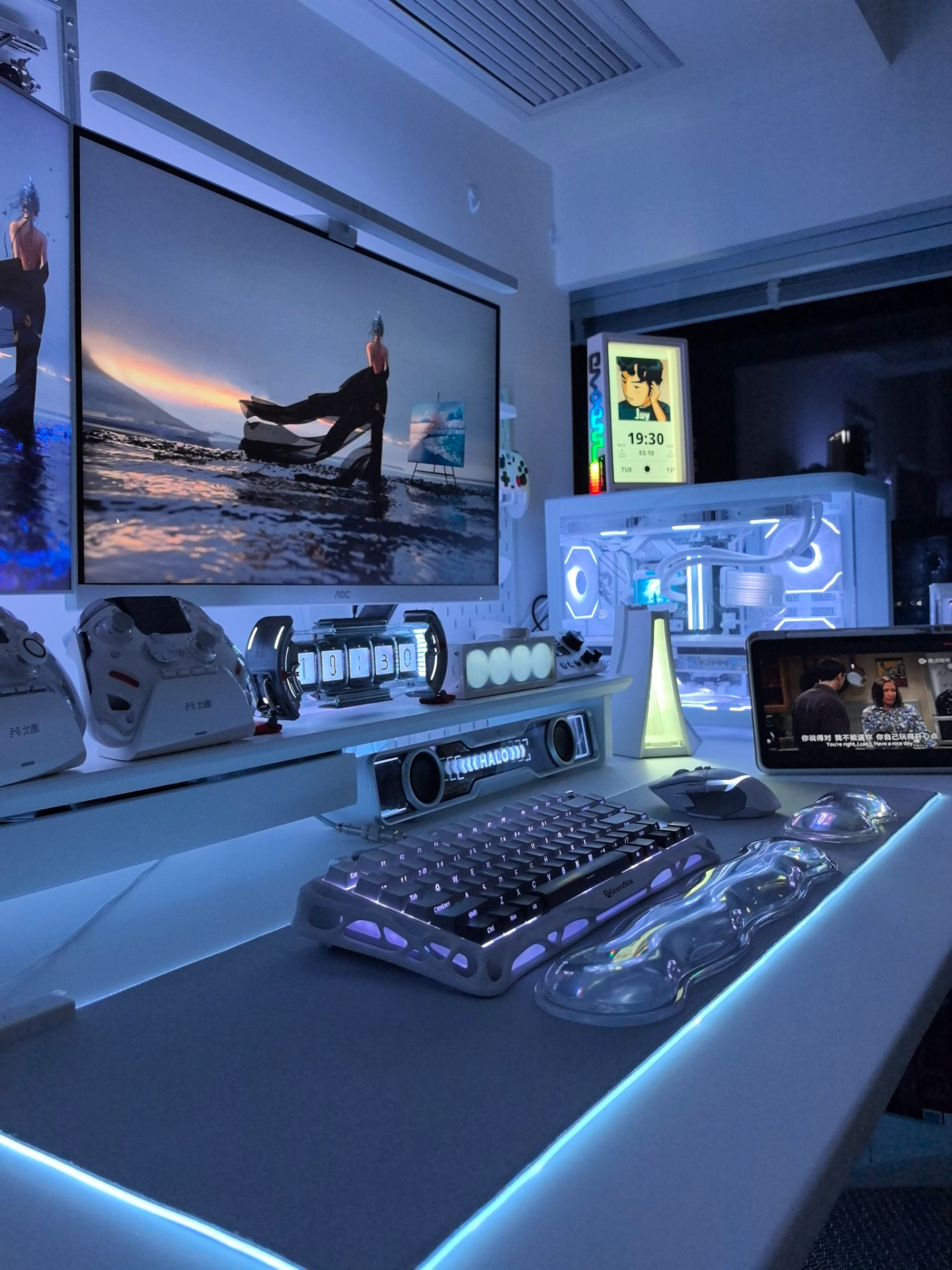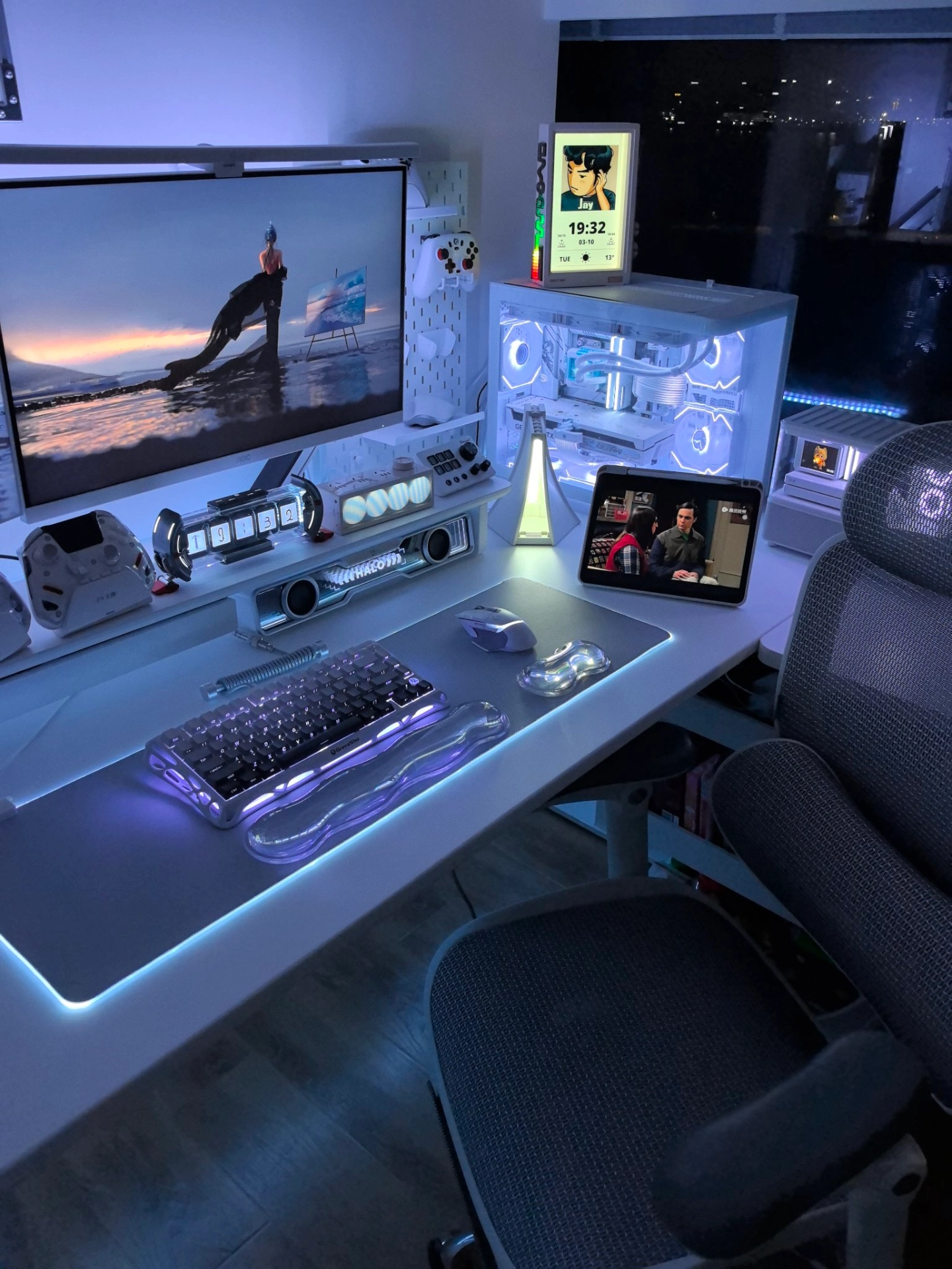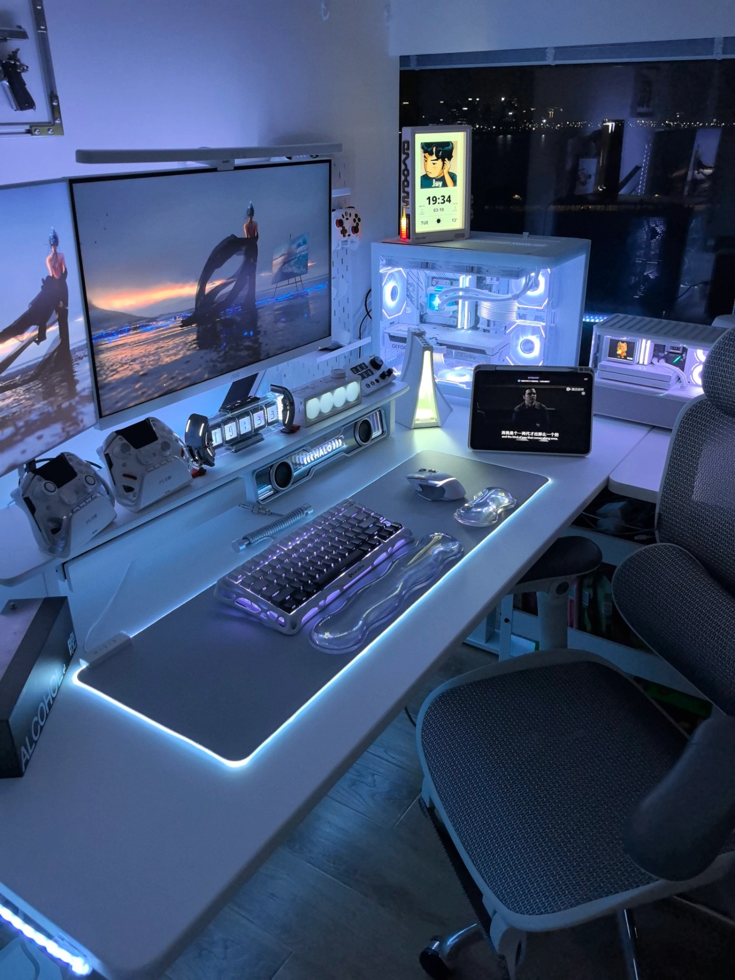 真的太爱夜晚的电竞房了 关掉大灯,只开氛围灯 整个空间都变得温柔又治愈🌙 忙碌一天回到这里 往椅子上一躺,瞬间卸下所有疲惫 不用社交,不用伪装 安安静静打会儿游戏、听听歌 这才是属于自己的松弛时刻 小小的一方桌面 就是我的快乐星球🌍 成年人的幸福,其实真的很简单 #电竞房氛围感 #数码起号护航计划 #电竞房桌搭 #晒晒我的电竞桌搭 #我的电竞房很出片