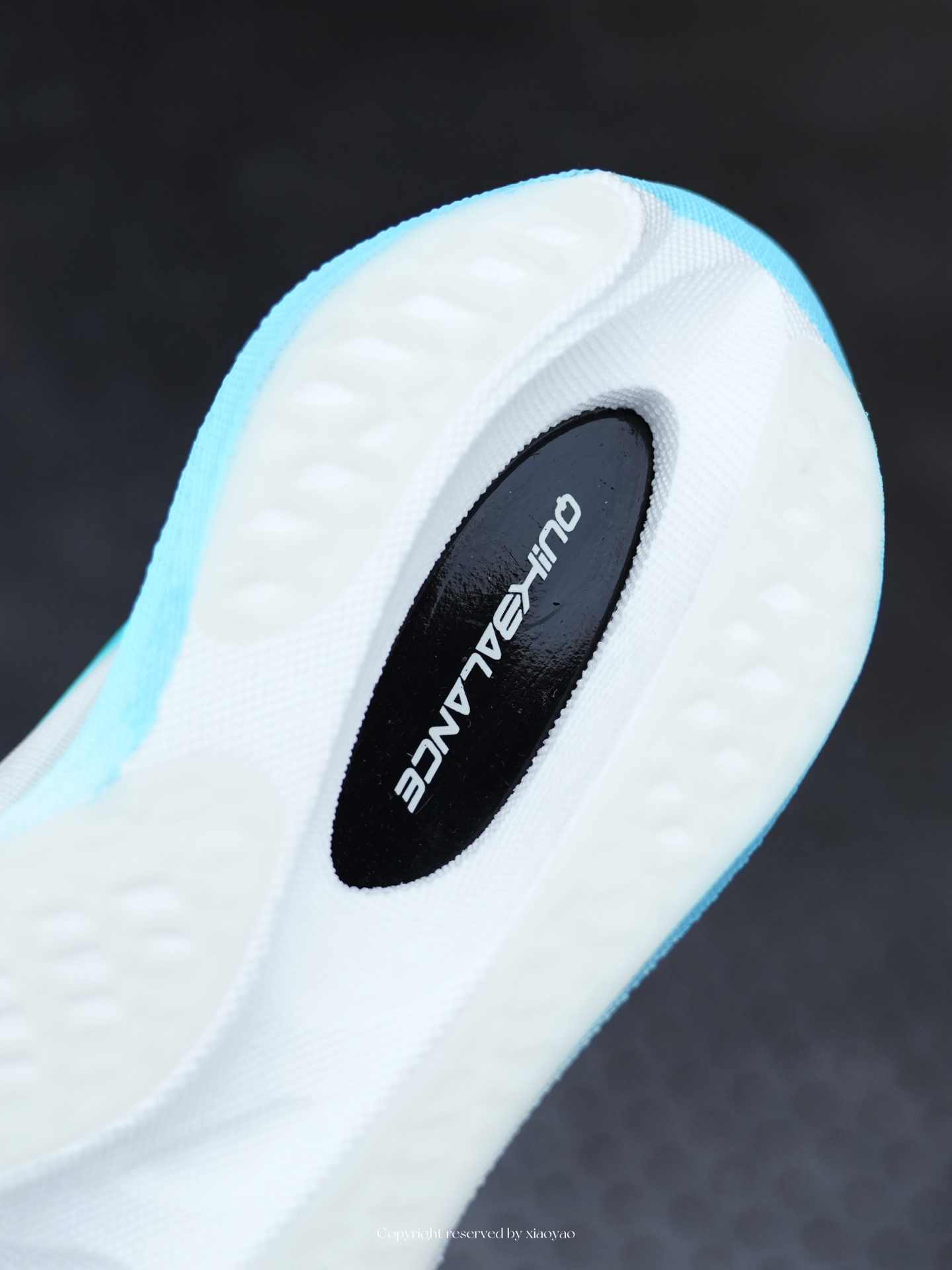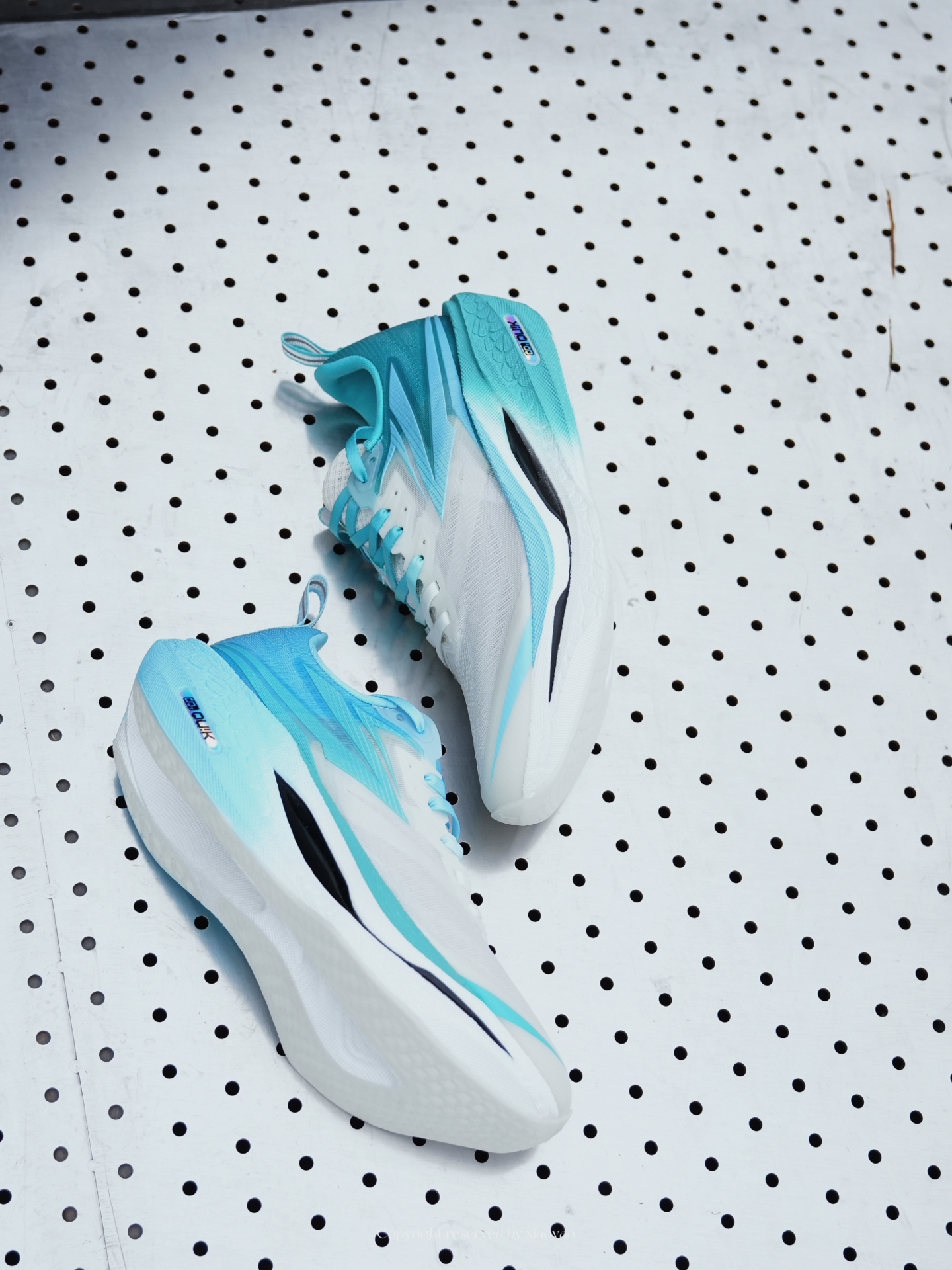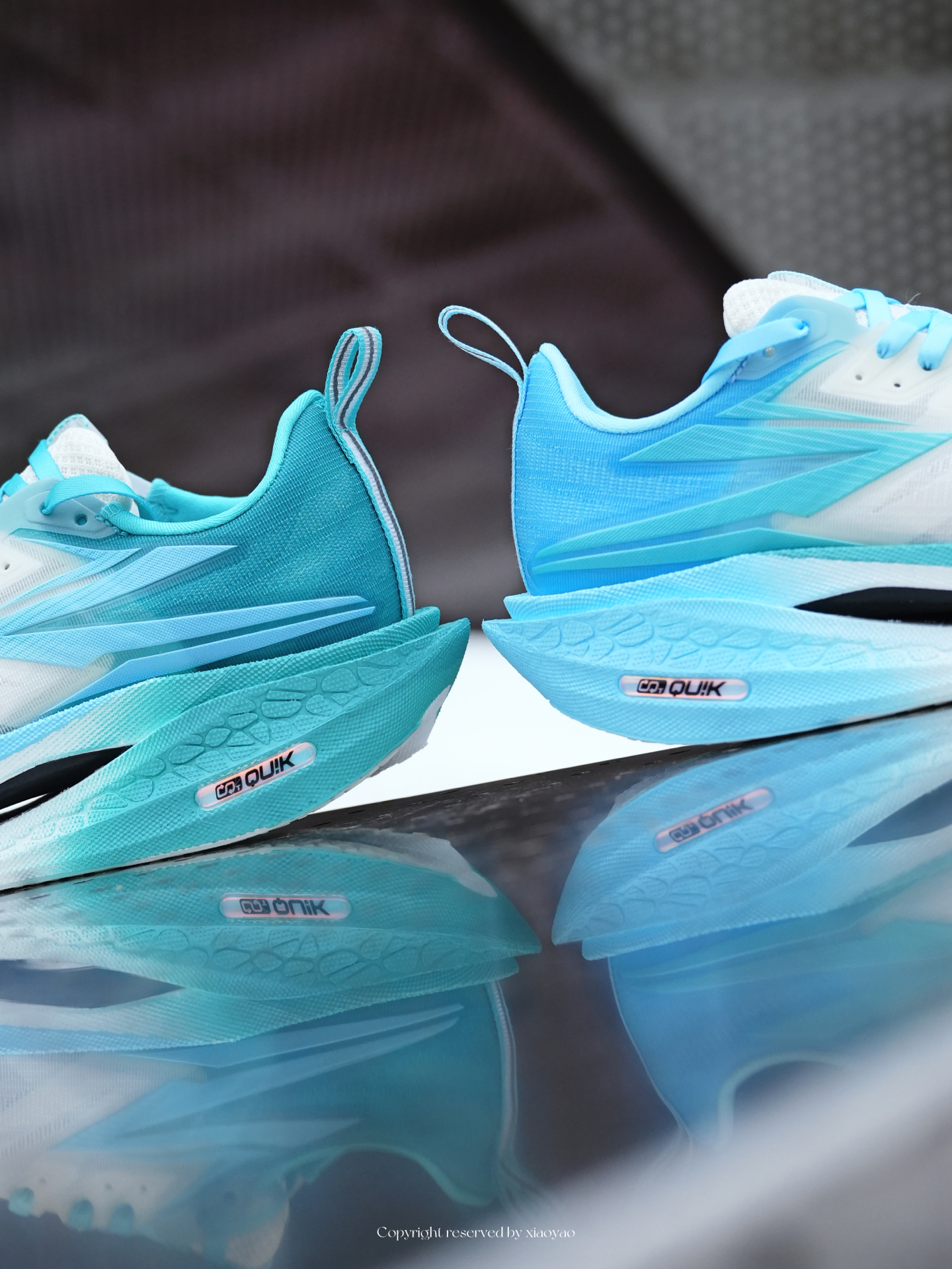 等过完这个梅雨季,就是能穿上这双「海岸线」飞燃4ET的时候啦。 很清新的配色,后跟淡蓝色和孔雀蓝(也有人叫绿色)像极了海水的颜色,太适合夏天了!仔细看,左右脚色块还是岔开的,颜色虽然相近但也是个鸳鸯呢。哦对了,这个配色是专供哦👀 对比正代,ET是更适合日常训练的版本。 调整了泡棉密度,对比正代更加软弹,同时把正代挖空的前掌给填平了,不然泡面变软还真容易踩出泄力的感觉。 把碳板换成一块异形玻...