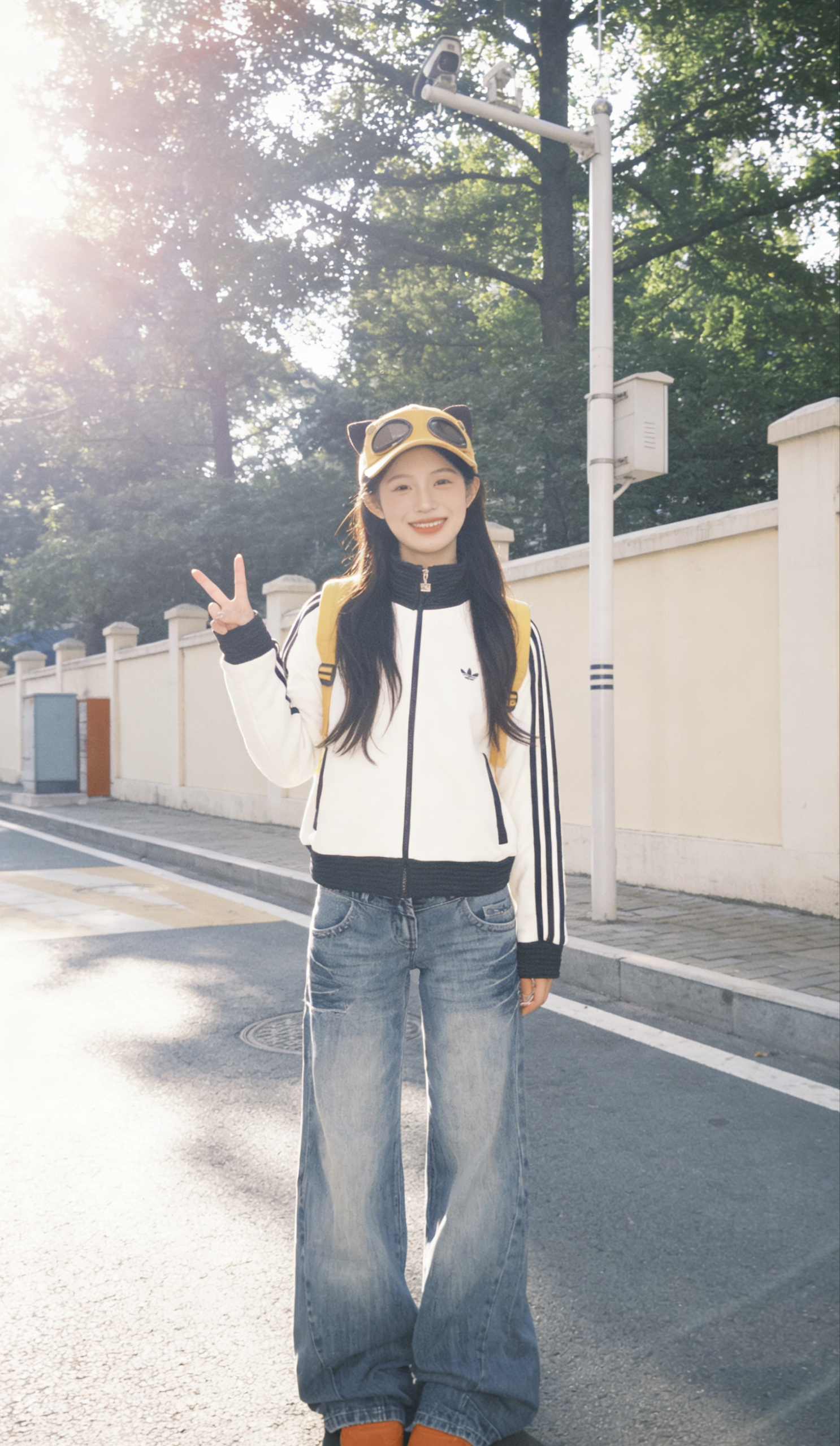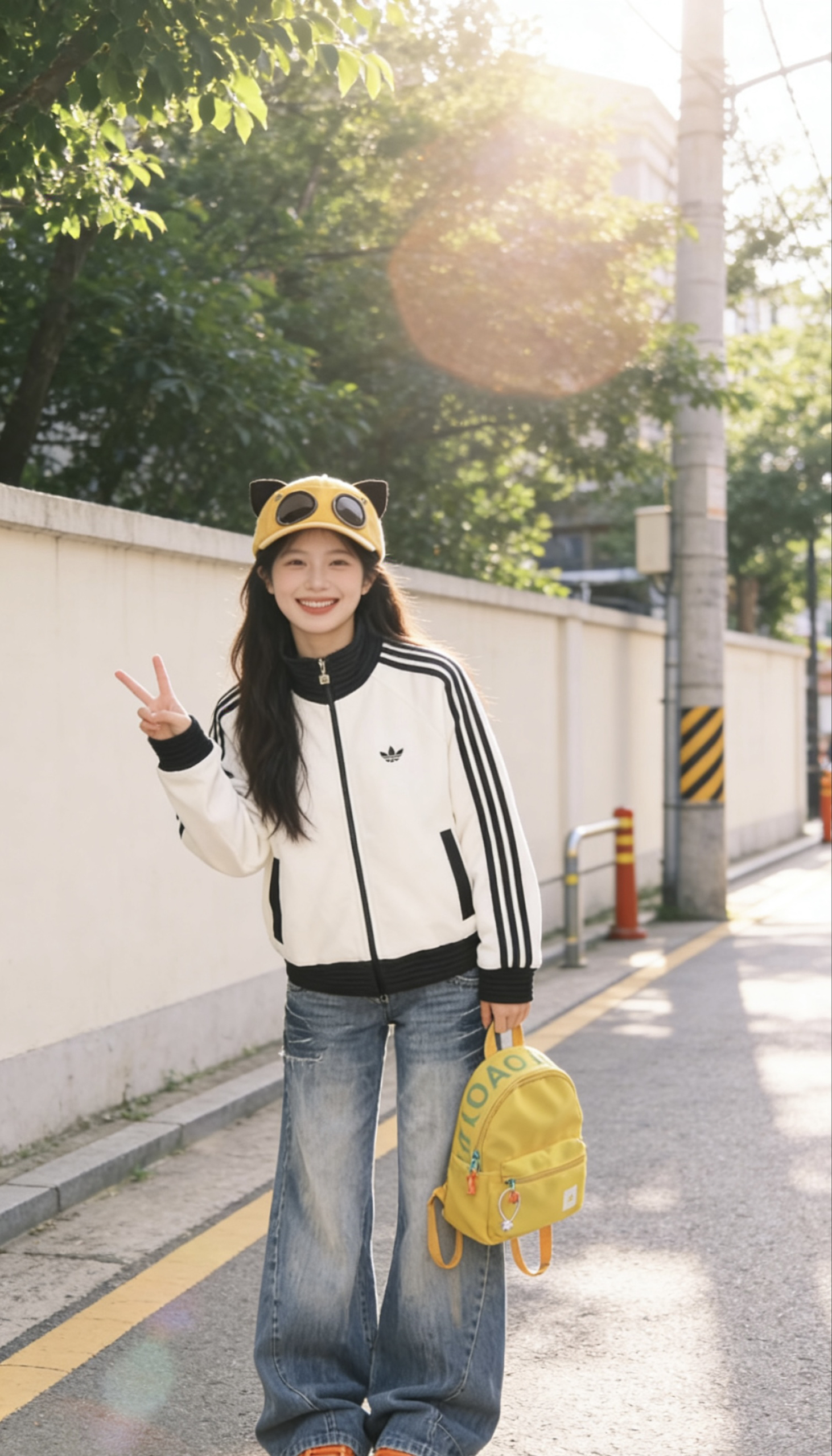 谁的早春DNA狠狠动了!这套韩系休闲风真的把青春感焊在身上了😭 奶白三杠运动外套+做旧阔腿牛仔裤,松弛感直接拉满,黄黑撞色的搭配又甜又酷,逛游乐场、压马路都巨出片! • 👔Adidas三杠立领外套:经典黑白条纹+立领设计,短款版型巨显比例,防风又百搭,早春穿刚刚好 • 👖ACHIEVE ACHV阔腿牛仔裤:做旧水洗蓝+垂感裤型,遮肉显瘦一绝,慵懒感直接拿捏 • 🧢玛莎拉蒂猫耳墨镜帽:甜酷氛围...