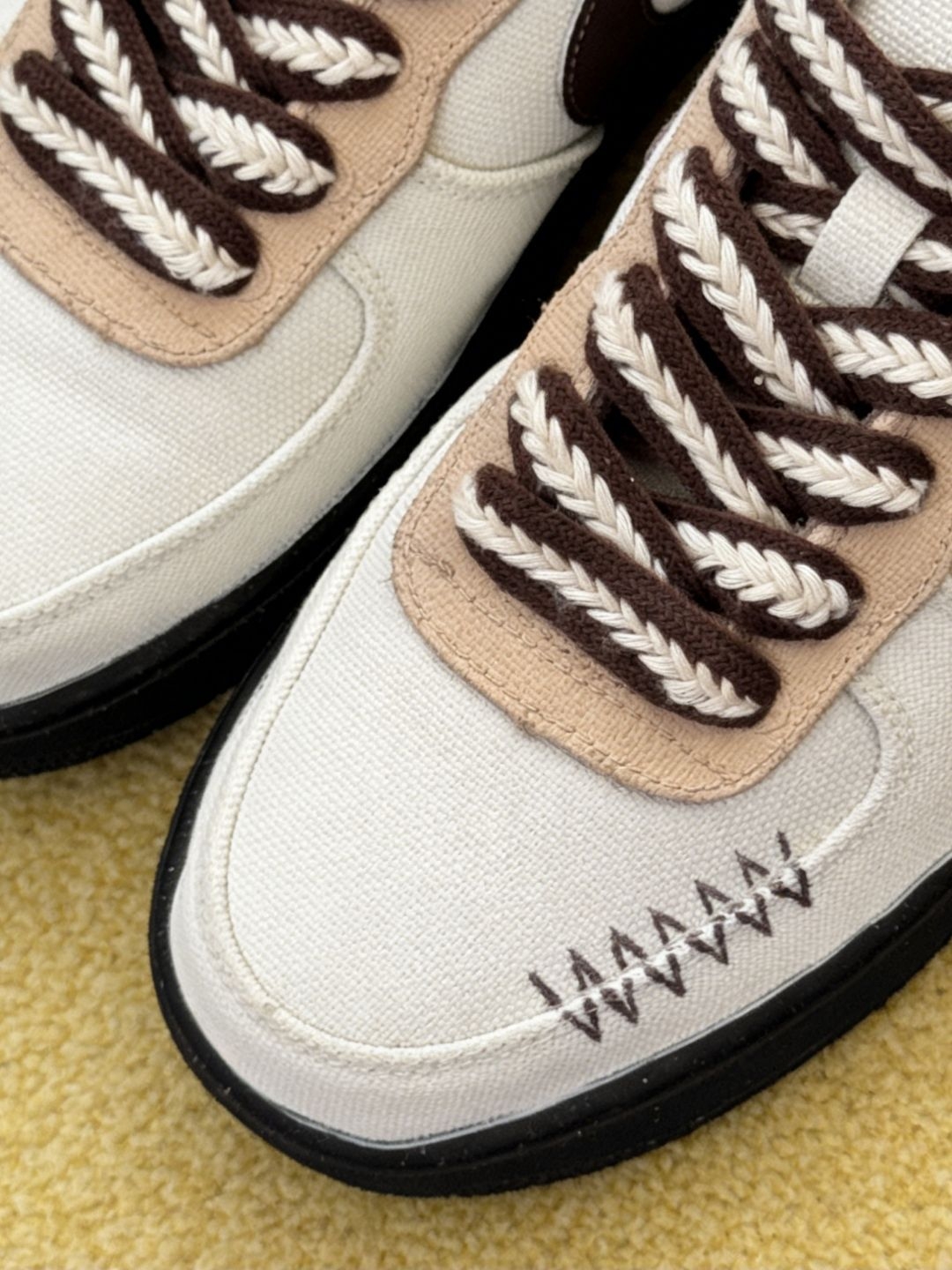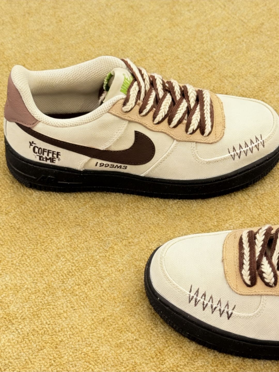 身高178cm 体重140斤,42码脚感拉满!👟 在得物淘到的这双咖啡配色Air Force 1太戳我了!帆布面料很有质感,编织鞋带和刺绣细节都超精致,上脚脚感依旧软糯。 配色是温柔的奶咖系,搭任何裤子都巨好看。有没有懂行的兄弟帮忙鉴定下,这双到底是不是正品呀?在线等~