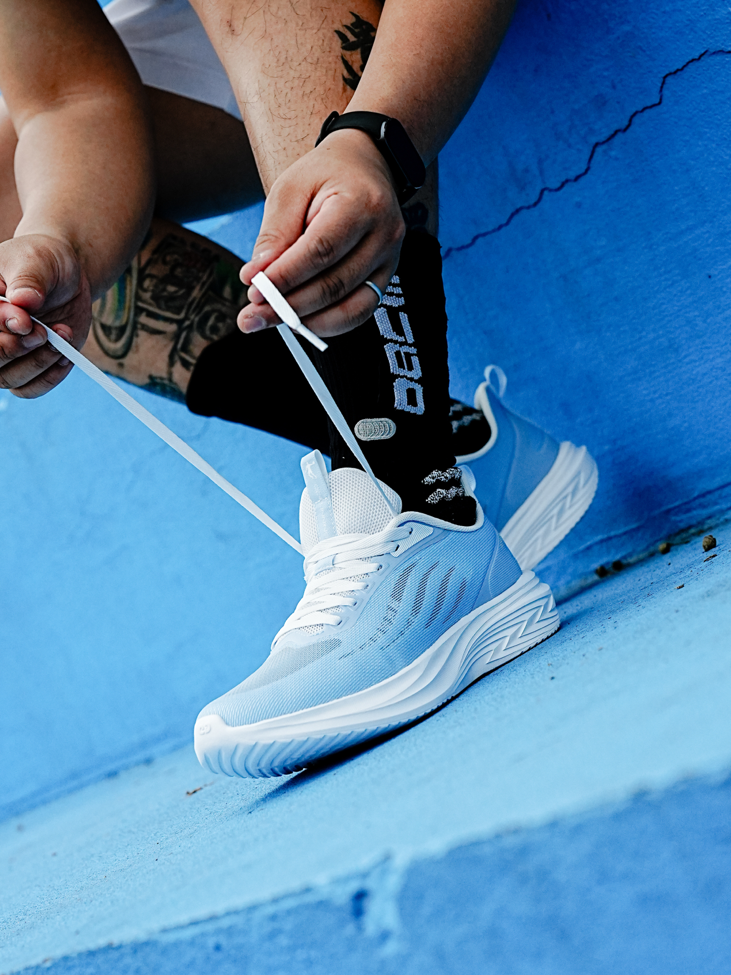 这双跑鞋上脚第一感觉就是轻,跑起步来脚腕没什么负担,缓震效果很实在,落地的时候膝盖和脚后跟不怎么震。透气网面也不闷脚,不会捂出汗味,鞋型包裹感刚好,跑久了脚也不酸。鞋底抓地力挺稳,不管是塑胶跑道还是公园小路都不打滑,日常通勤穿也舒服,就是鞋舌有点薄,系太紧的话脚背会有点压。