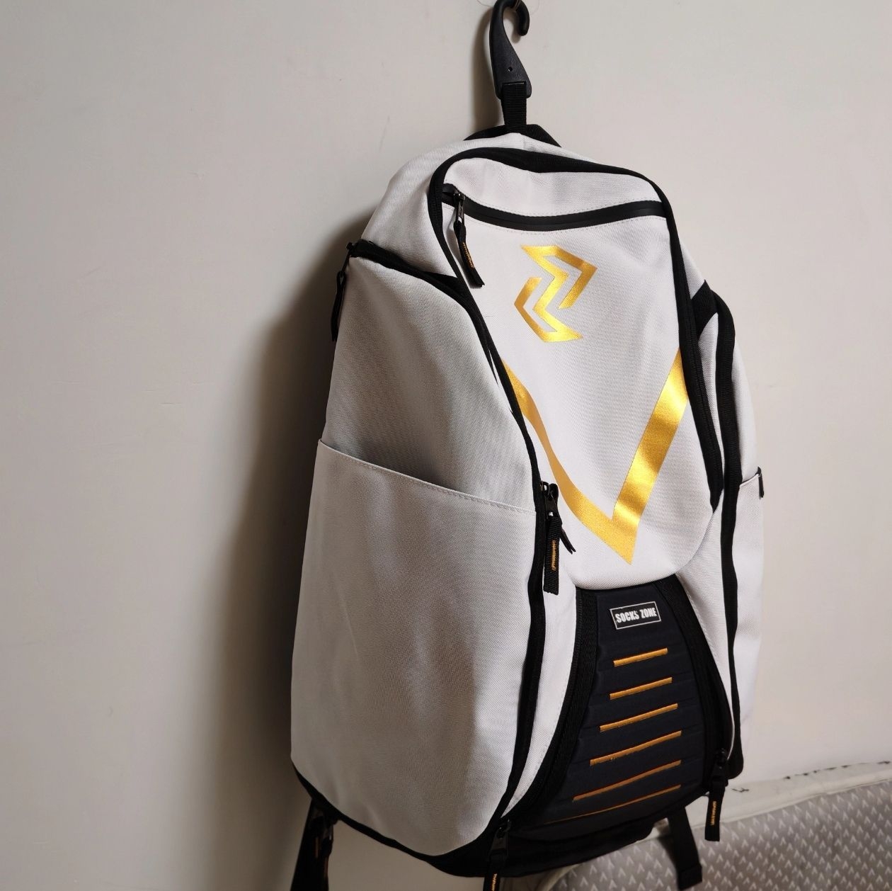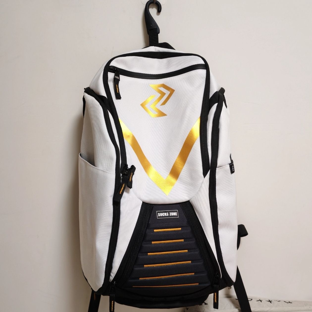 ✅ 颜值炸场 白金色调高级感拉满,V型撞色设计,球场回头率直接干到100%! ✅ buff叠满 防泼水面料+分区收纳,球鞋、球衣、装备各就各位,主打一个井井有条。 ✅ 背感开挂 气垫背带+透气背板,打一下午球也不勒肩,舒适度直接拉满