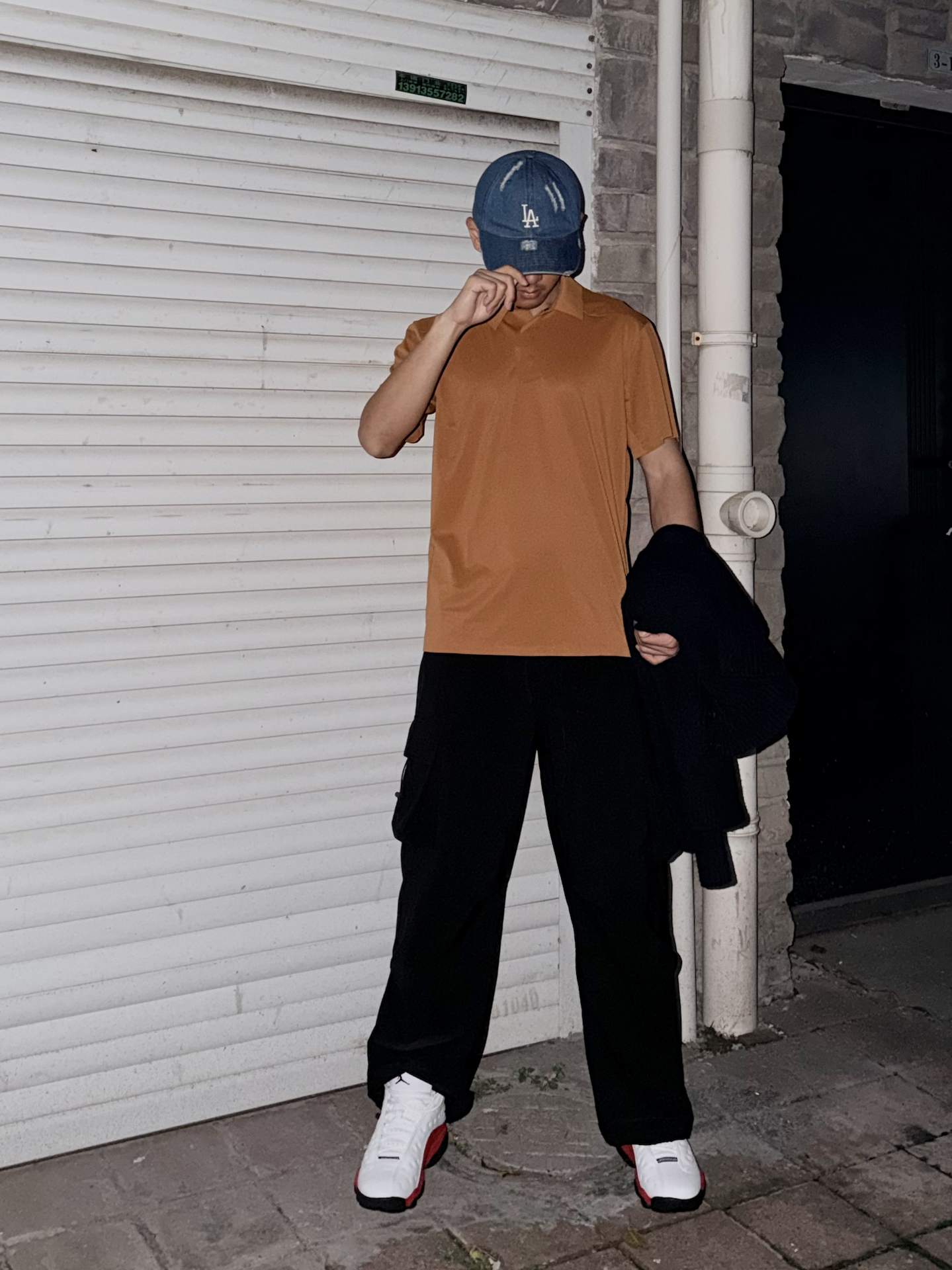 夏天就要到了,衣柜里少不了一件透气舒服的凉感T恤~ 今天上身后秀的简约polo衫 吸湿排汗,闷热的天气穿着还是蛮舒服的 虽然是polo,但上身轻盈、不束缚 下身搭配了工装裤和aj13白红 再带一条针织衫,休闲感十足~